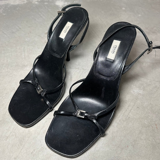 Prada Black Leather Sling-Backs with Plaque Detail (39.5)
