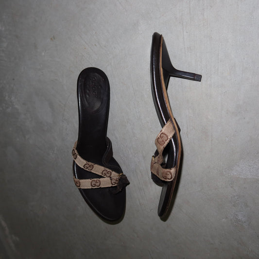 Sold outGucci Strappy Monogram Heels (37.5+)