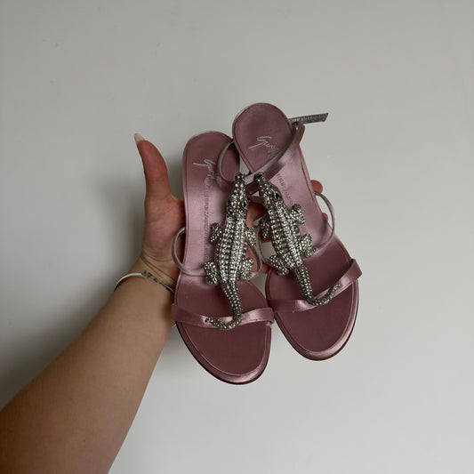 Giuseppe Zanotti Pink Satin Crocodile Heels (37)