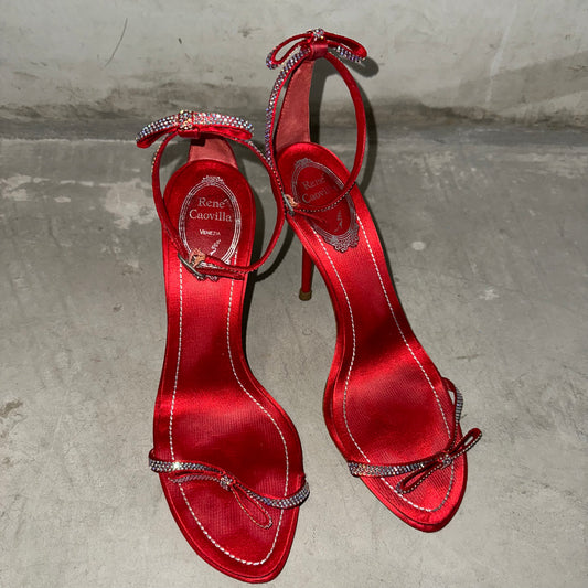 Rene Caovilla Red Satin Bow Heels (37.5)