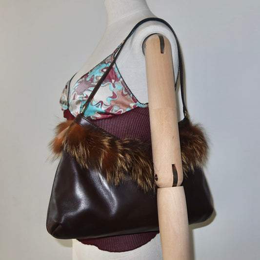 Vintage Italian Real Fur Trim Leather Bag