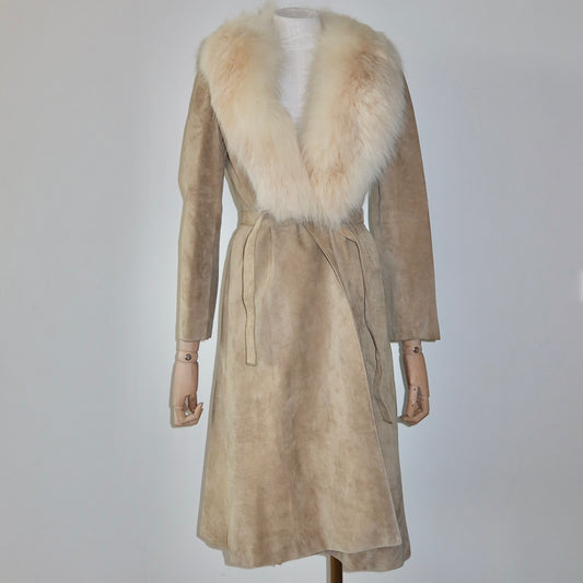 Vintage Suede Trench with Fox Fur Collar and Lining