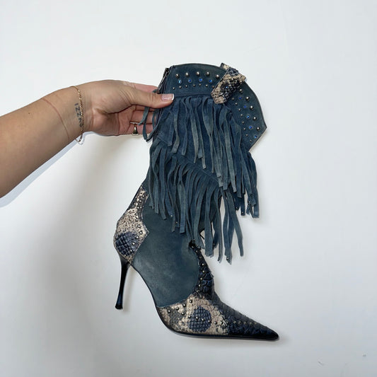 El Dante’s Blue Suede Fringe Cowboy Boots (37)