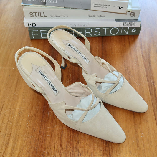 Miu Miu Rare Denim Heels with Floral Appliqué (40)