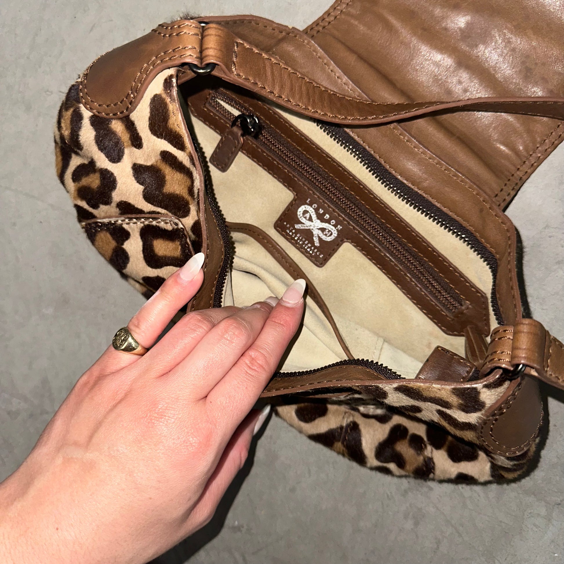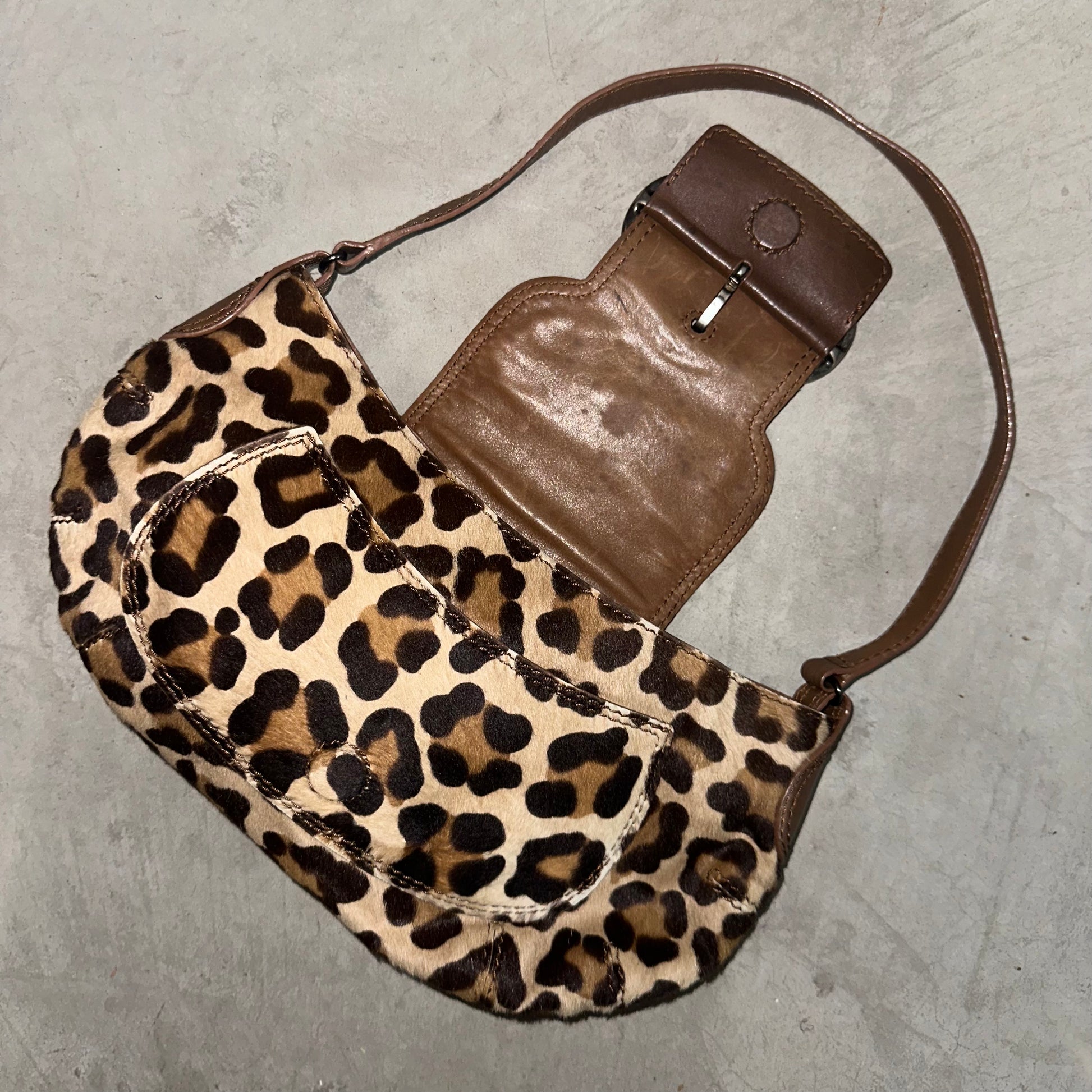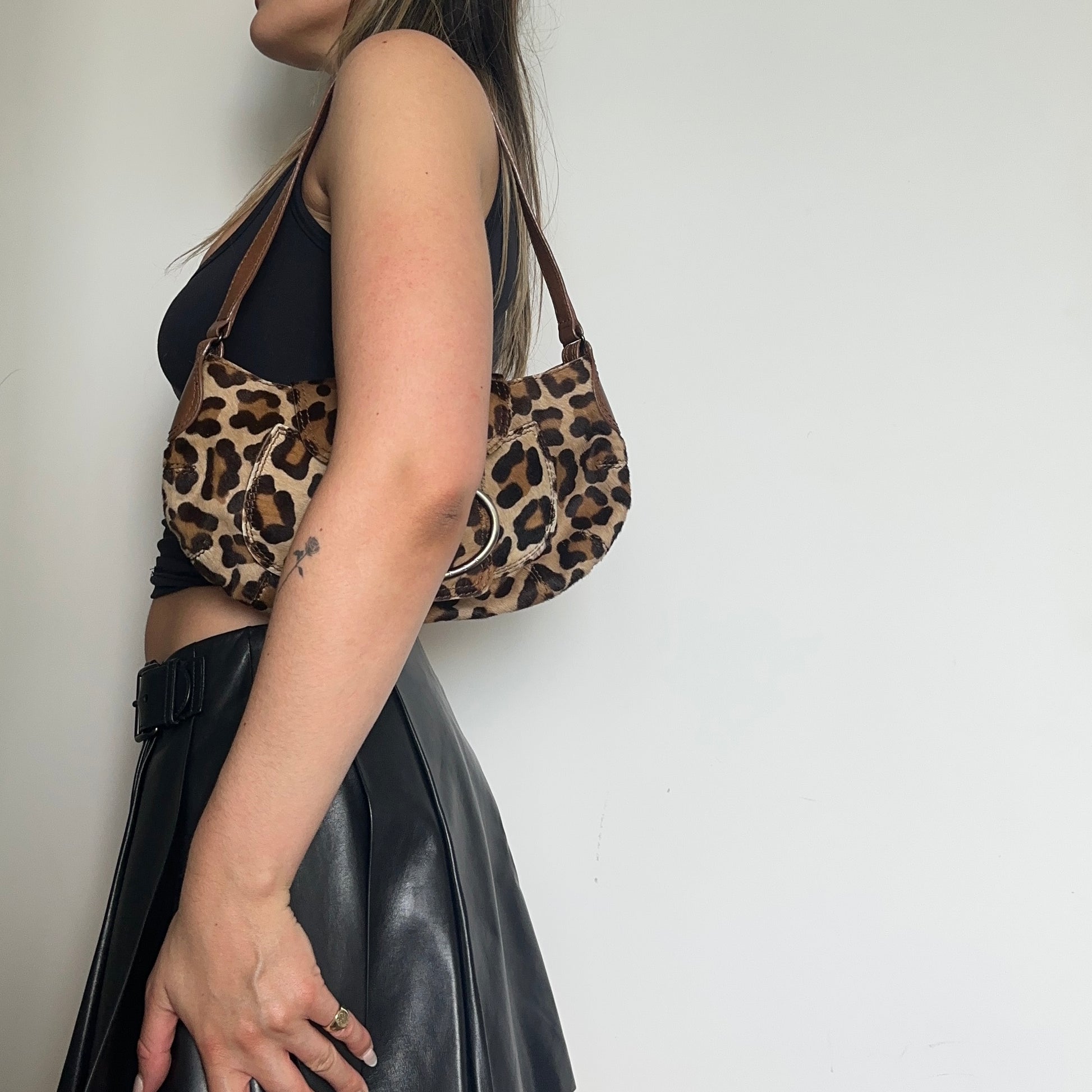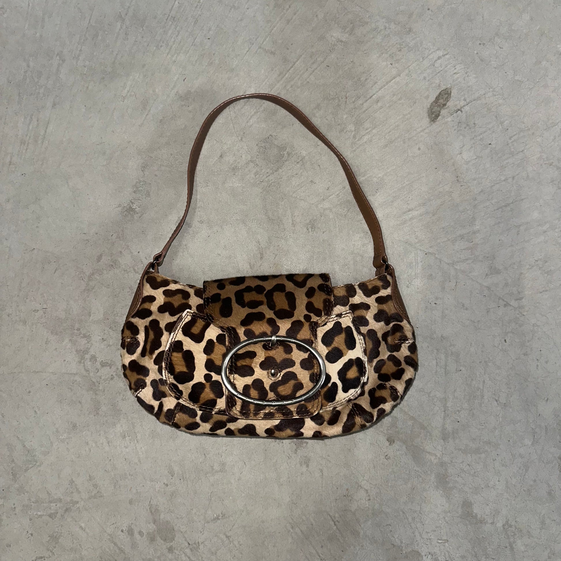 The cutest Anya Hindmarch pony hair, leopard print bag with big buckle detail!