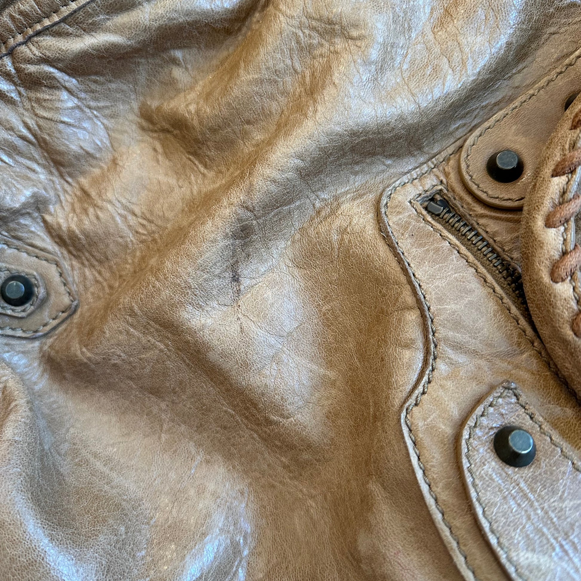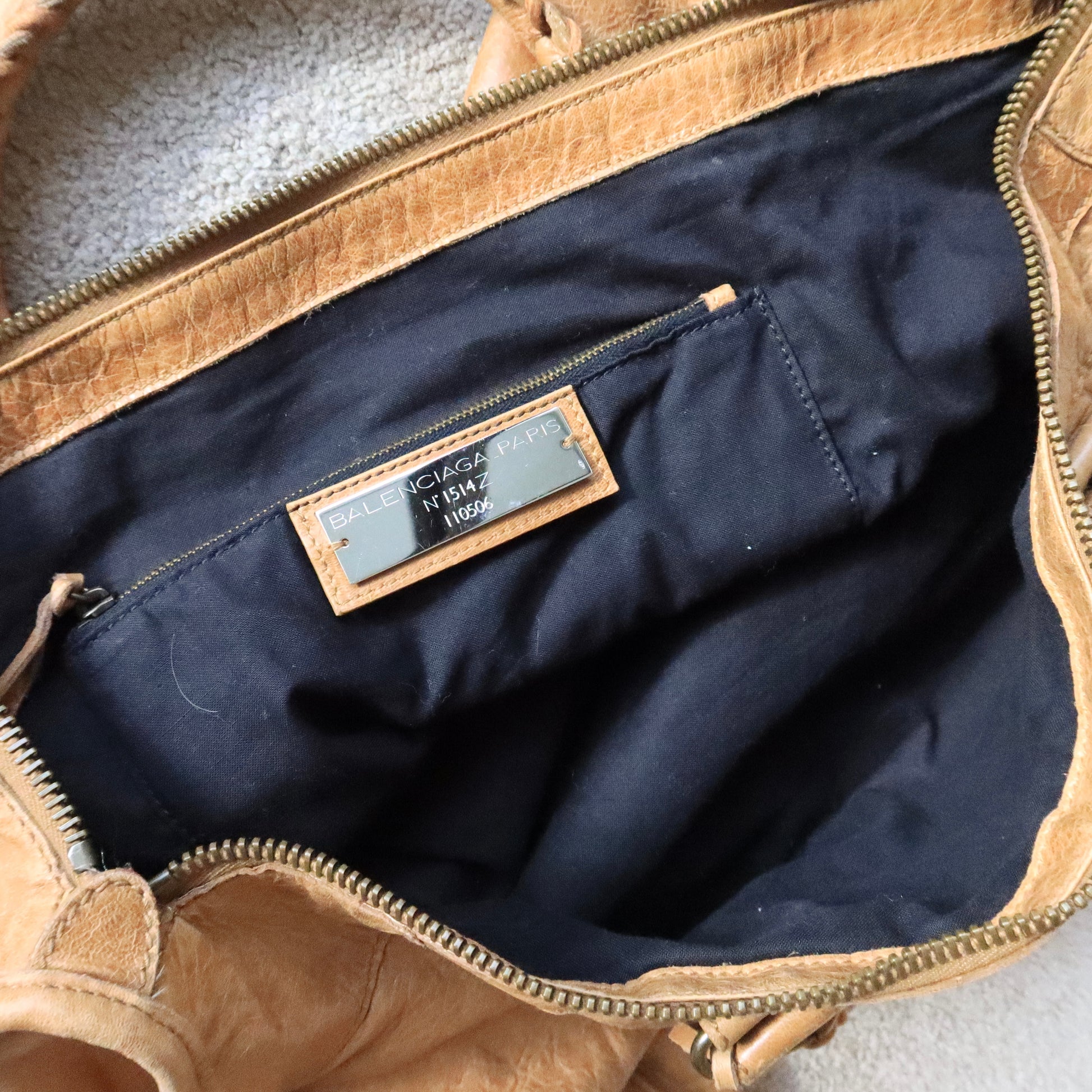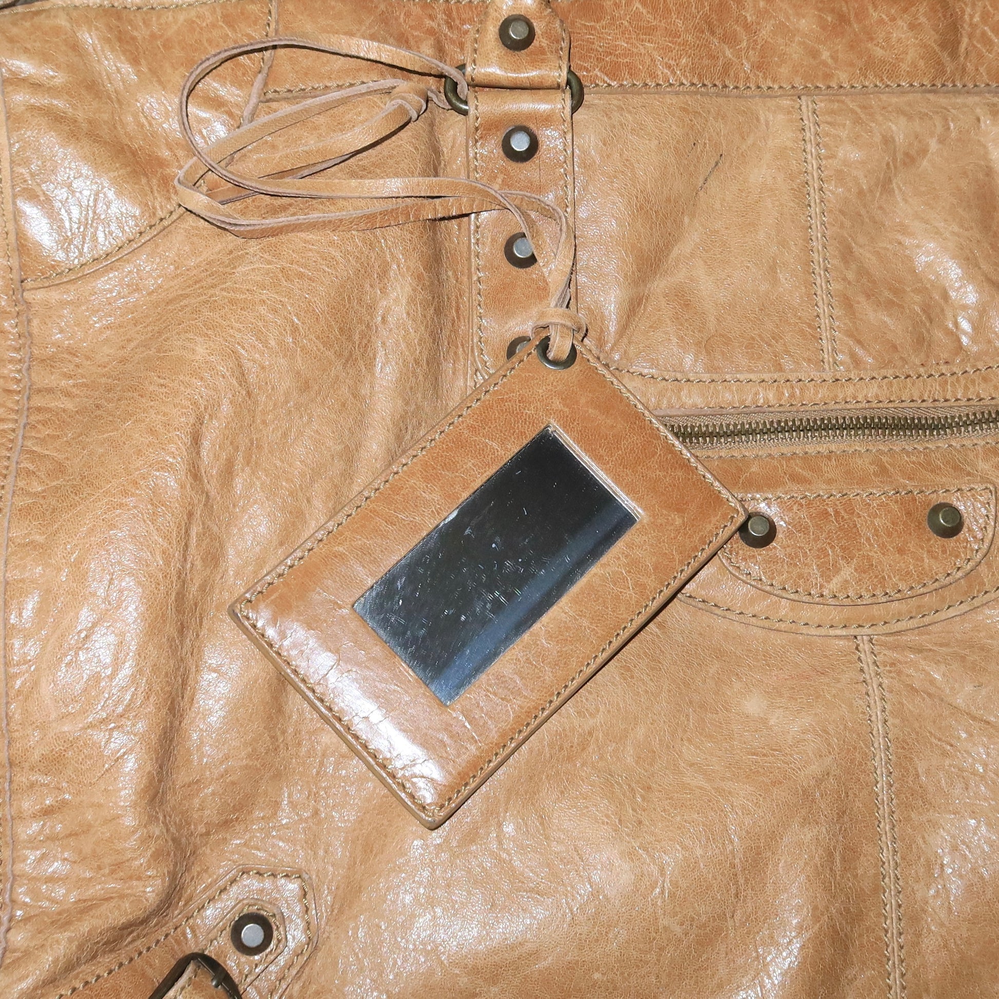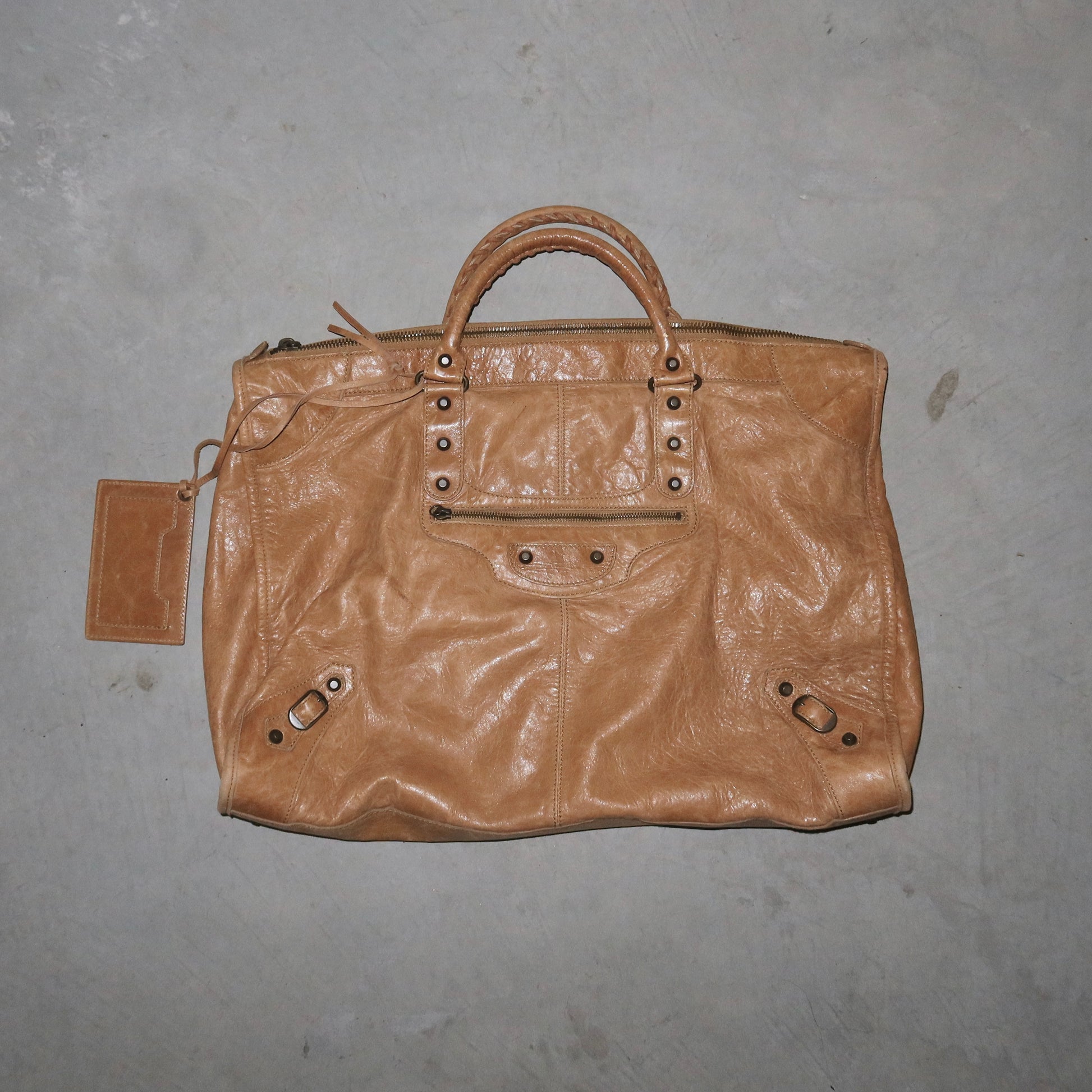 Incredible XL Balenciaga motorcycle/city bag. This model was dubbed the 'Weekender'. This size is notoriously difficult to hunt down! The Weekender does not come with a long strap but the handles can fit over the shoulder, it is quite snug however.
