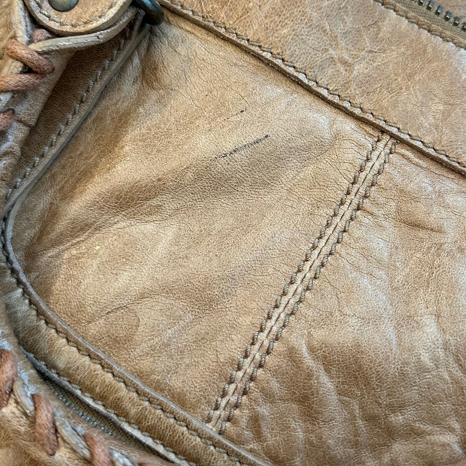 Very good vintage condition. PLEASE NOTE, the tassels have been removed from the main zips. Fairly faint pen marks on the front, above the pocket, as pictured. Some other stains and imperfections pictured at the end. Nothing is super noticeable and overall the leather is in good condition with hardly any rubbing at the corners or handles which is rare! All reflected in price.