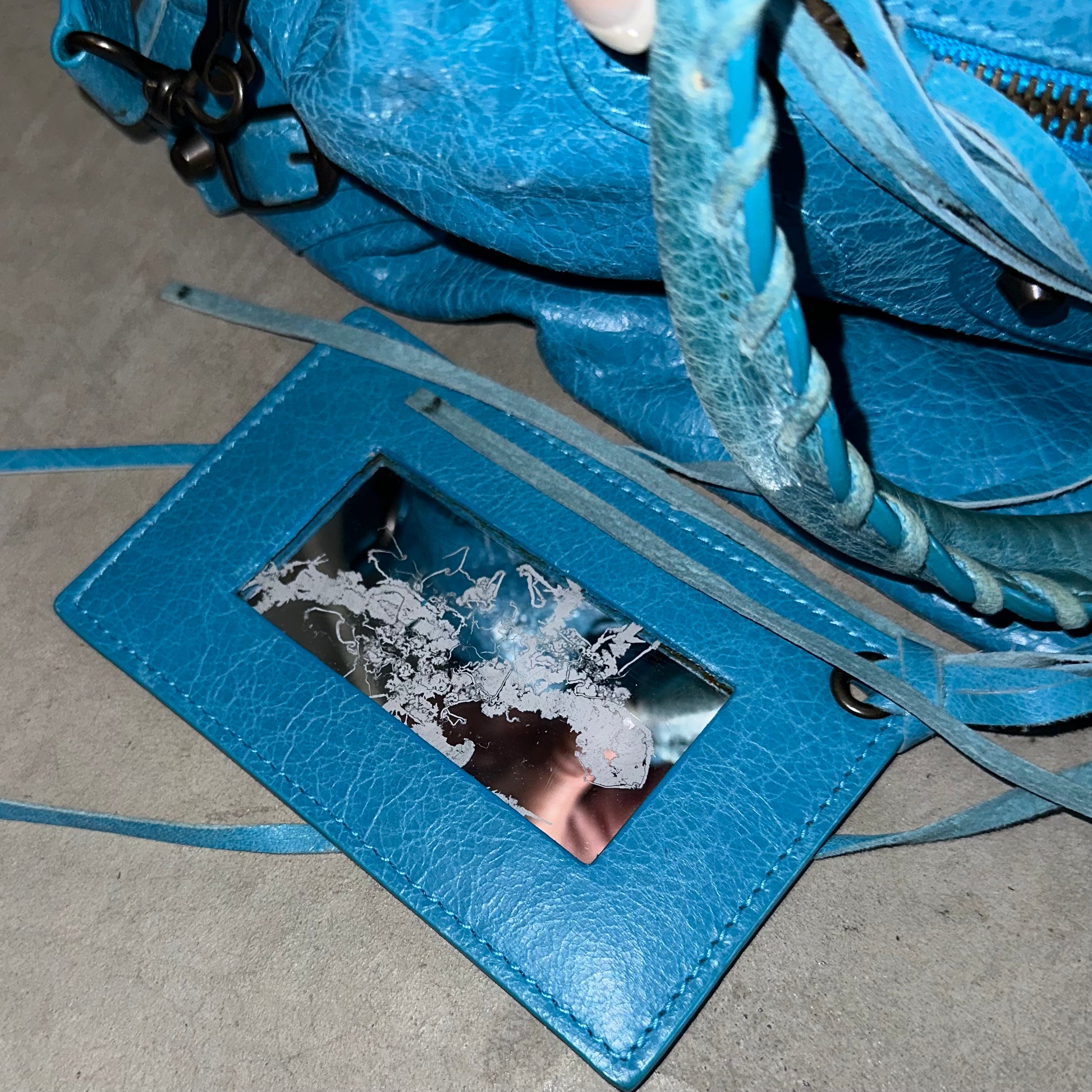 The most gorgeous bright blue Balenciaga motorcycle/city bag.