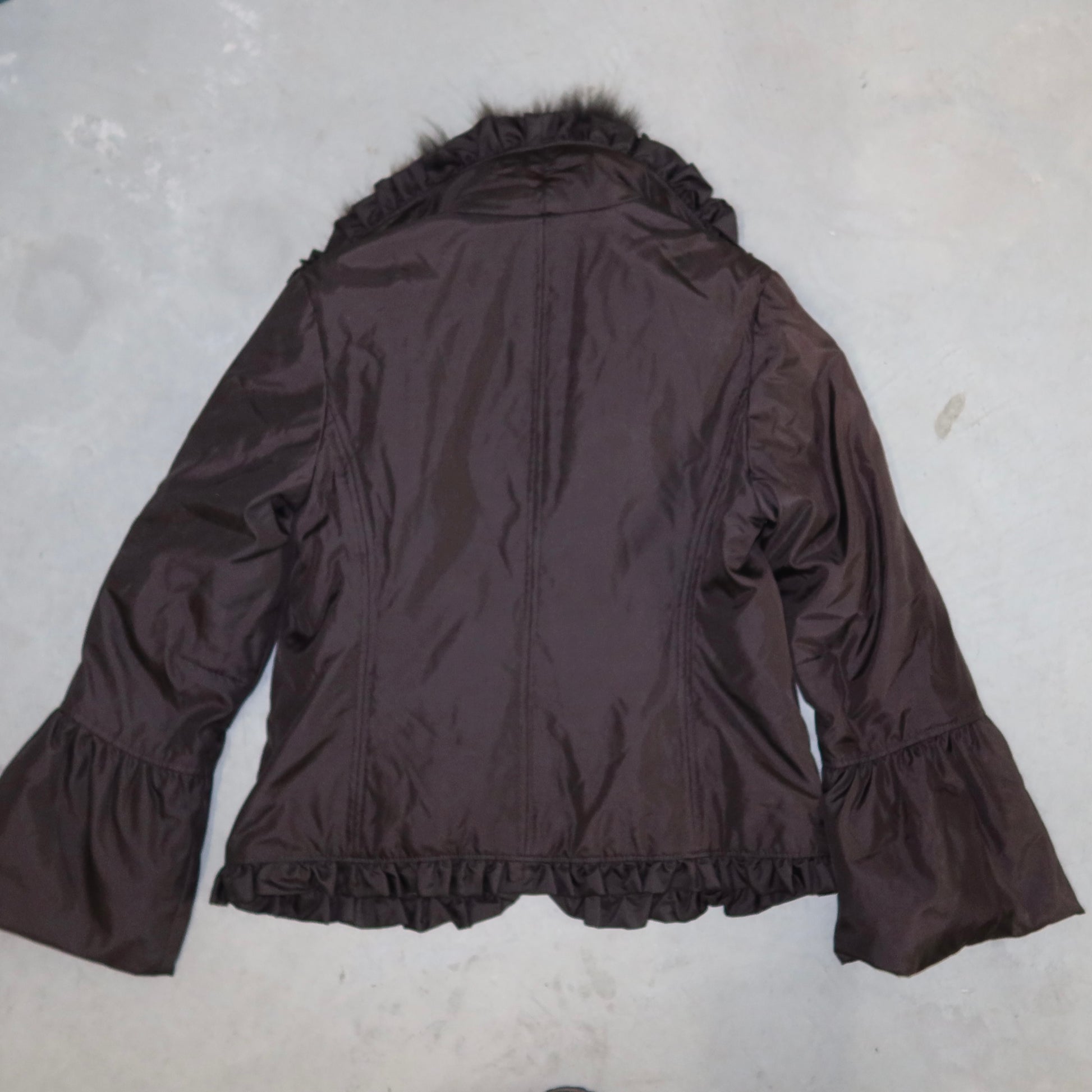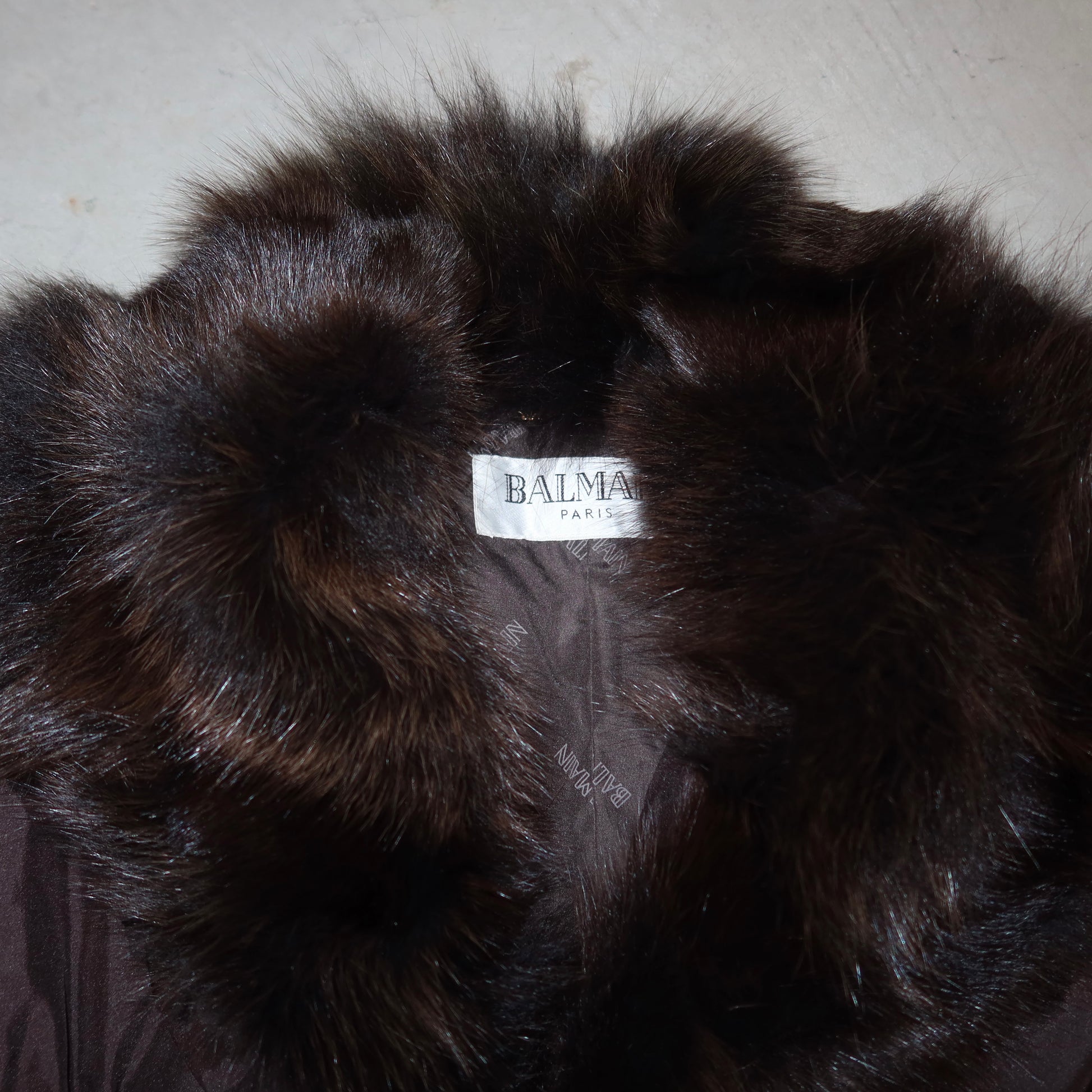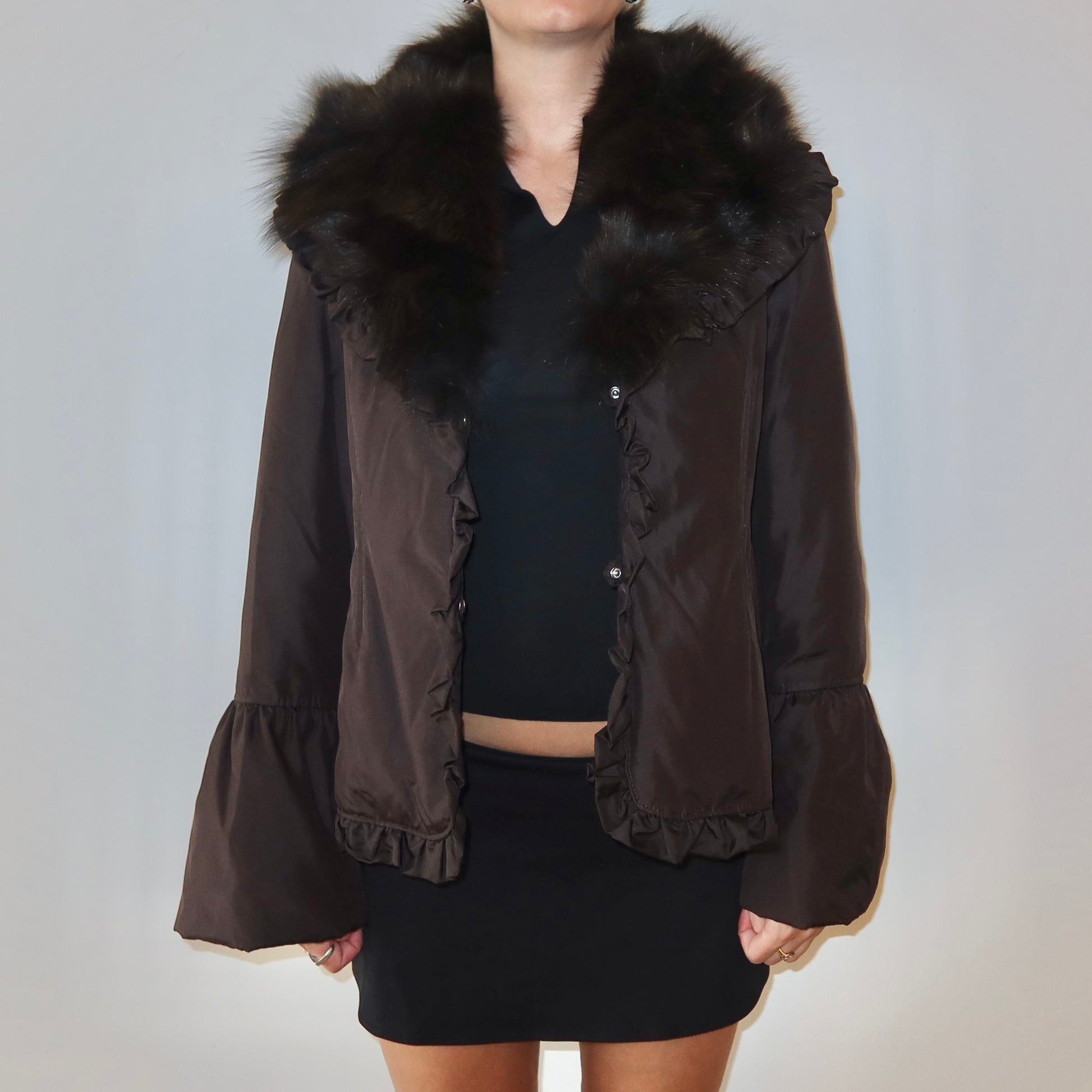 Gorgeous Balmain brown nylon jacket with detachable real fur collar. Flared sleeve detail.