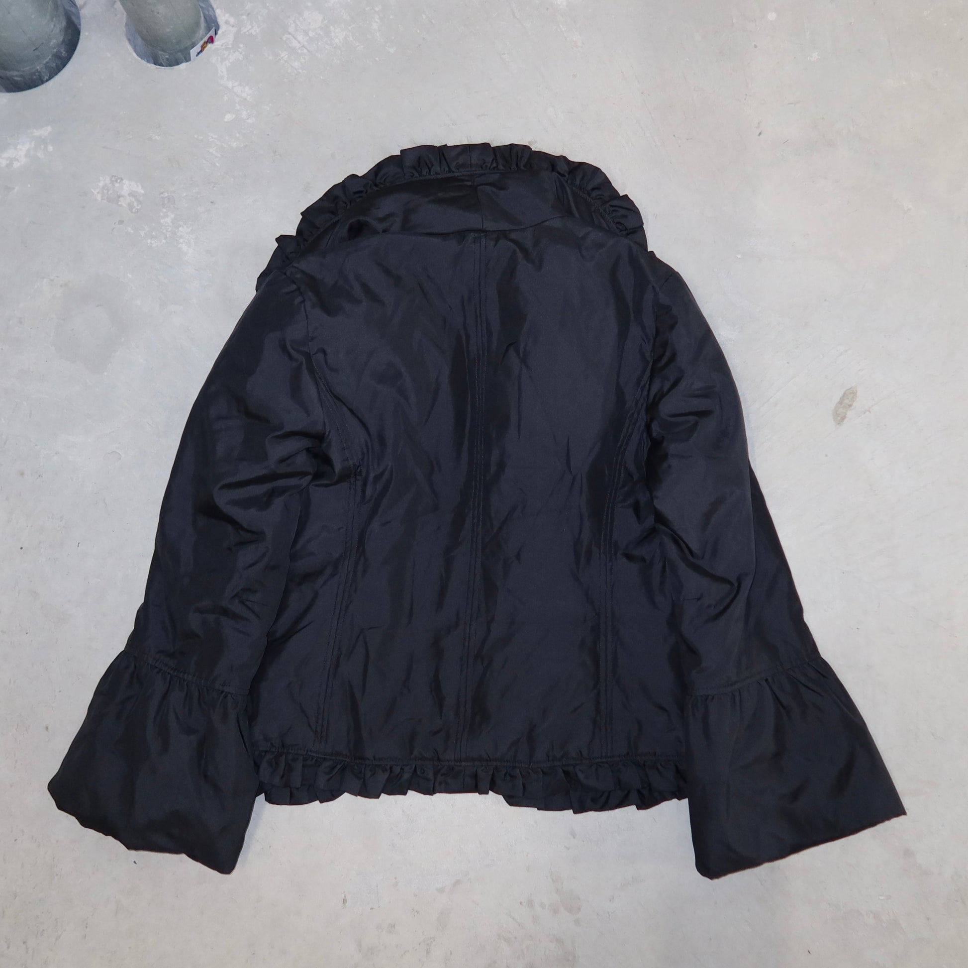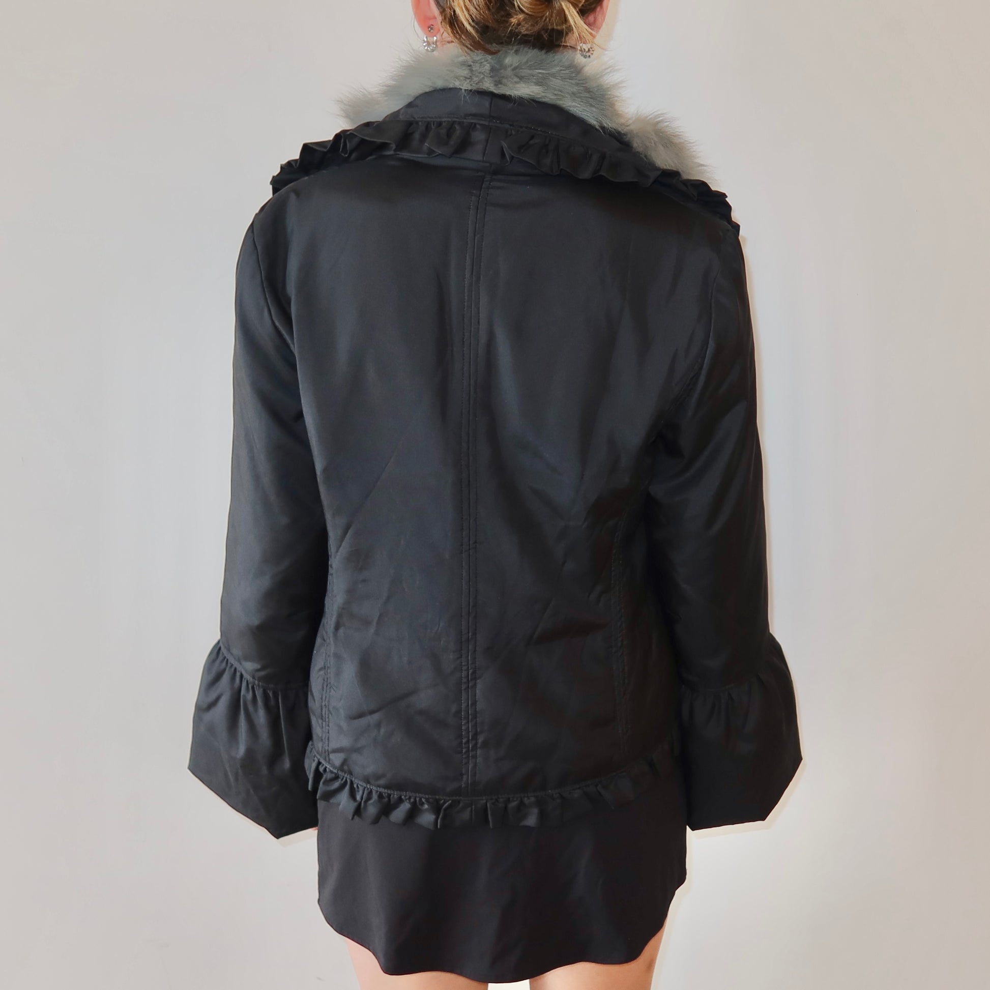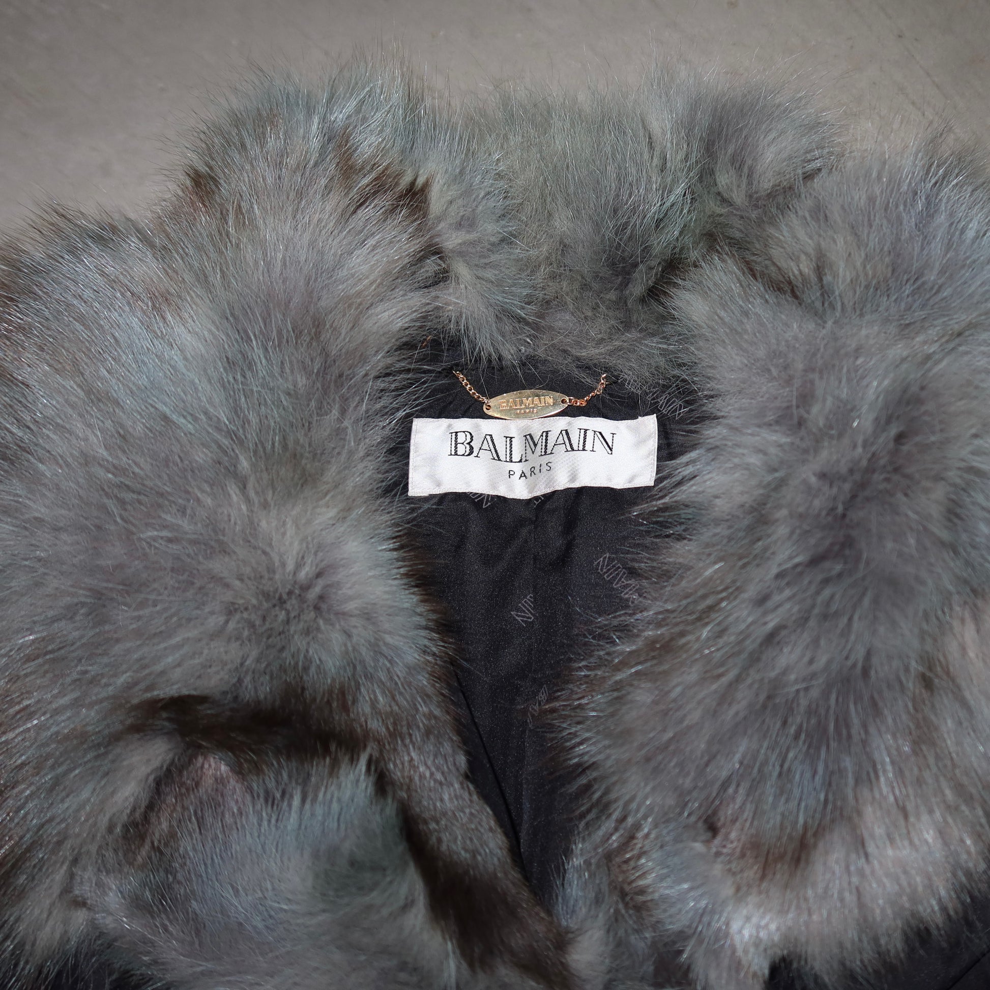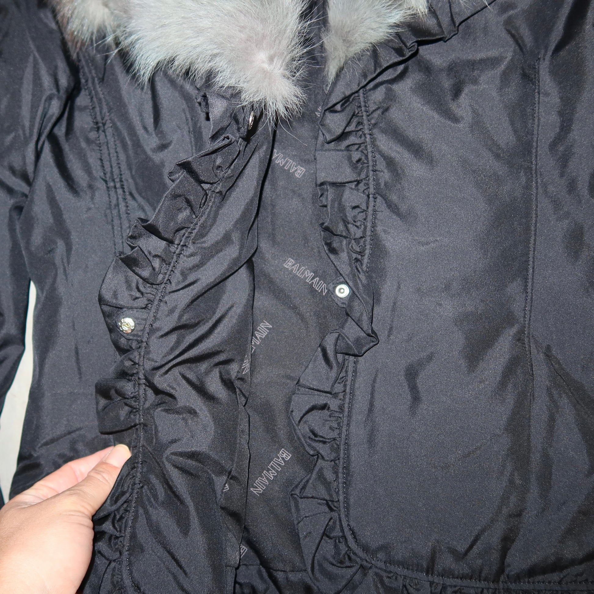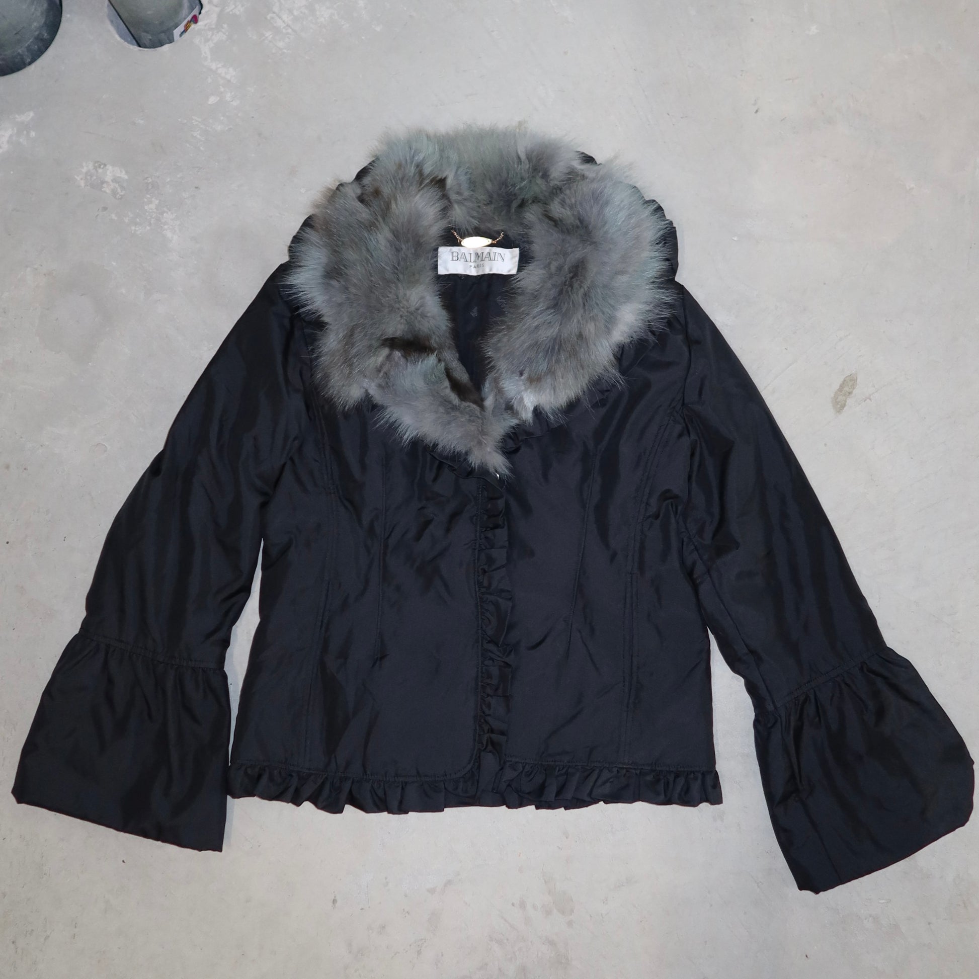Gorgeous Balmain navy nylon jacket with detachable real fur collar. Flared sleeve detail.