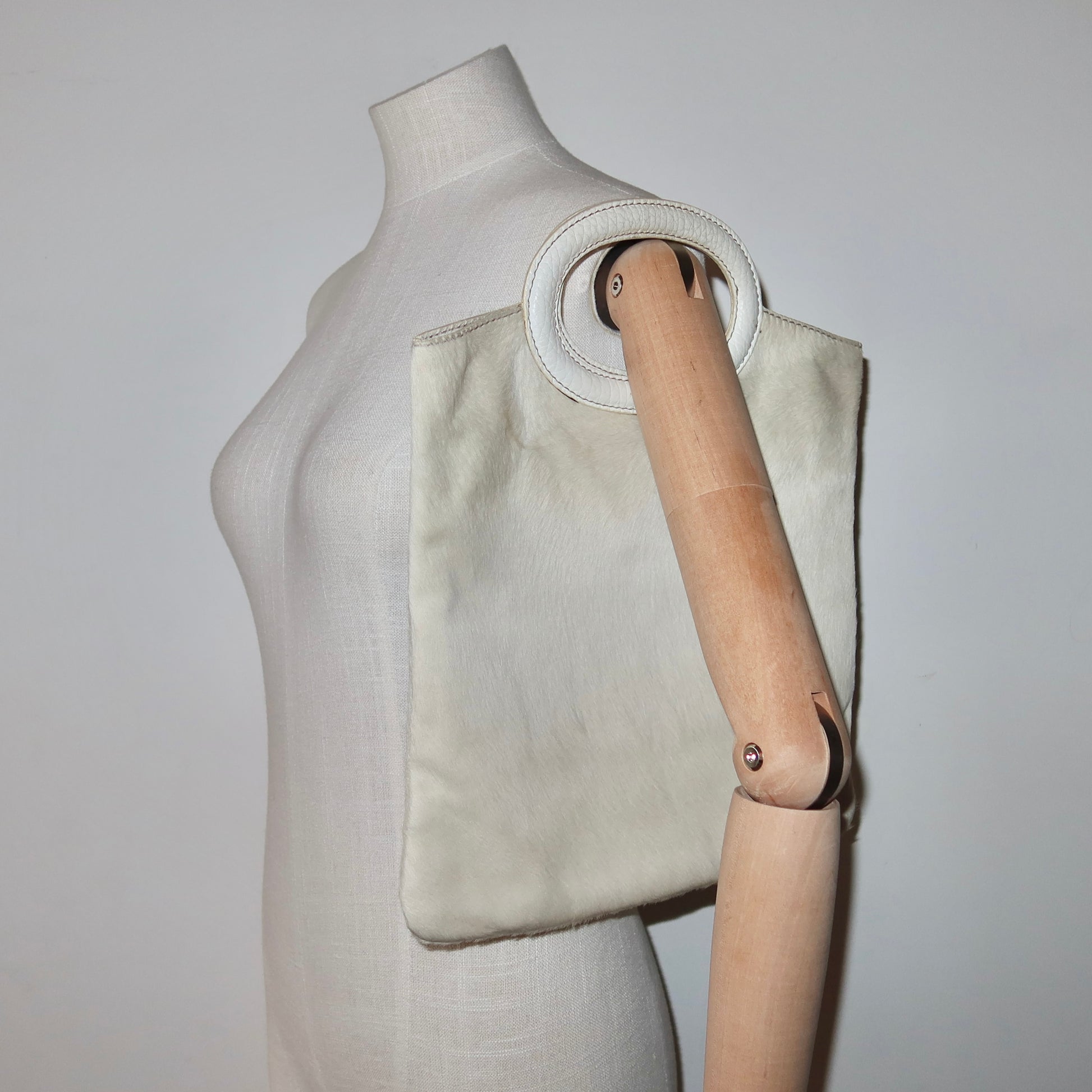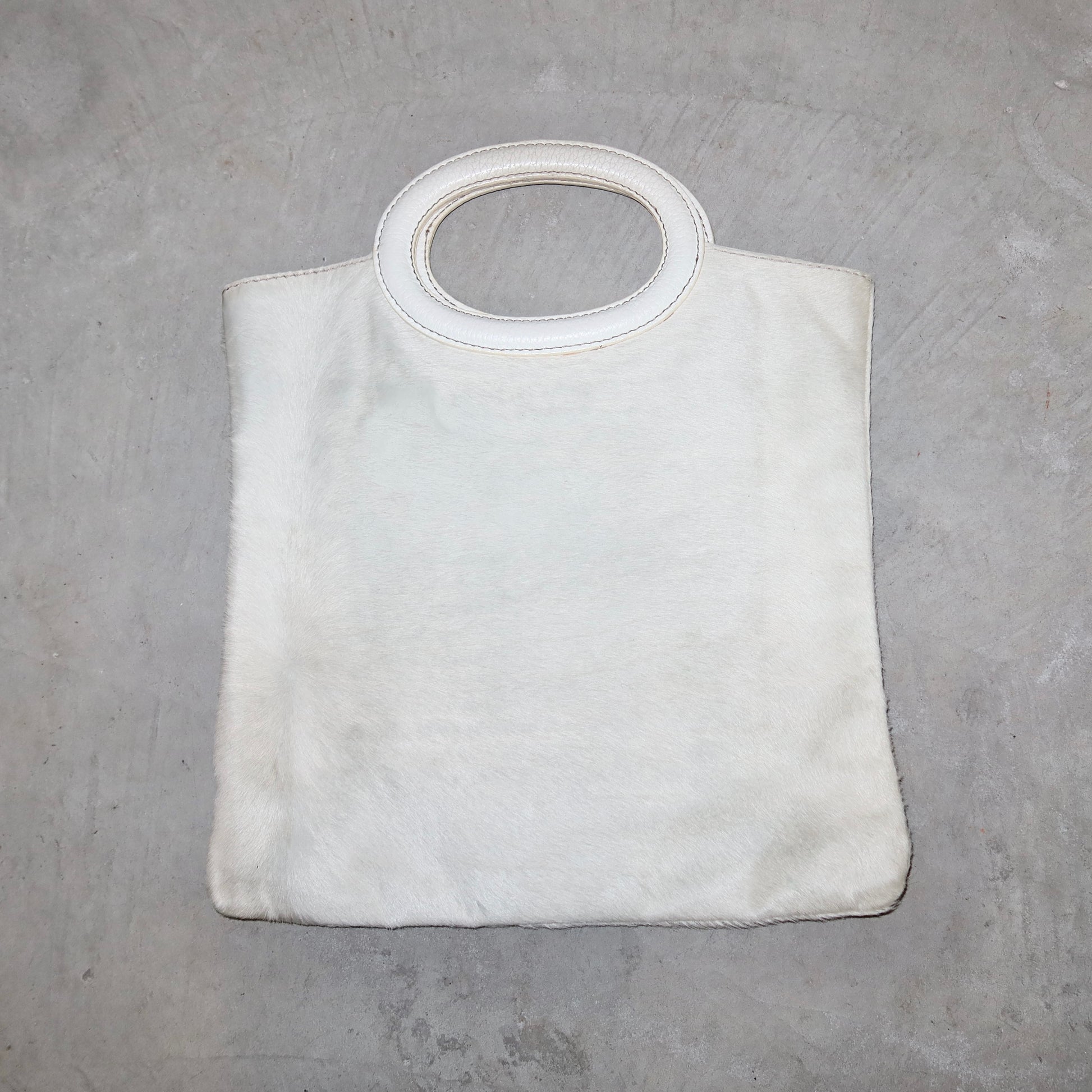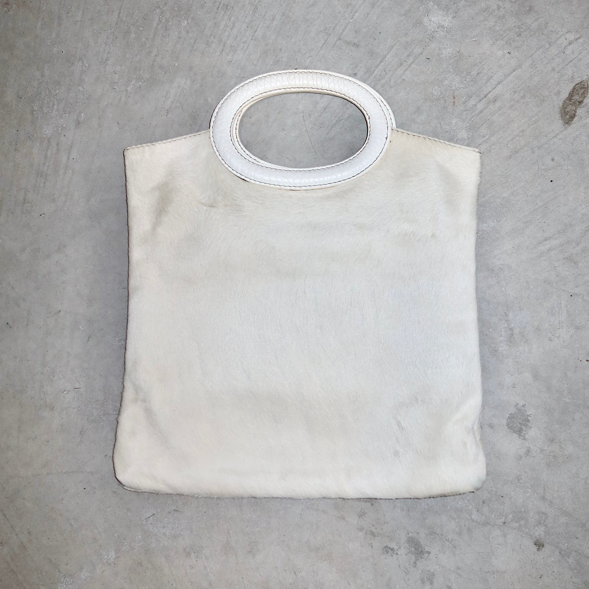 Stunning white cowhide bag by Barney's New York. Please note, this will not fit over the shoulder.