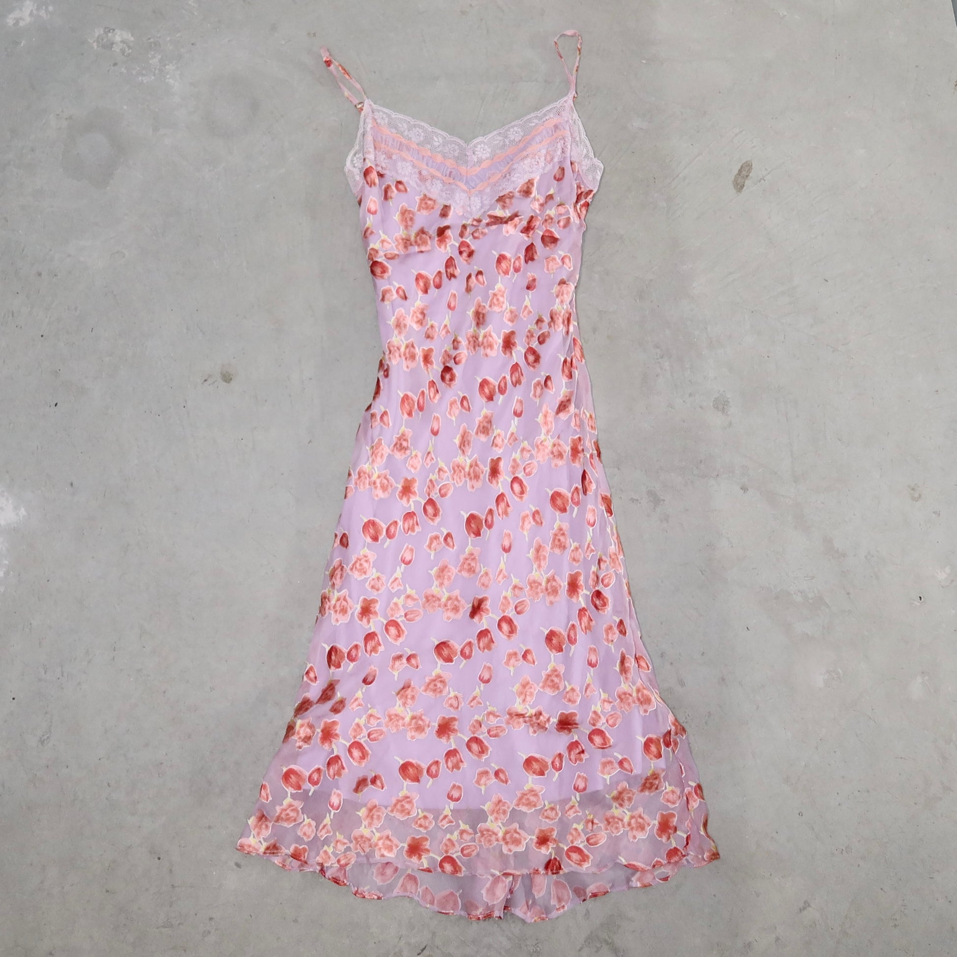 Beautiful rare Betsey Johnson dress with velvet floral detail and a lace trim.