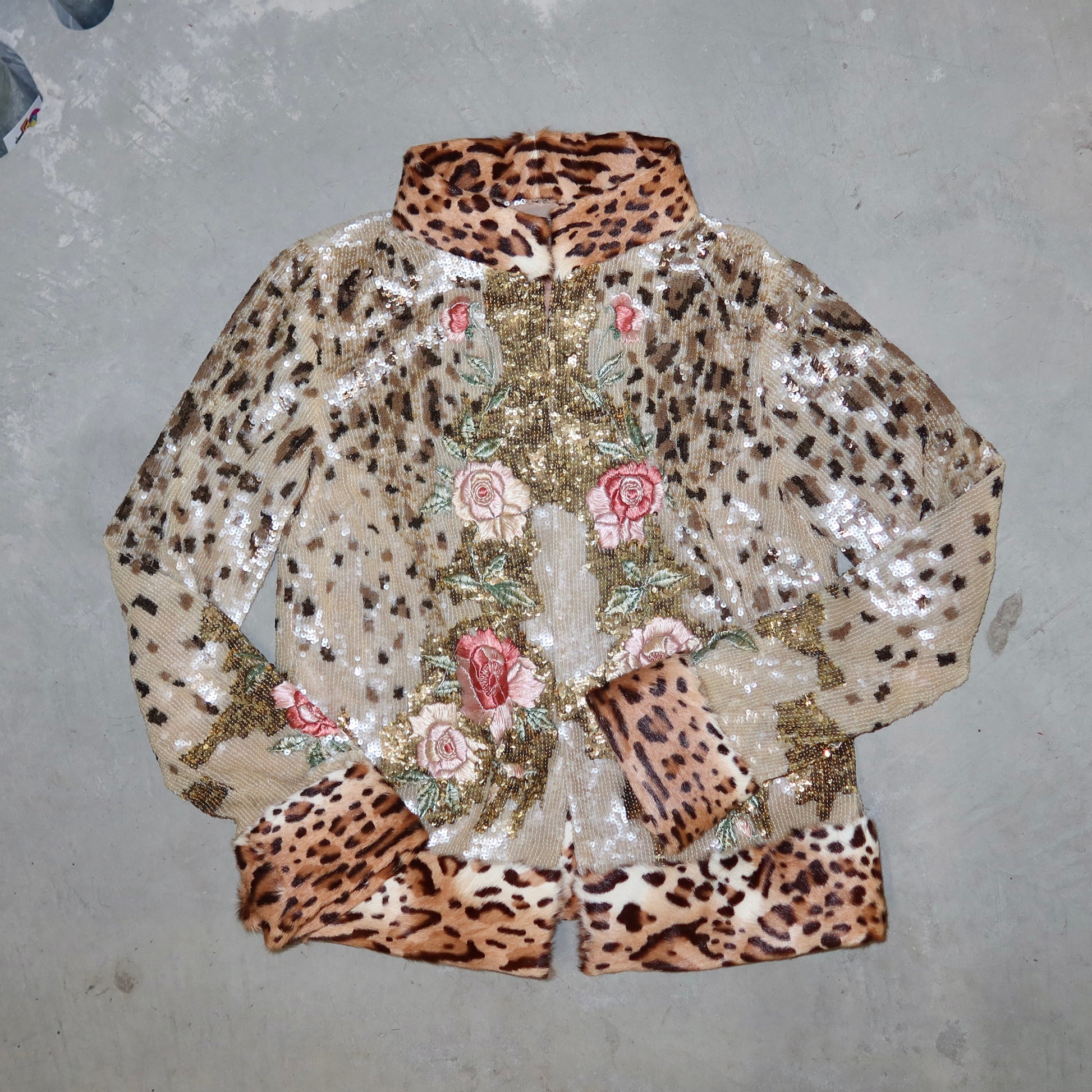 Breathtaking sequin jacket with leopard print pony hair trims from Blumarine's AW2004 runway.