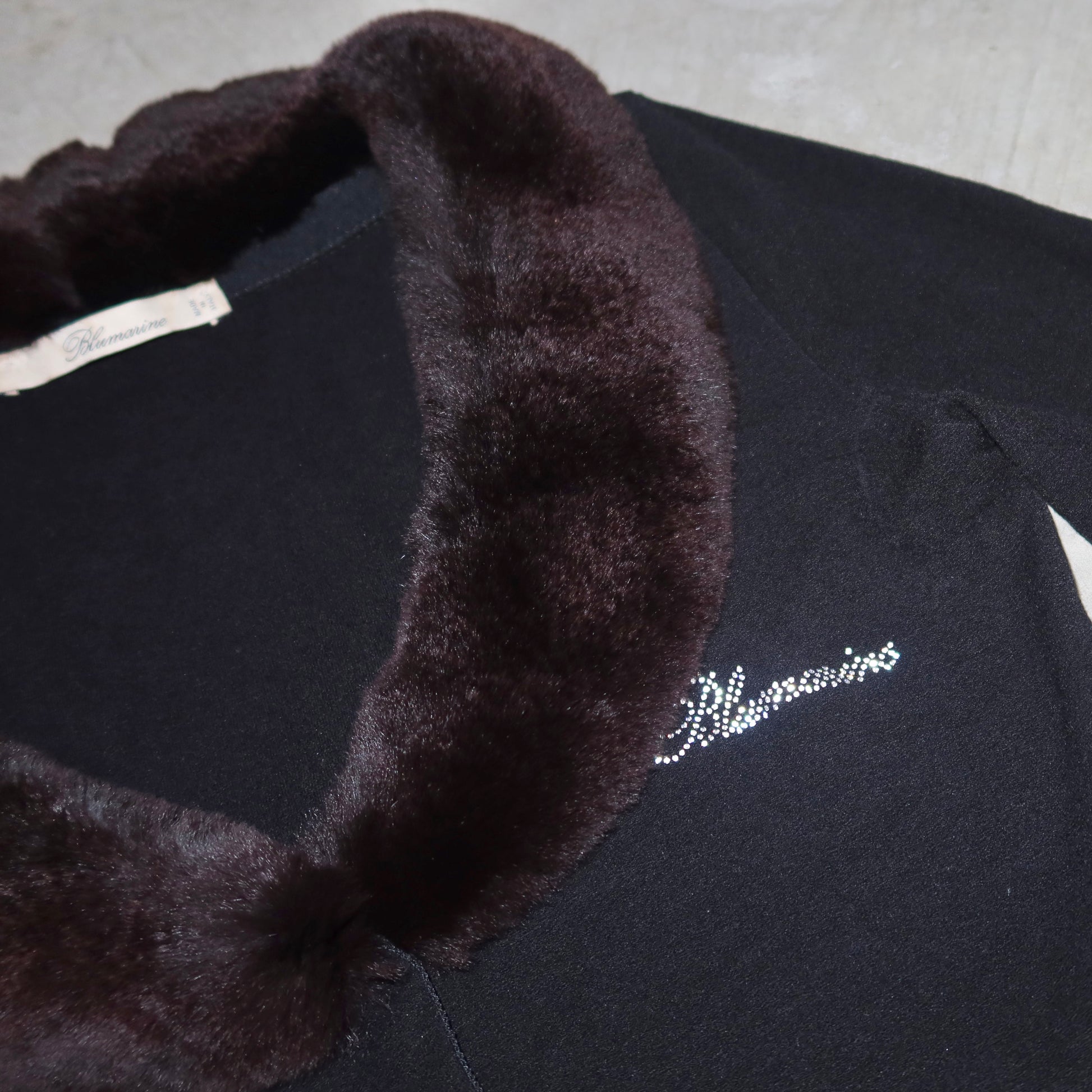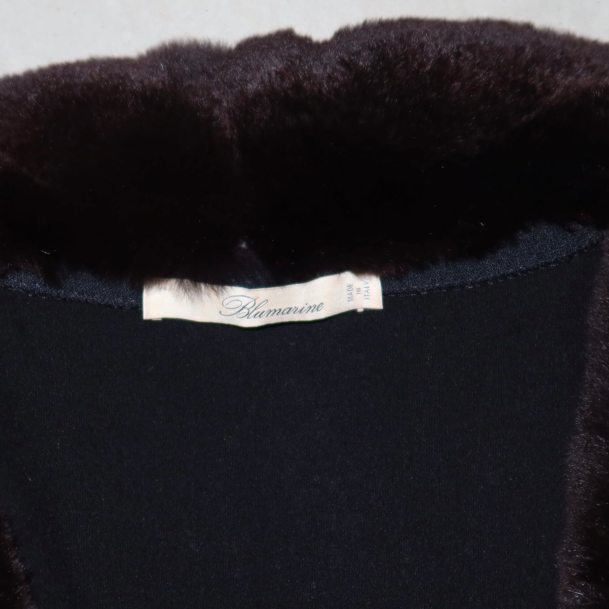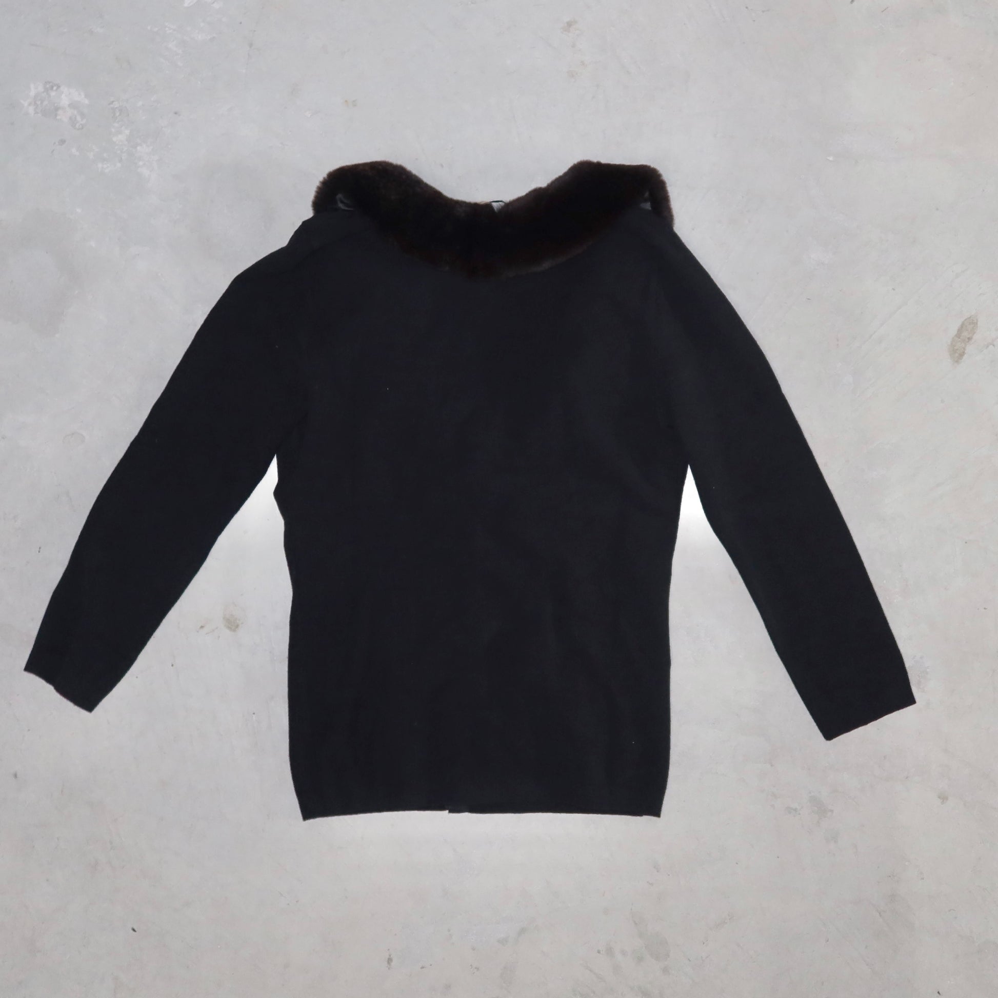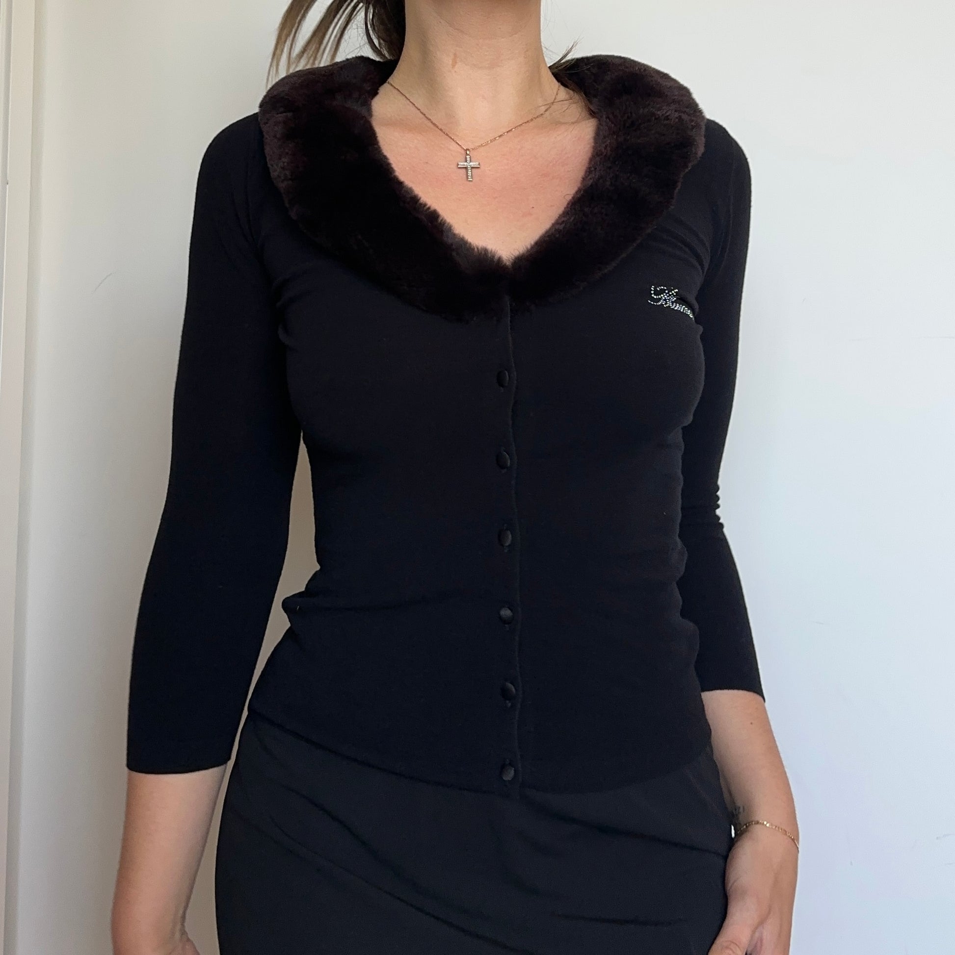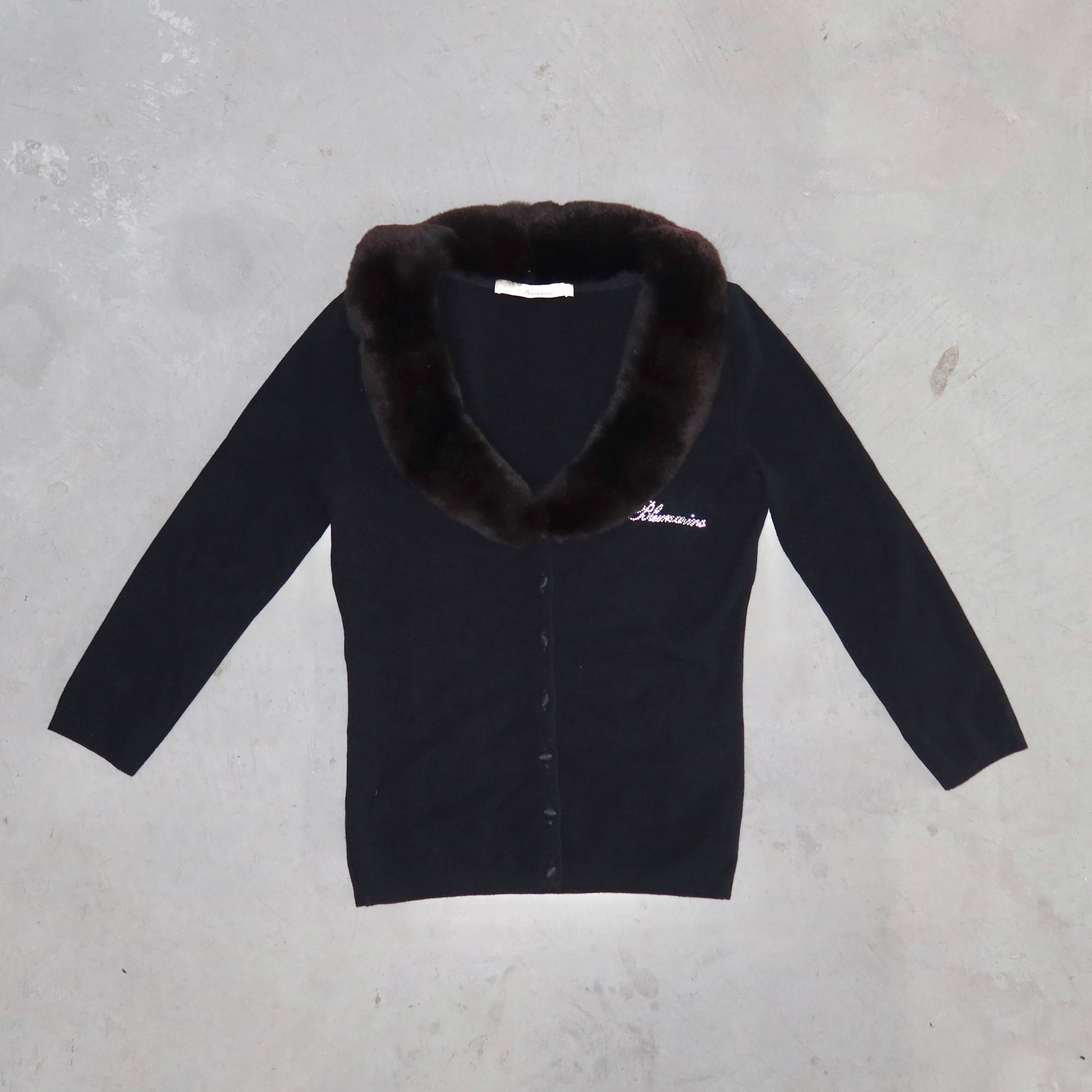 Iconic black Blumarine cardigan with real fur trim (NOT detachable). Rhinestone Blumarine logo on the chest. These babies are super rare and particularly desirable with real fur. Made from a soft and stretchy fabric that is super flattering.