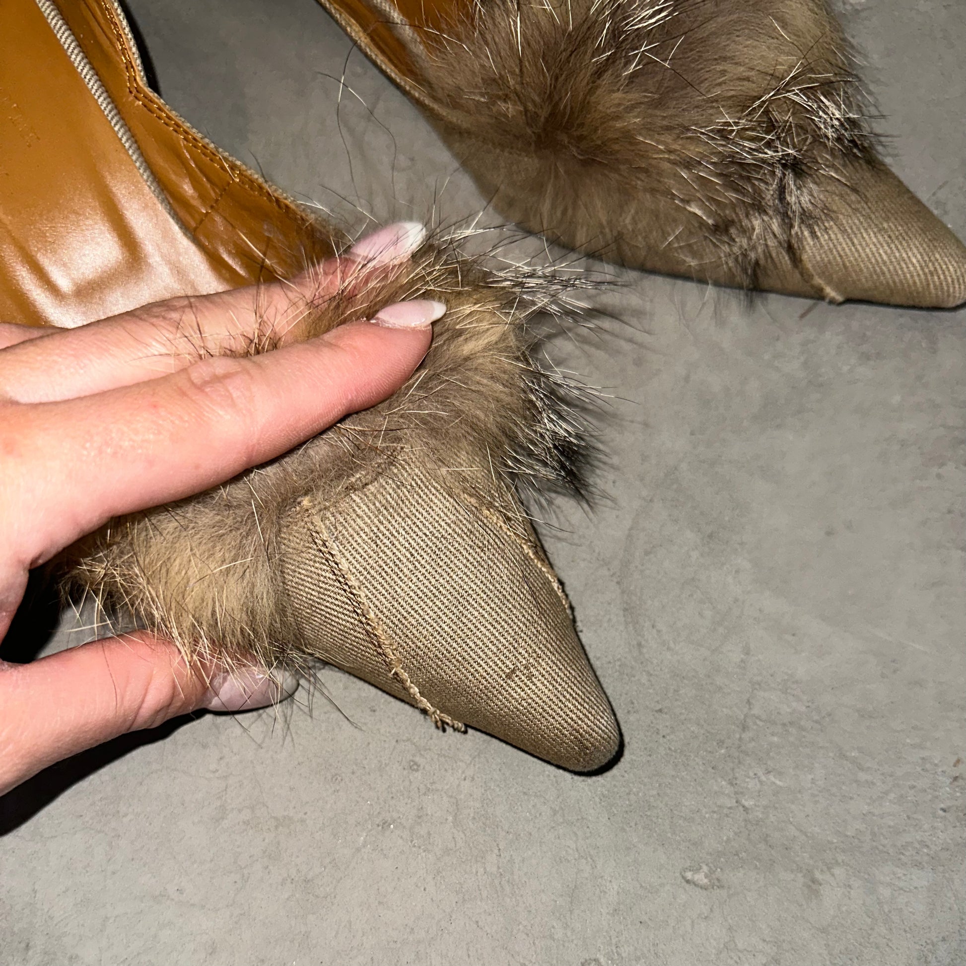 Amazing unworn vintage condition BUT there is a small stain on the back of the left shoe :( see photographs.