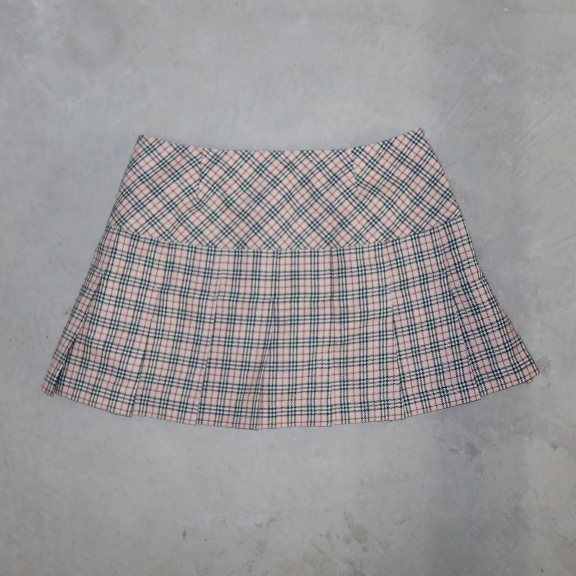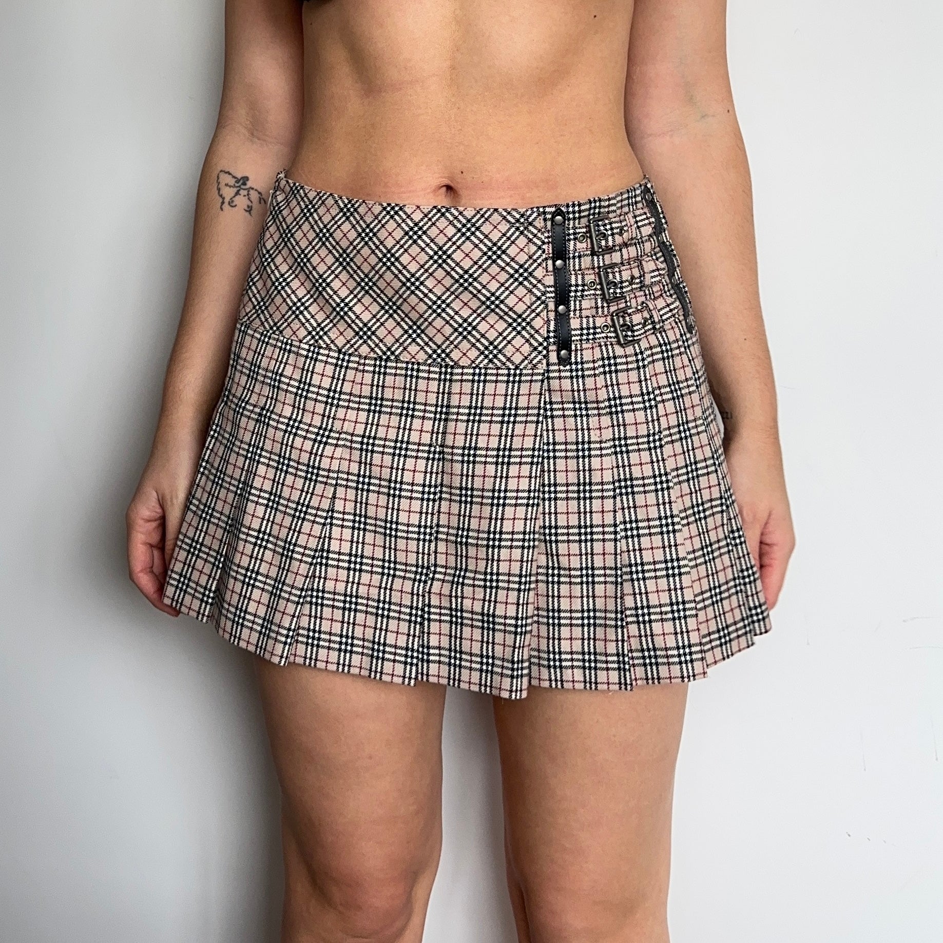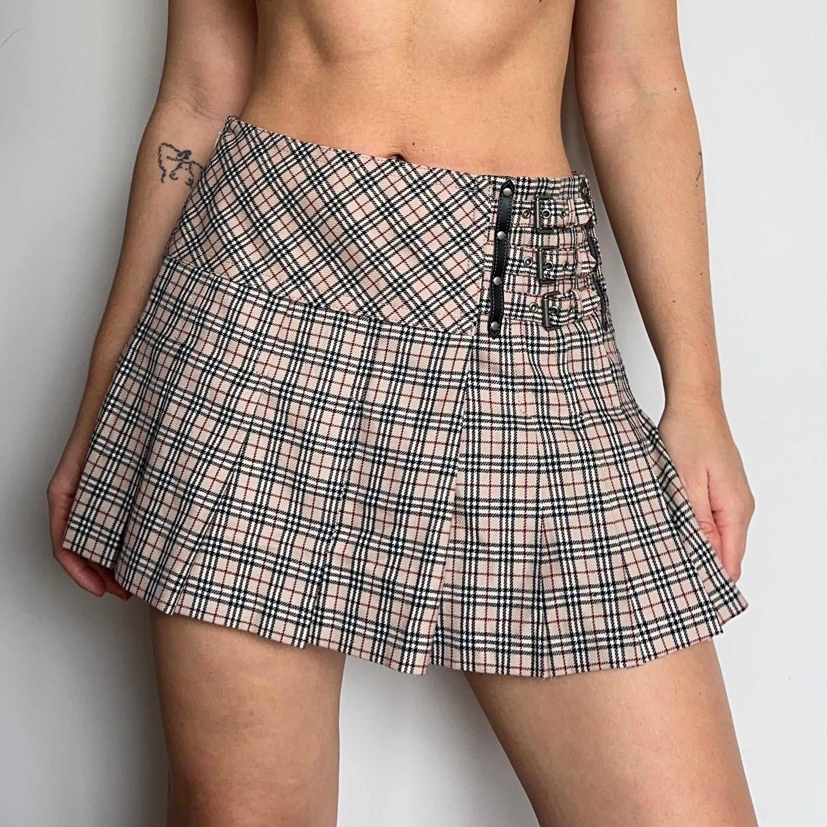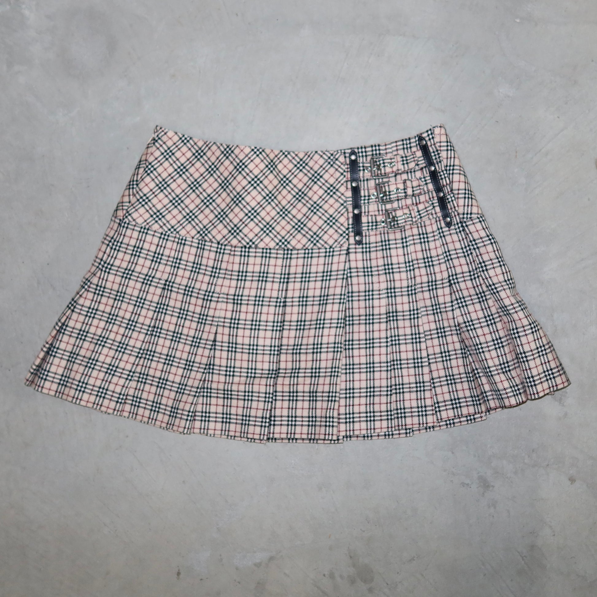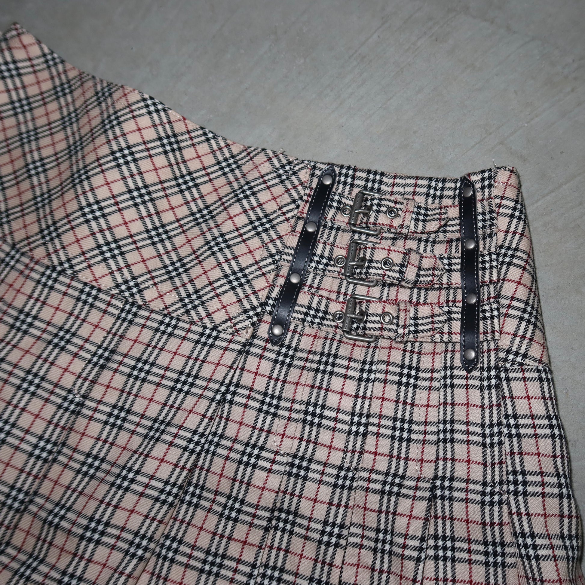 Gorgeous nova check pleated Burberry Blue Label mini skirt with buckle accents.
