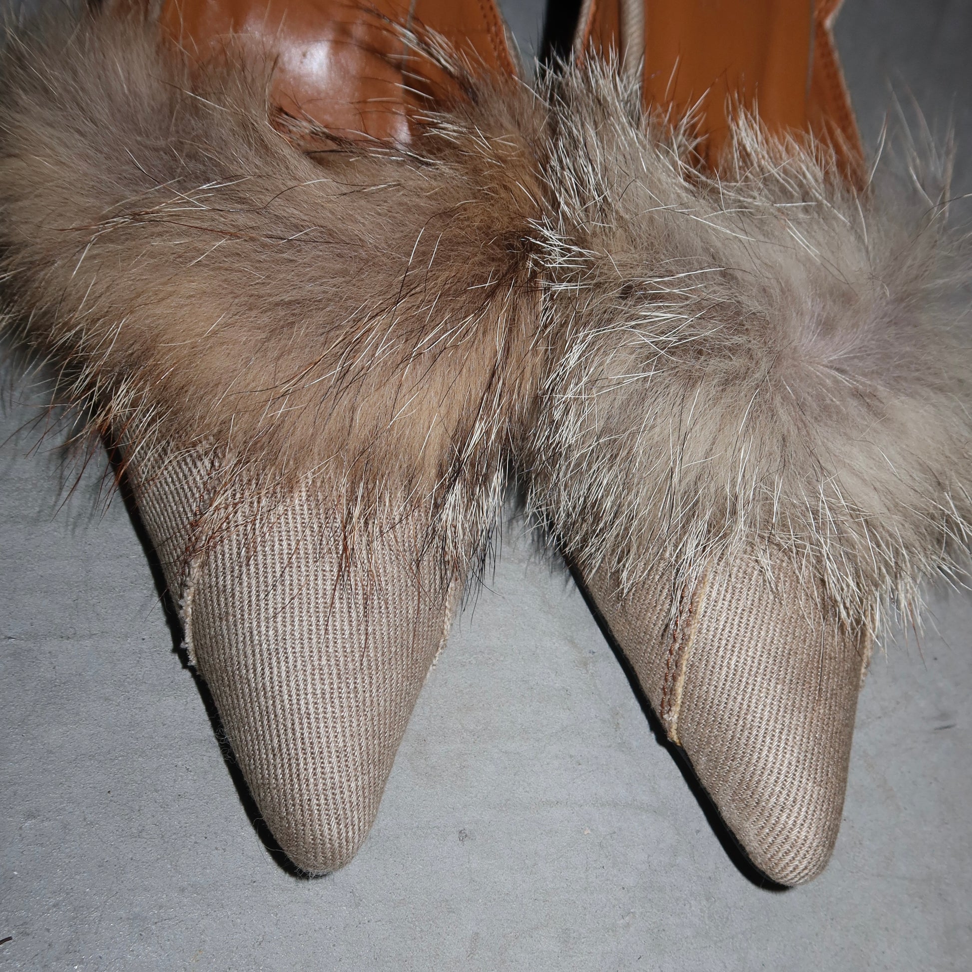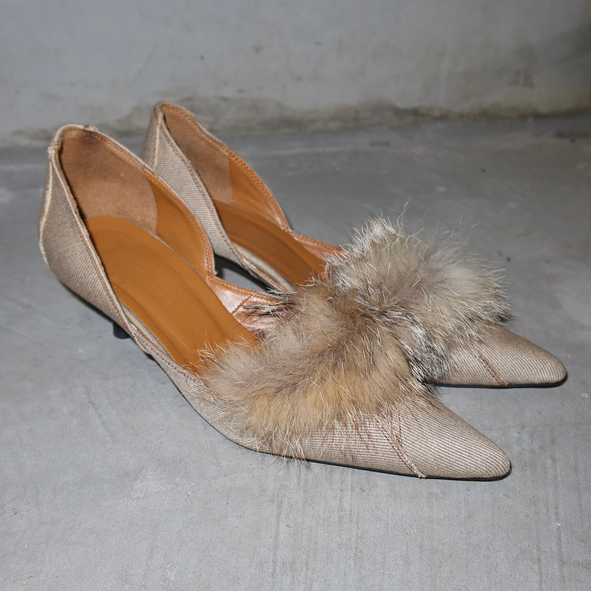 Beautiful brown kitten heels by Burberry Blue Label with real fur accents. I will be eternally jealous of whoever buys these!