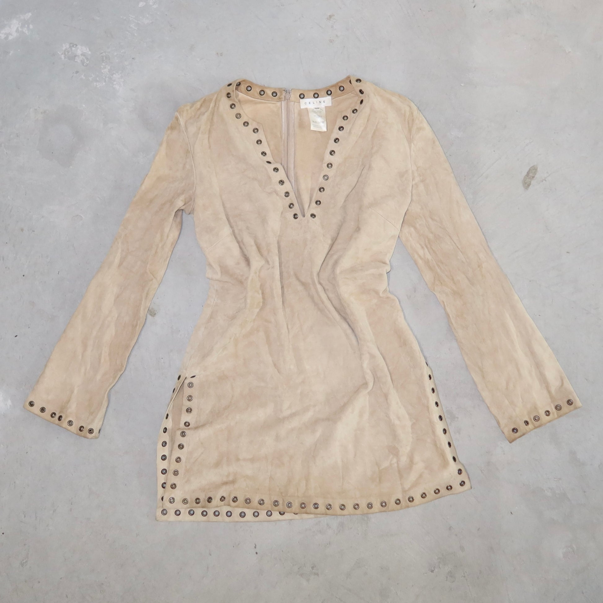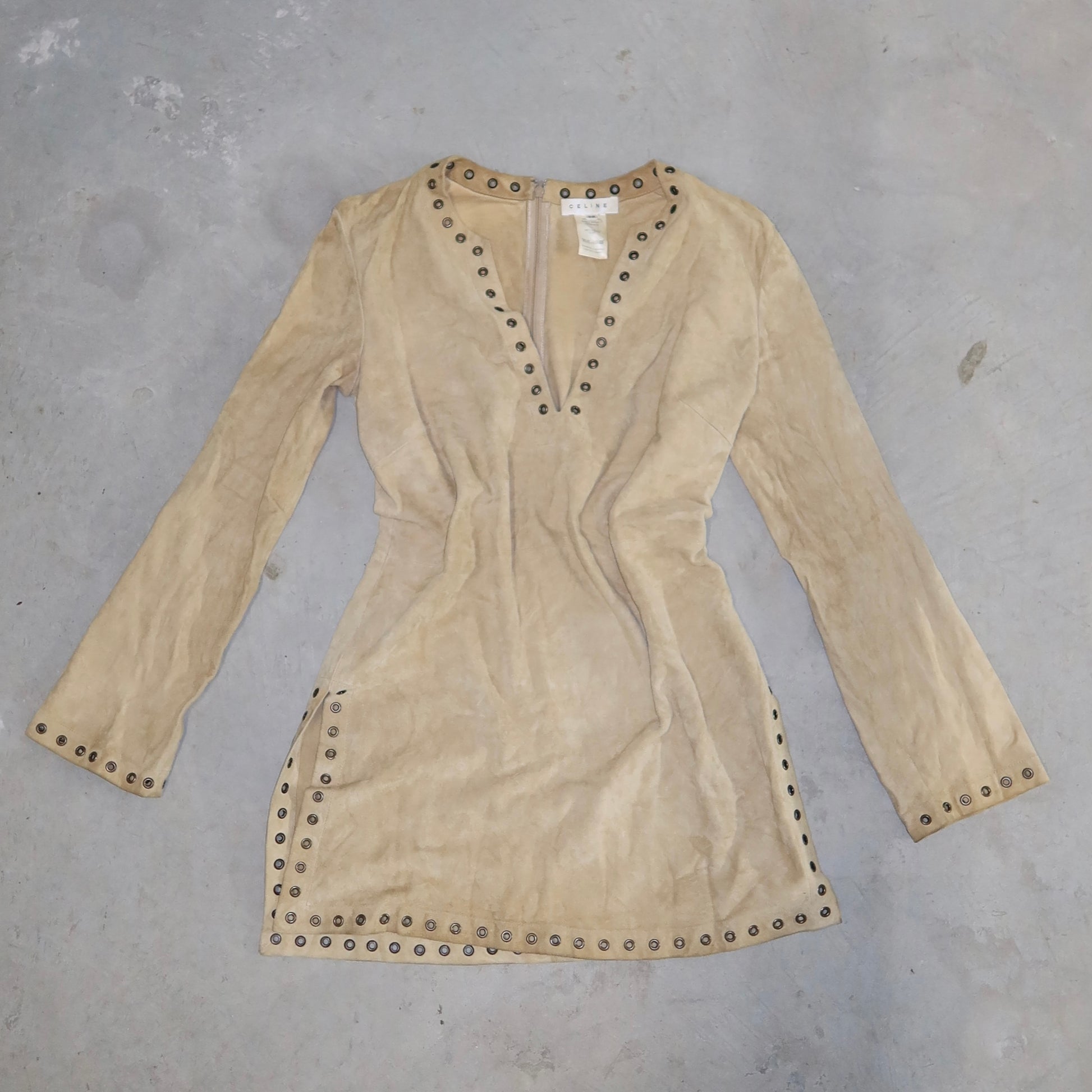 Beautiful suede tunic from Michael Kors' era at Celine (my personal favourite). Cute studded details. Could be worn as a dress on someone short!!
