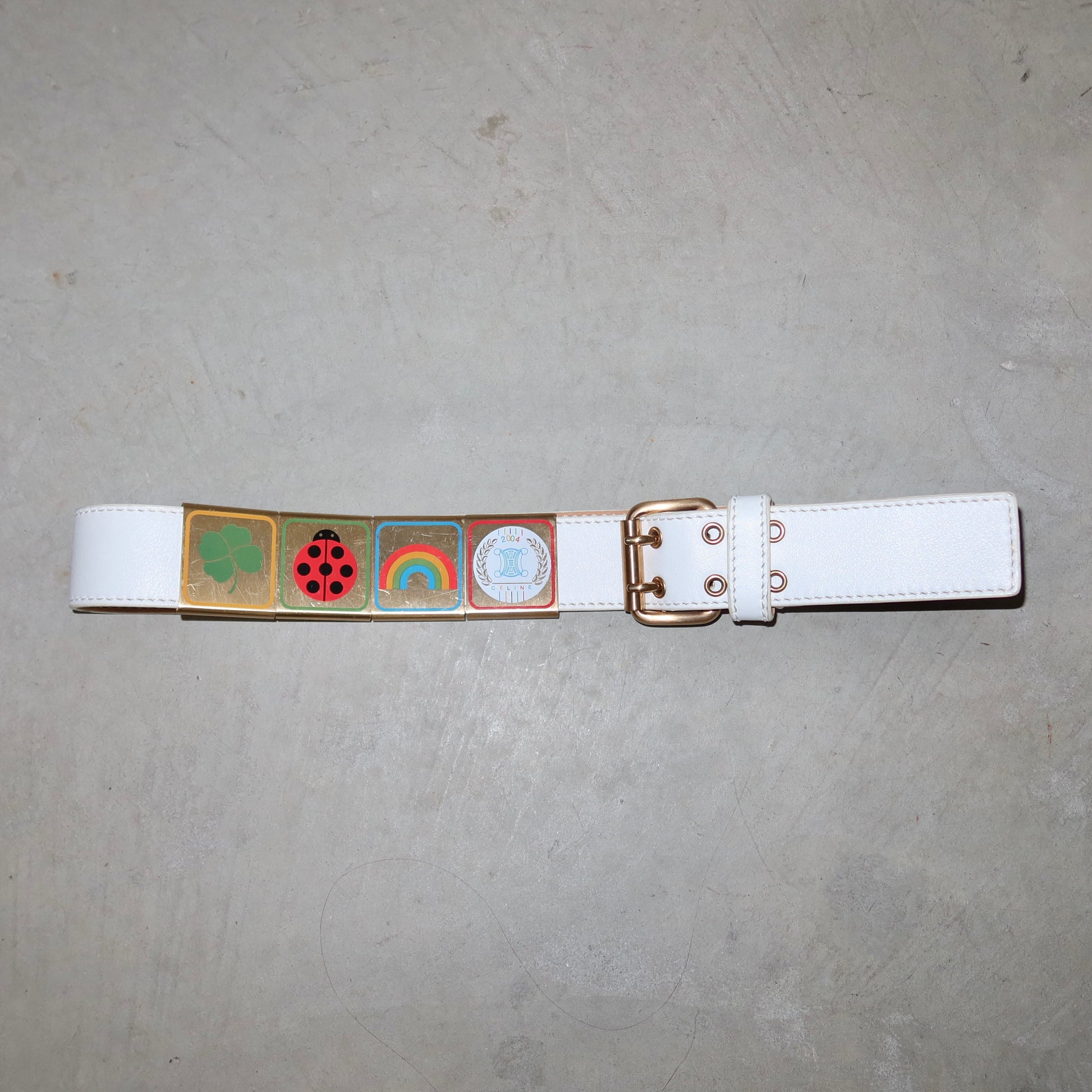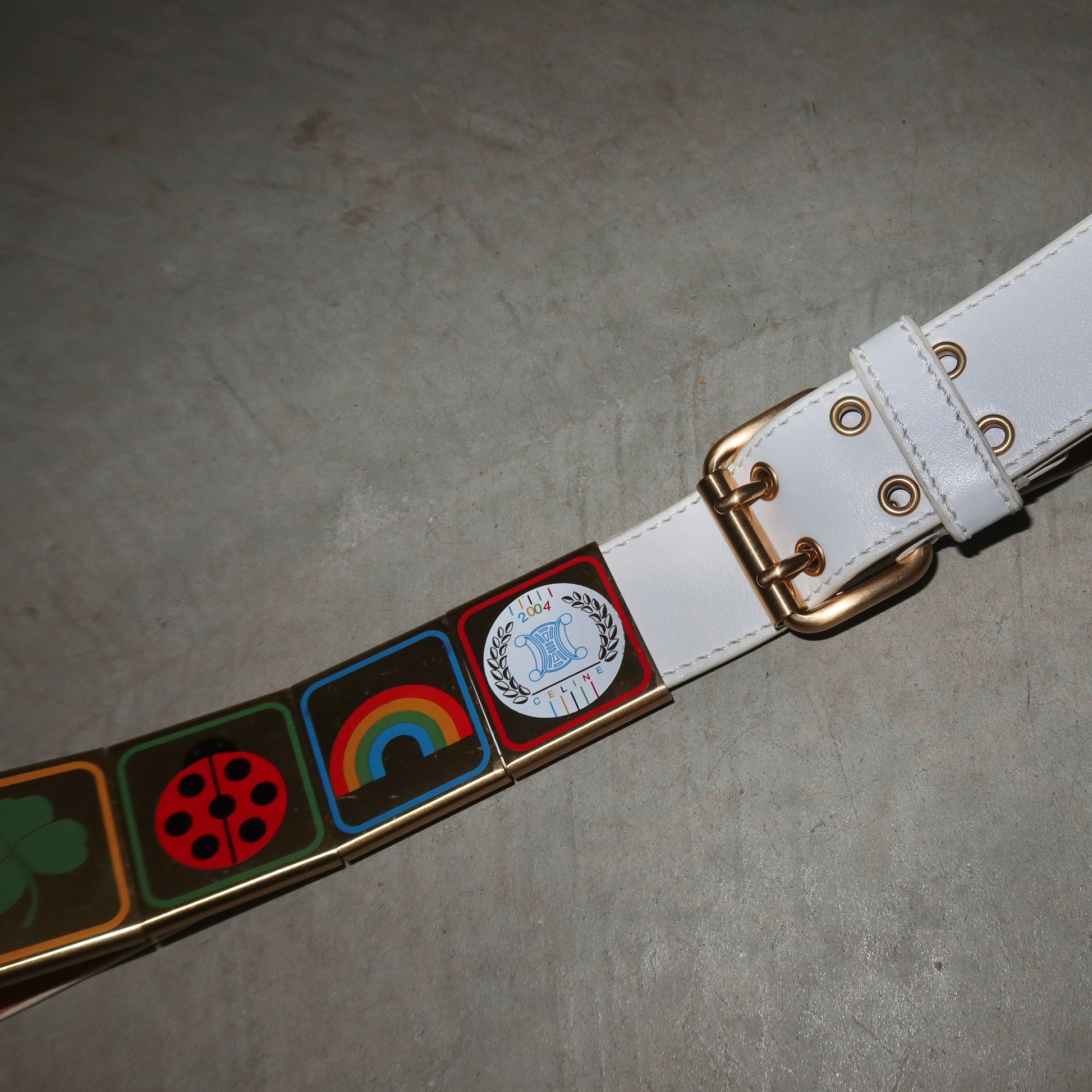 Insane rare Celine 2004 Olympic era belt. Boy Scout style with slot-on gold charms.