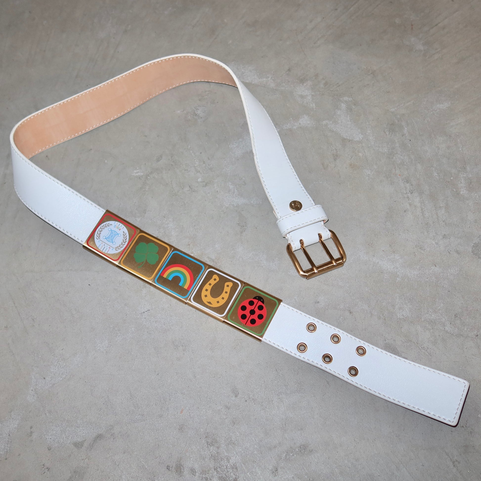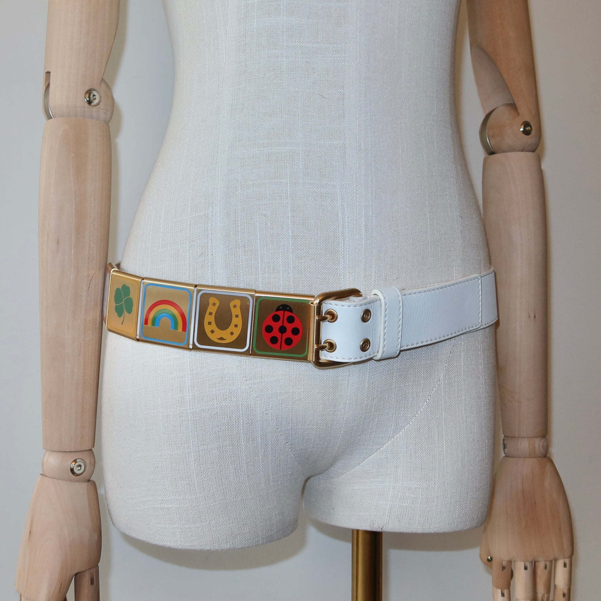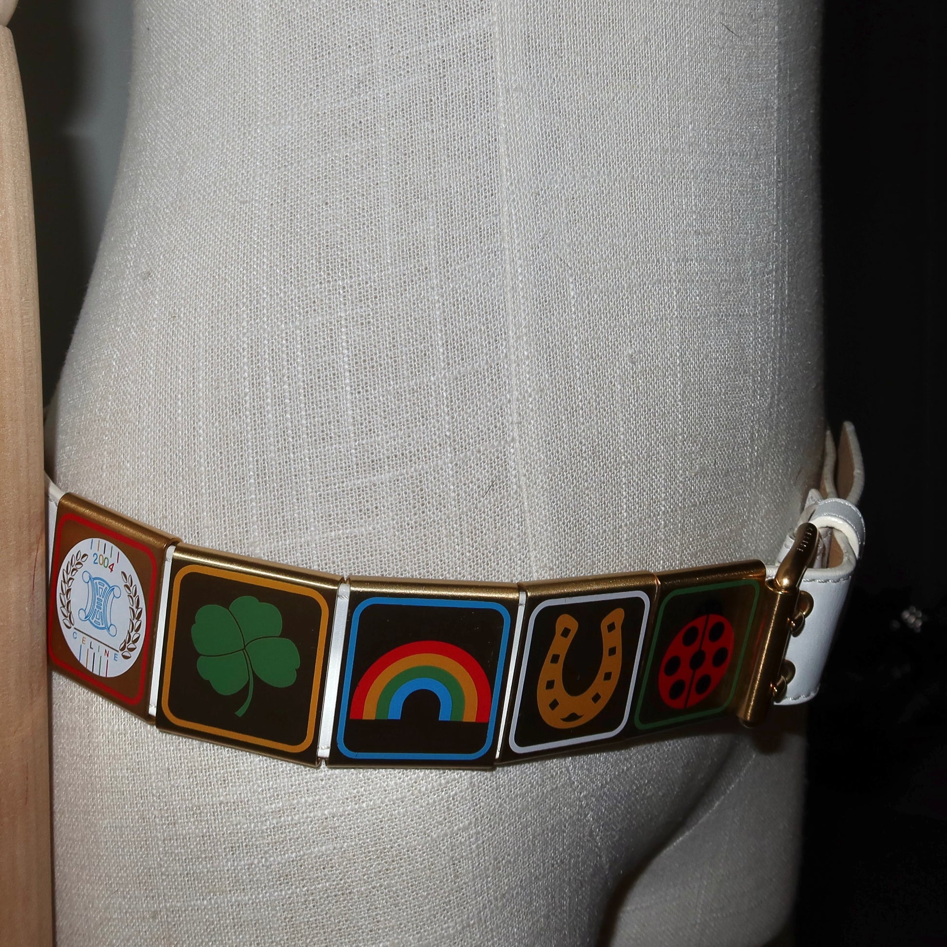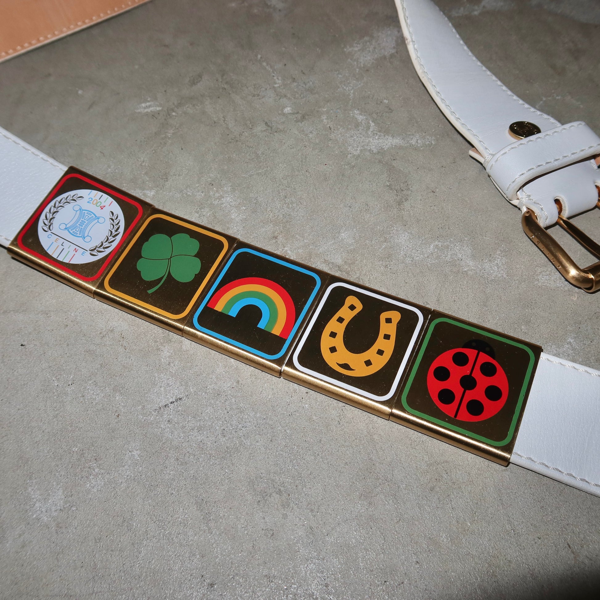 Insane rare Celine 2004 Olympic era belt. Boy Scout style with slot-on gold charms.