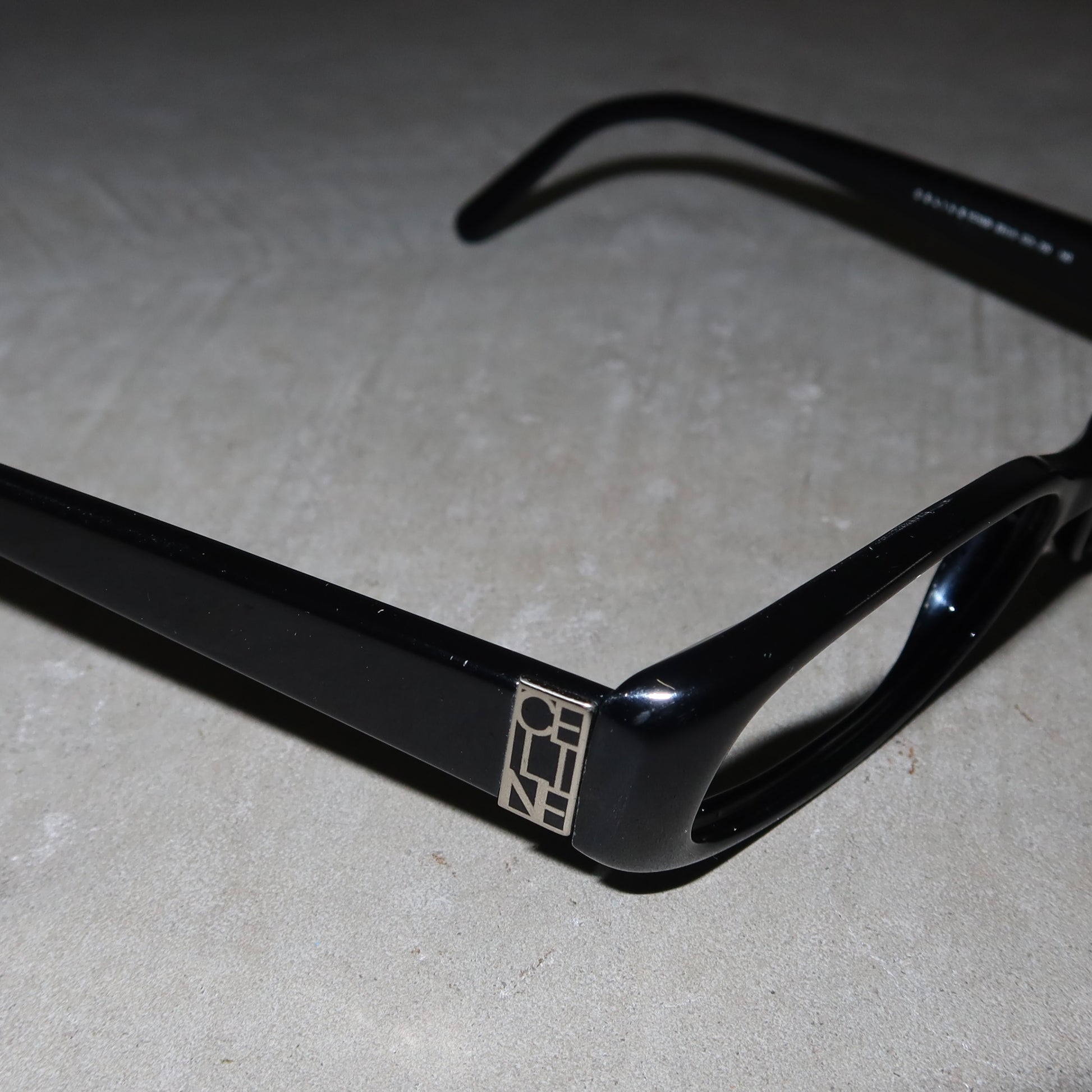 Beautiful thick black Celine frames with their iconic early 00’s stacked logo on the legs. No frame is currently fitted. Best suited to a smaller face shape.