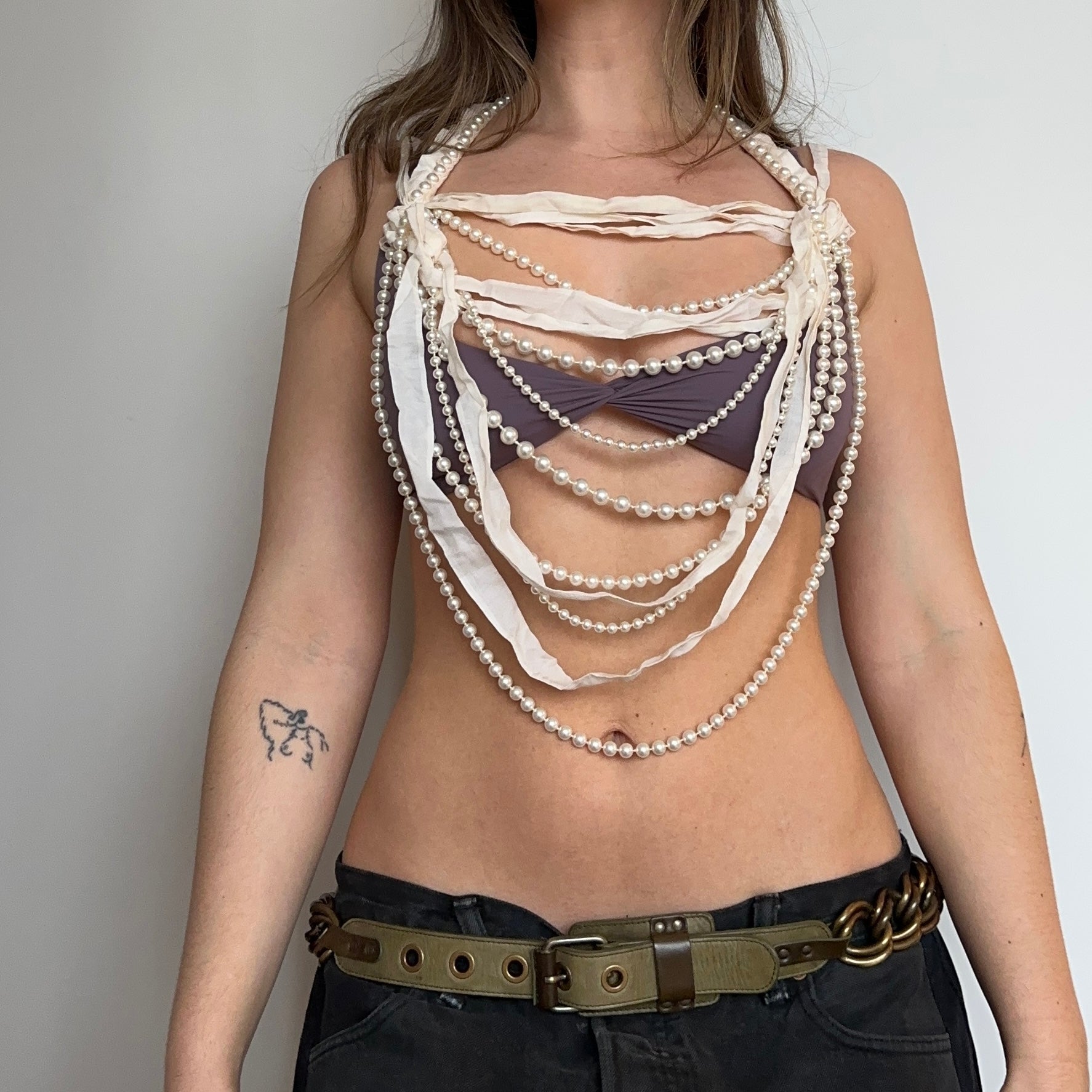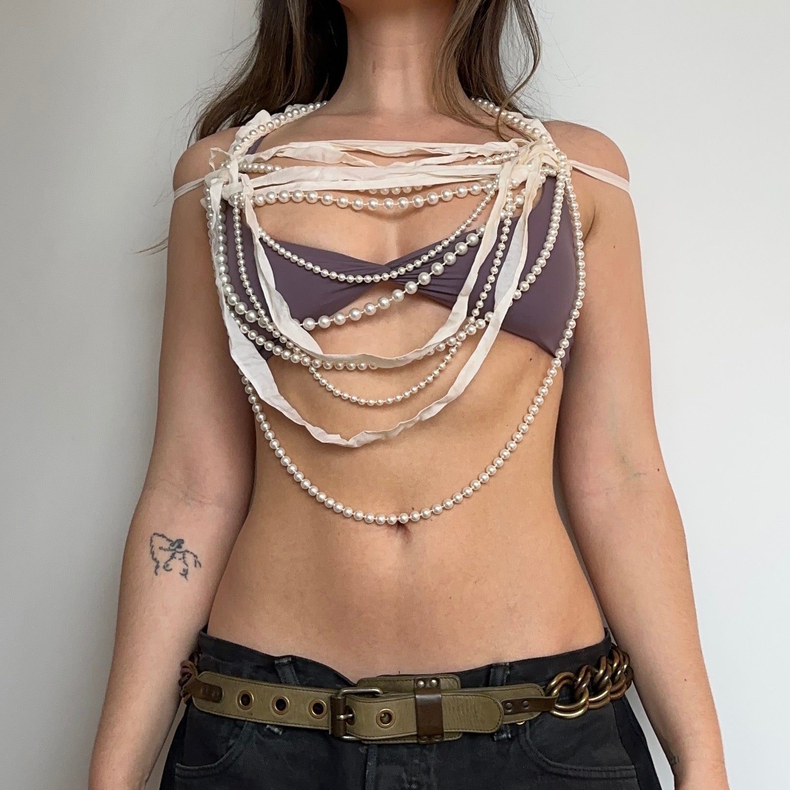 Beautiful faux pearl layered necklace. Can also be used like body jewellery alone with underwear.
