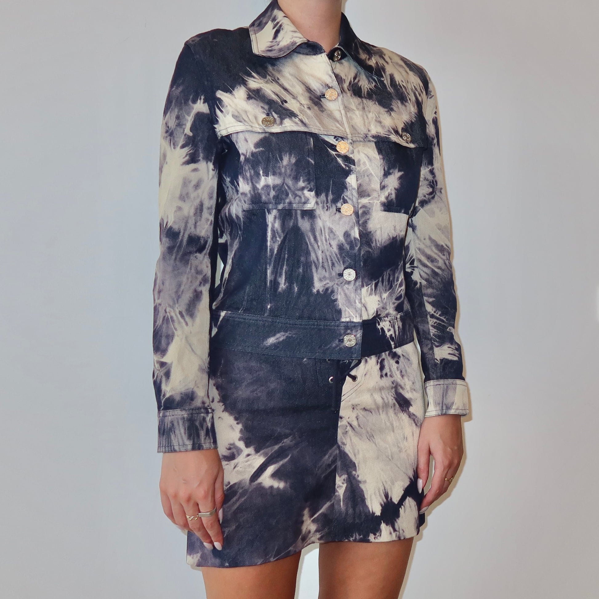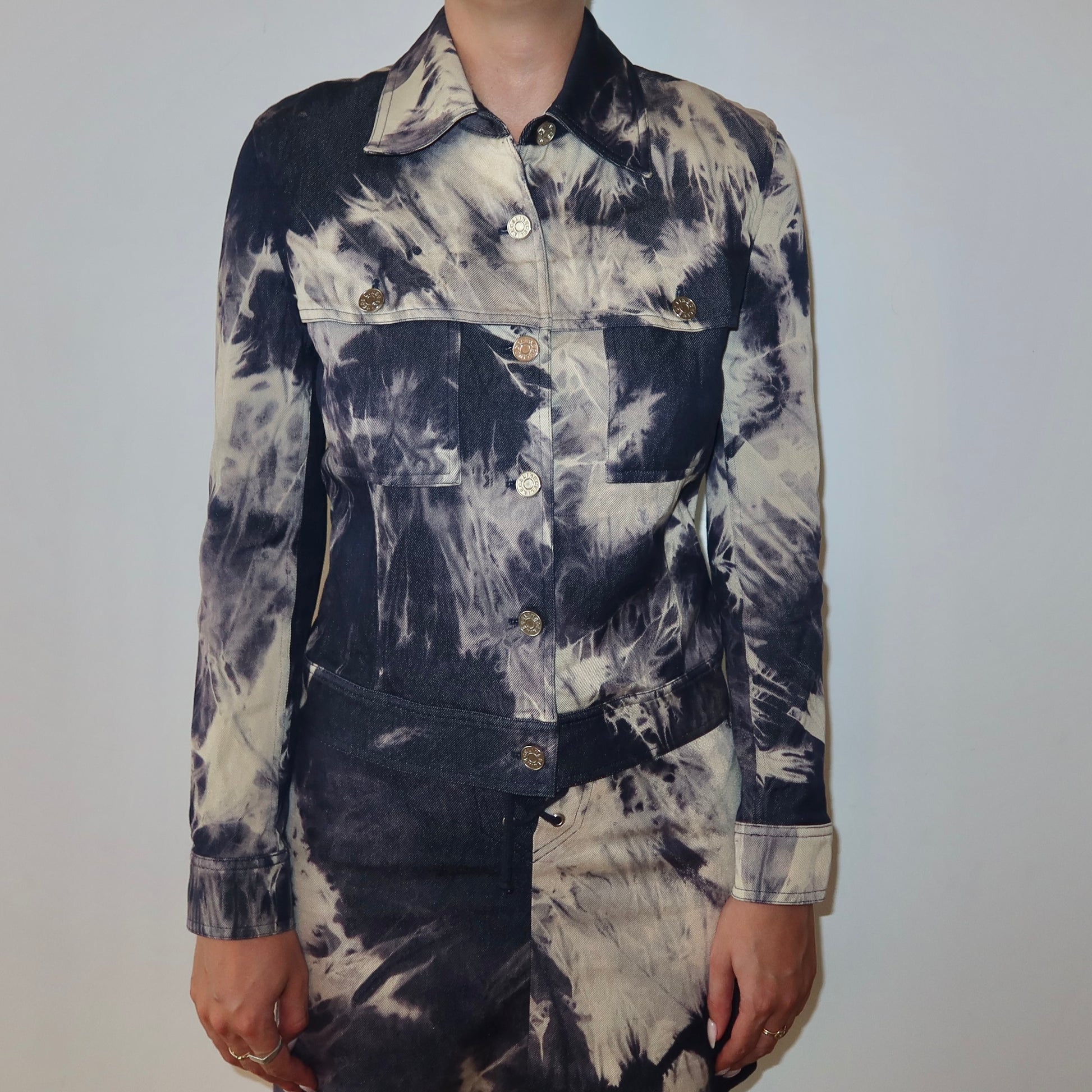 Gorgeous Celine tie dye/acid wash silk blend jacket from their iconic SS2000 collection by Michael Kors. Matches perfectly with our other pieces from the same collection.