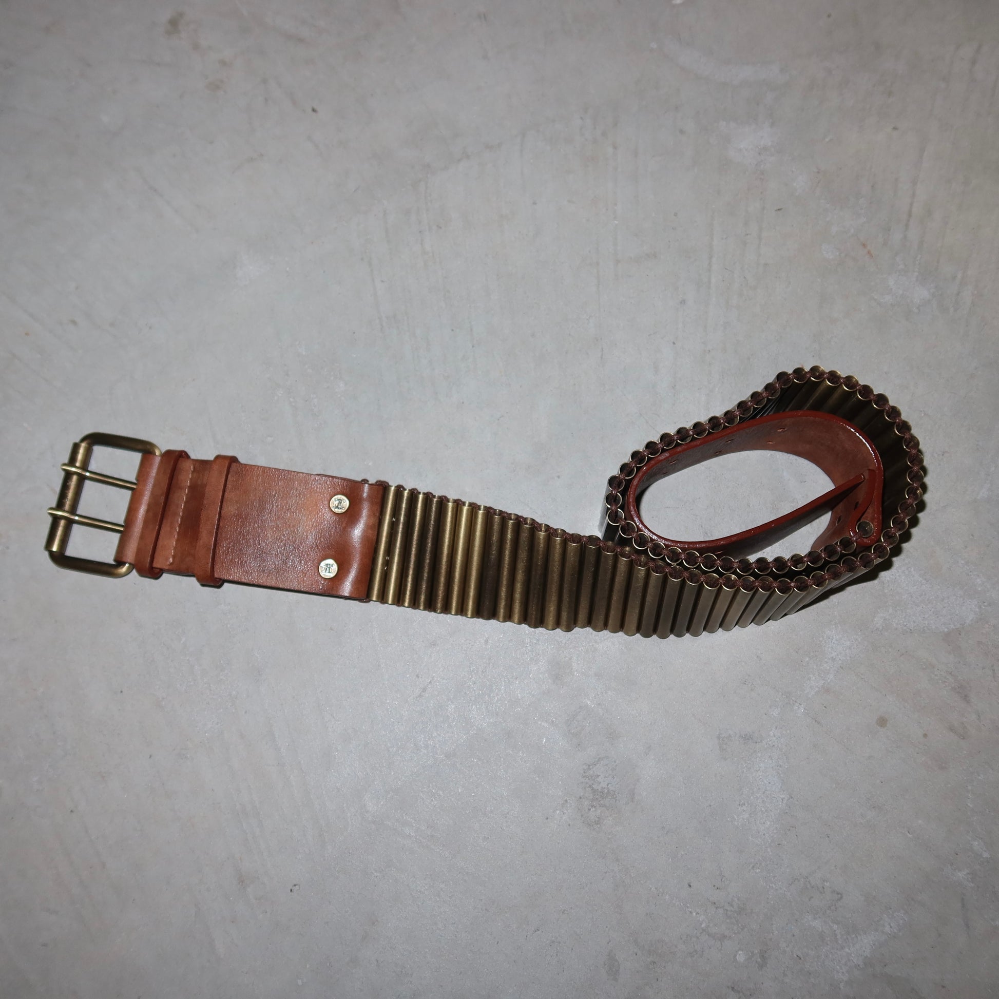 Beautiful Celine brown leather bullet casing belt from Michael Kors' SS2001 collection. These bullet casing pieces are very sought after and feature heavily on the SS2001 runway.