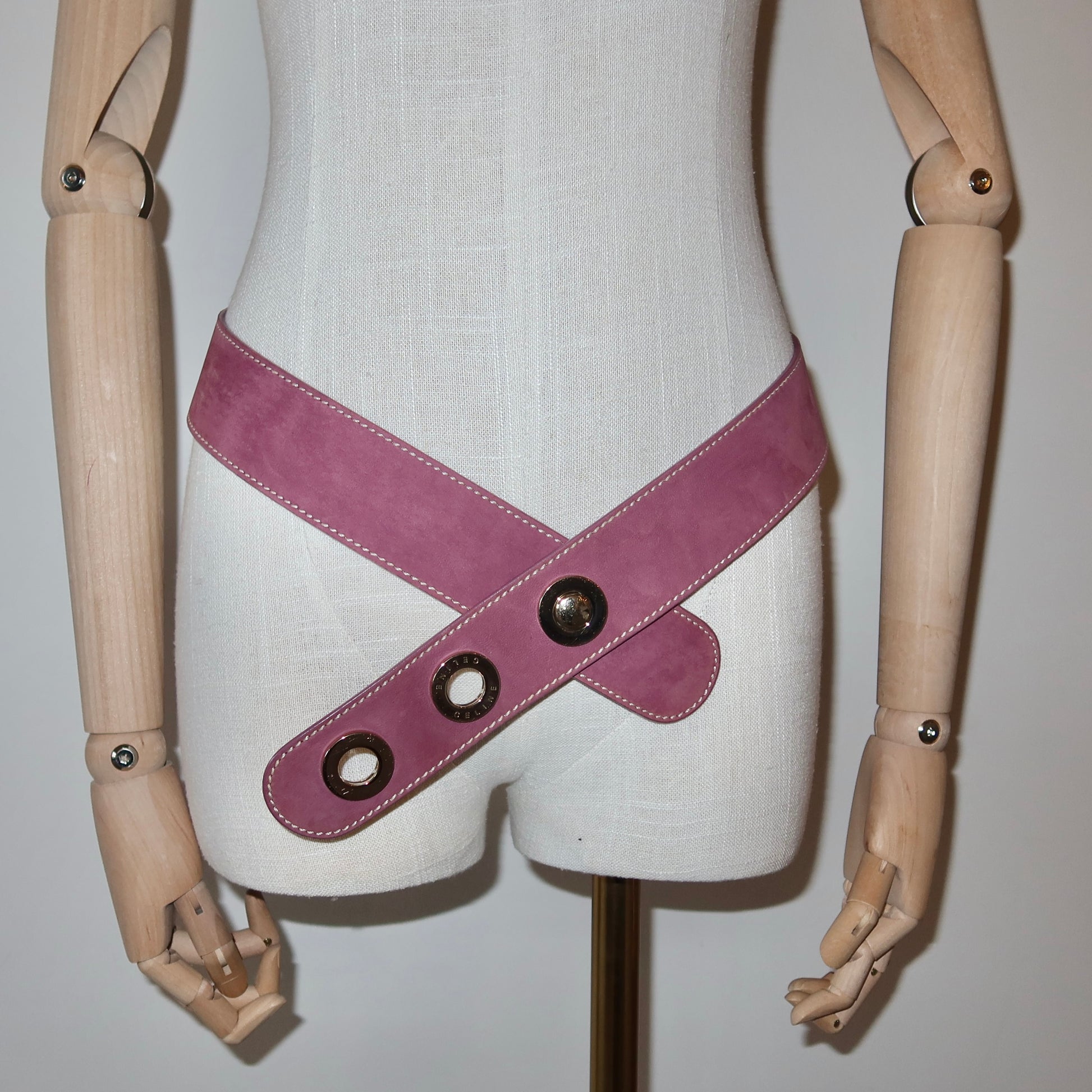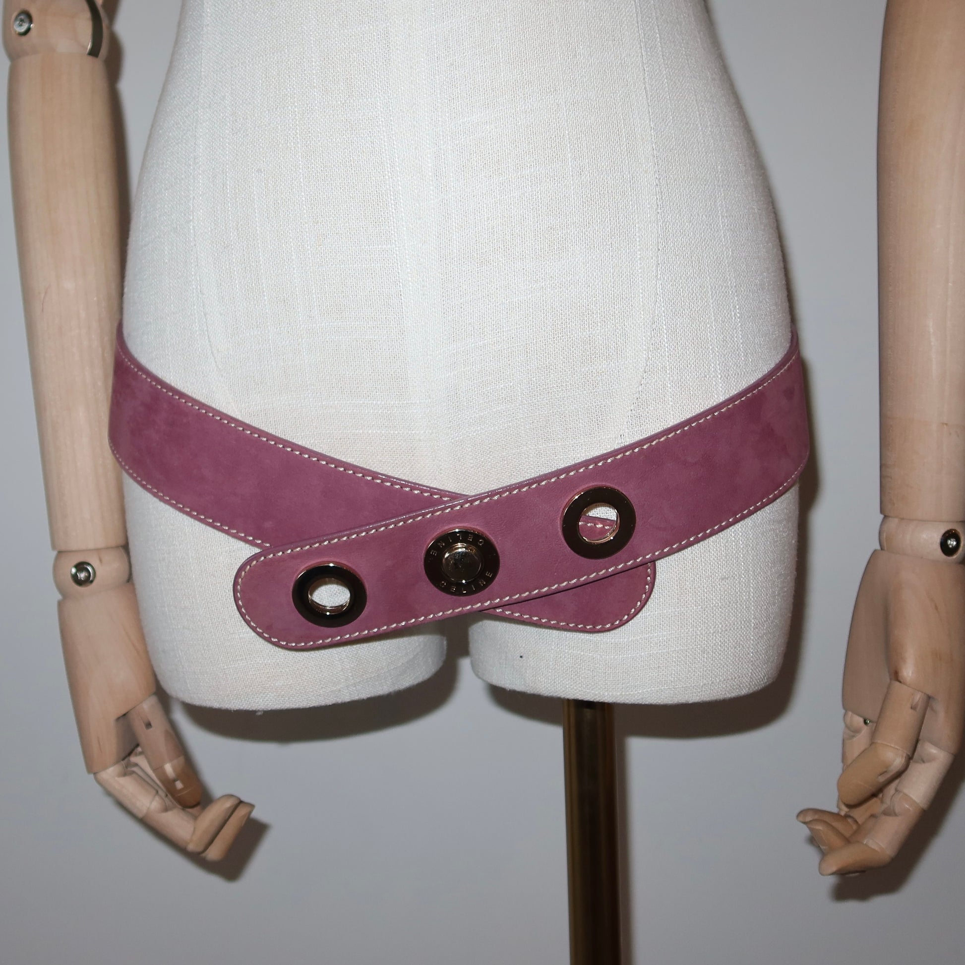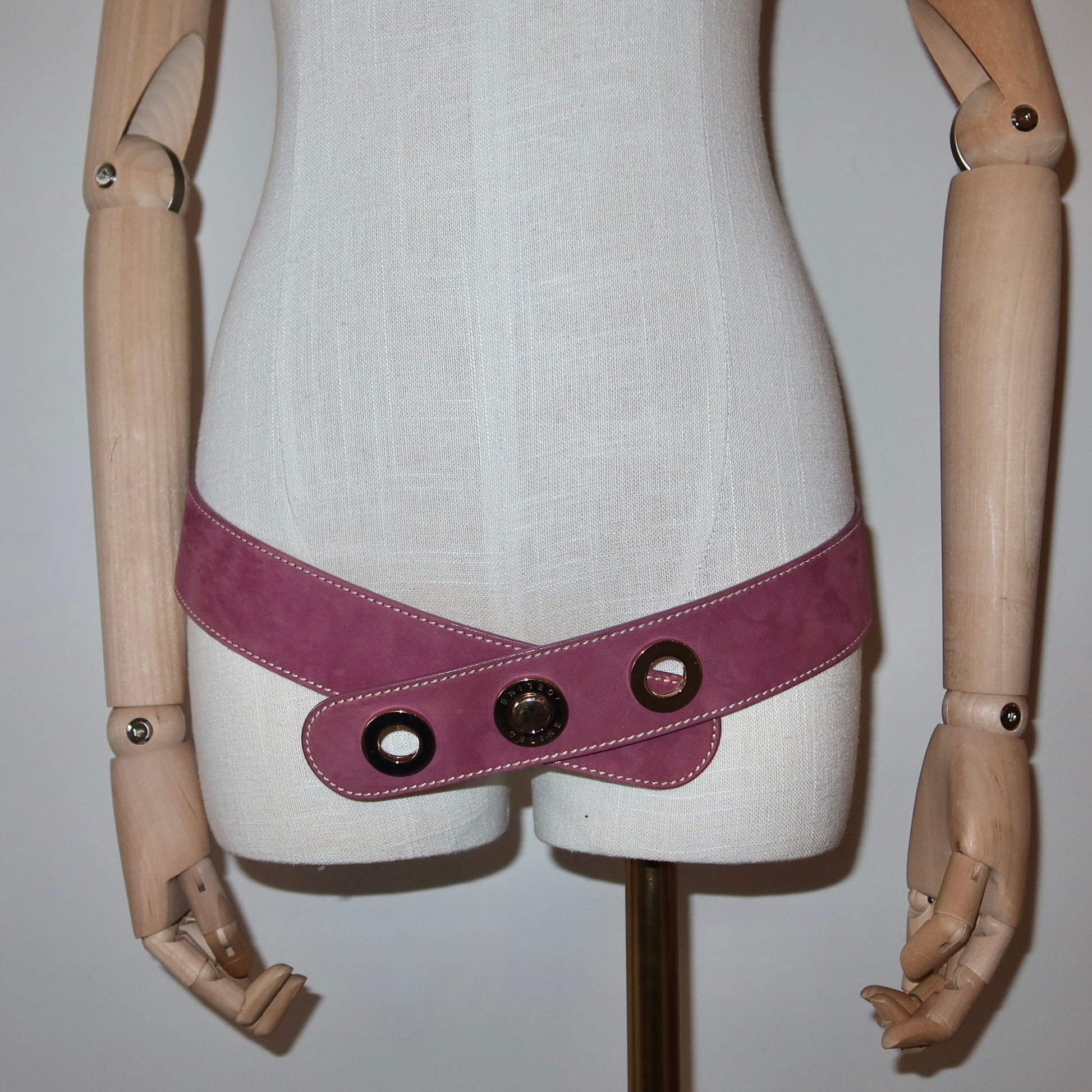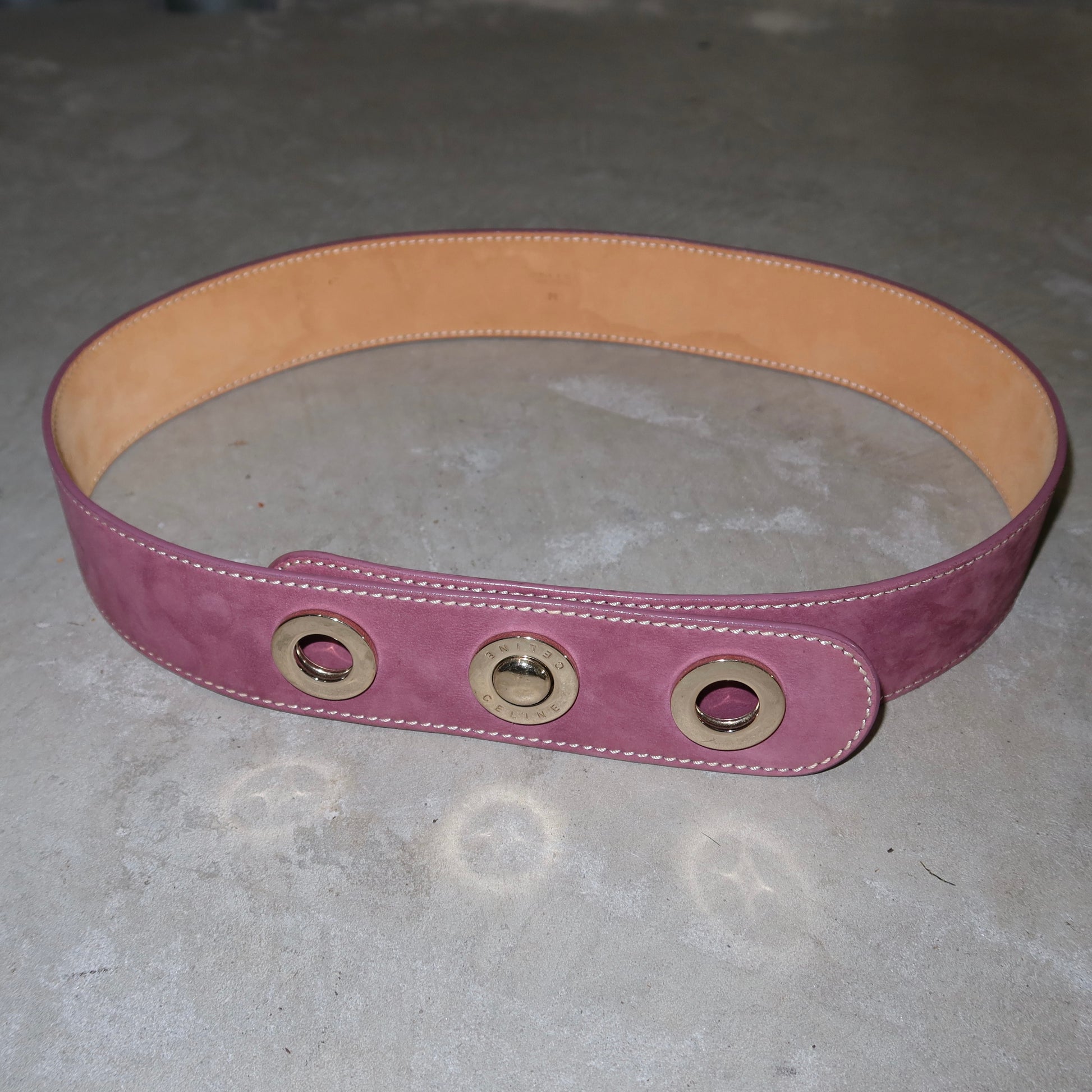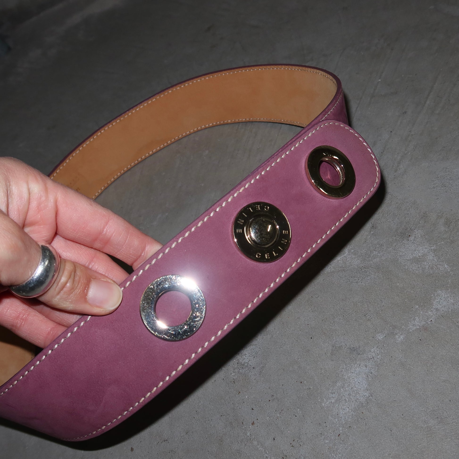 Insane purple suede belt by Celine with the coolest gold jigsaw hardware.