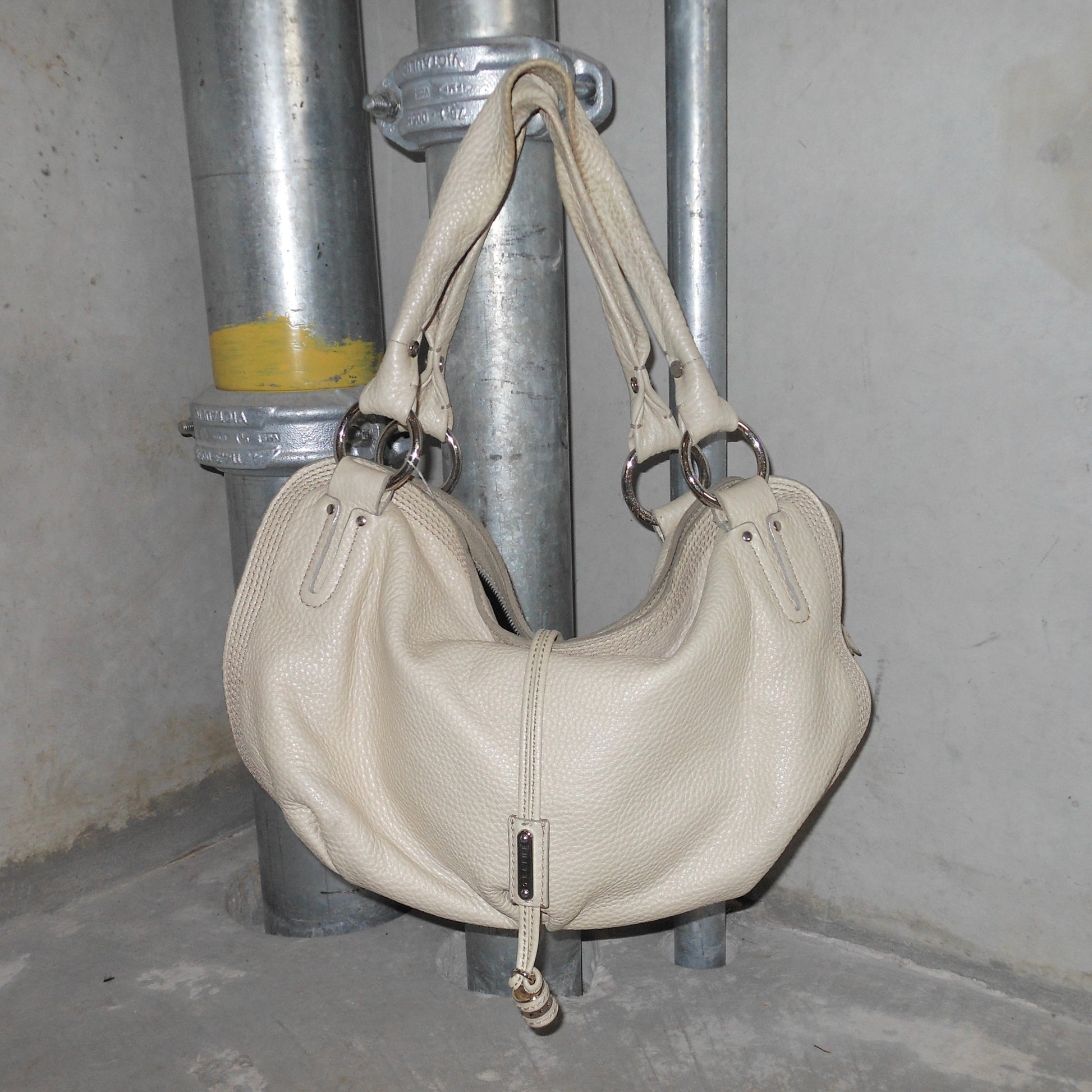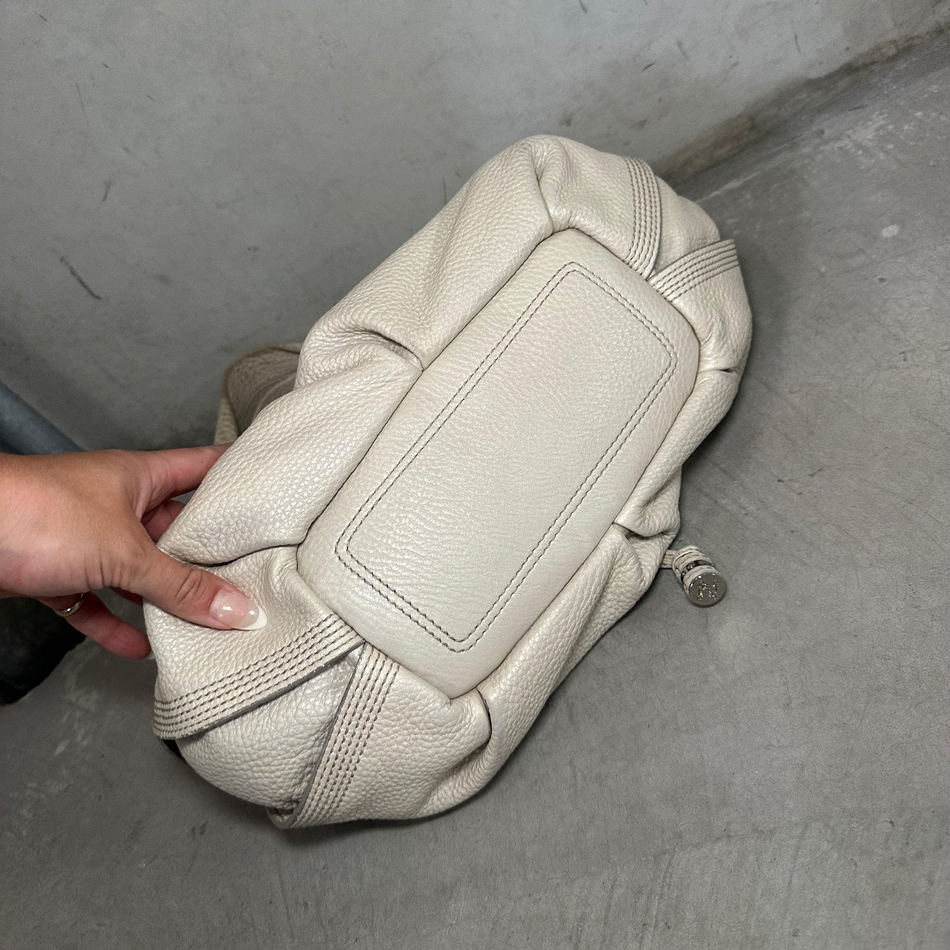 Celine white leather Bittersweet bag with silver hardware. The perfect slouchy tote with weighted string closure detail.