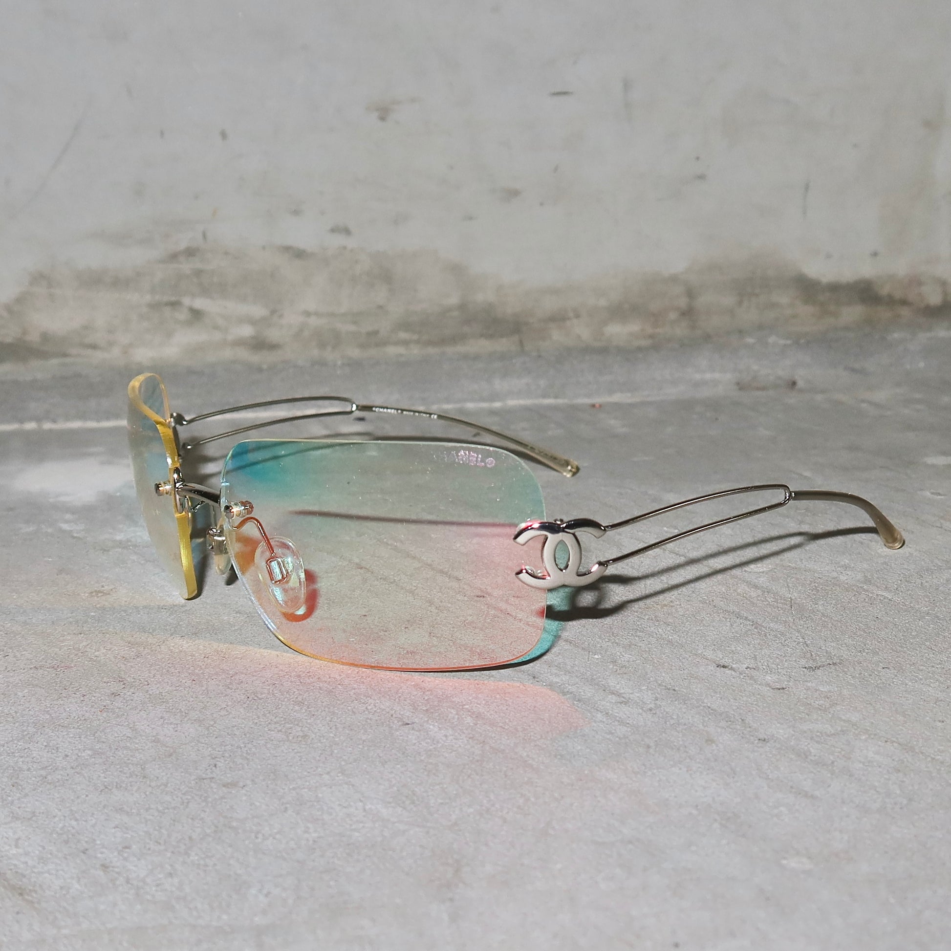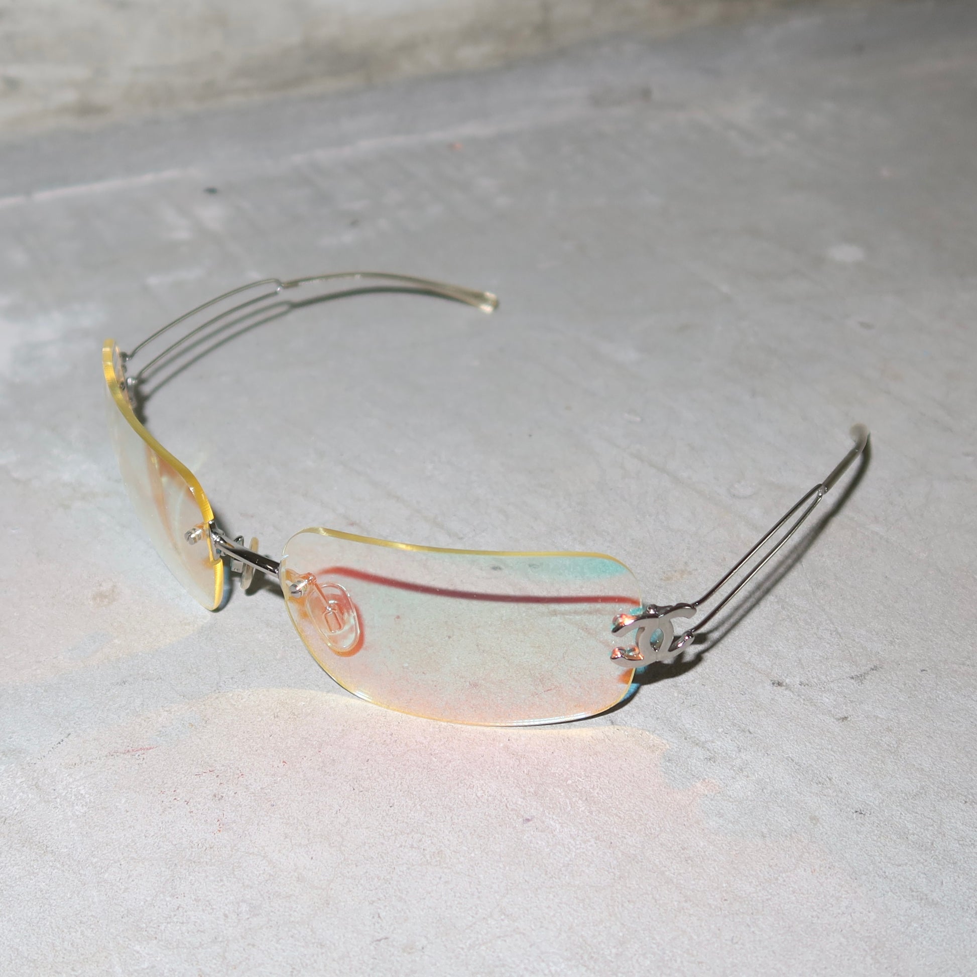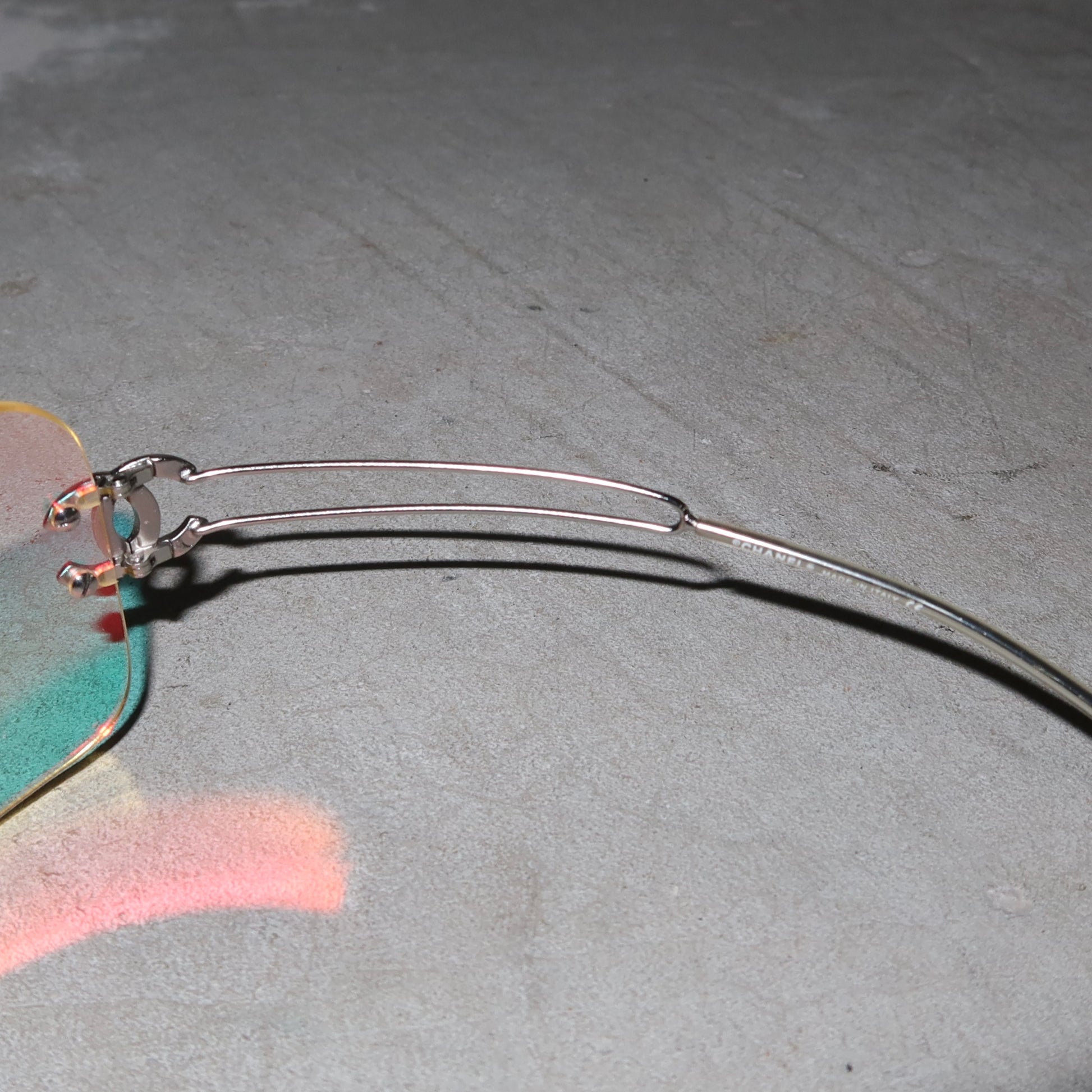 GORGEOUS rare iridescent Chanel rimless sunnies with cute logo detail on the leg.