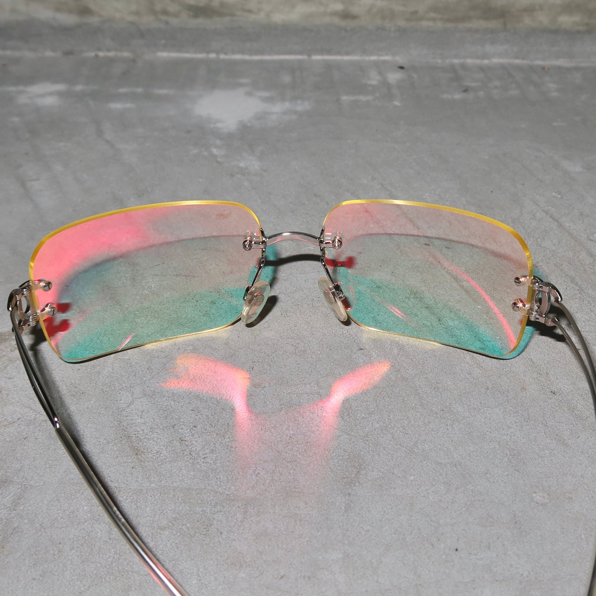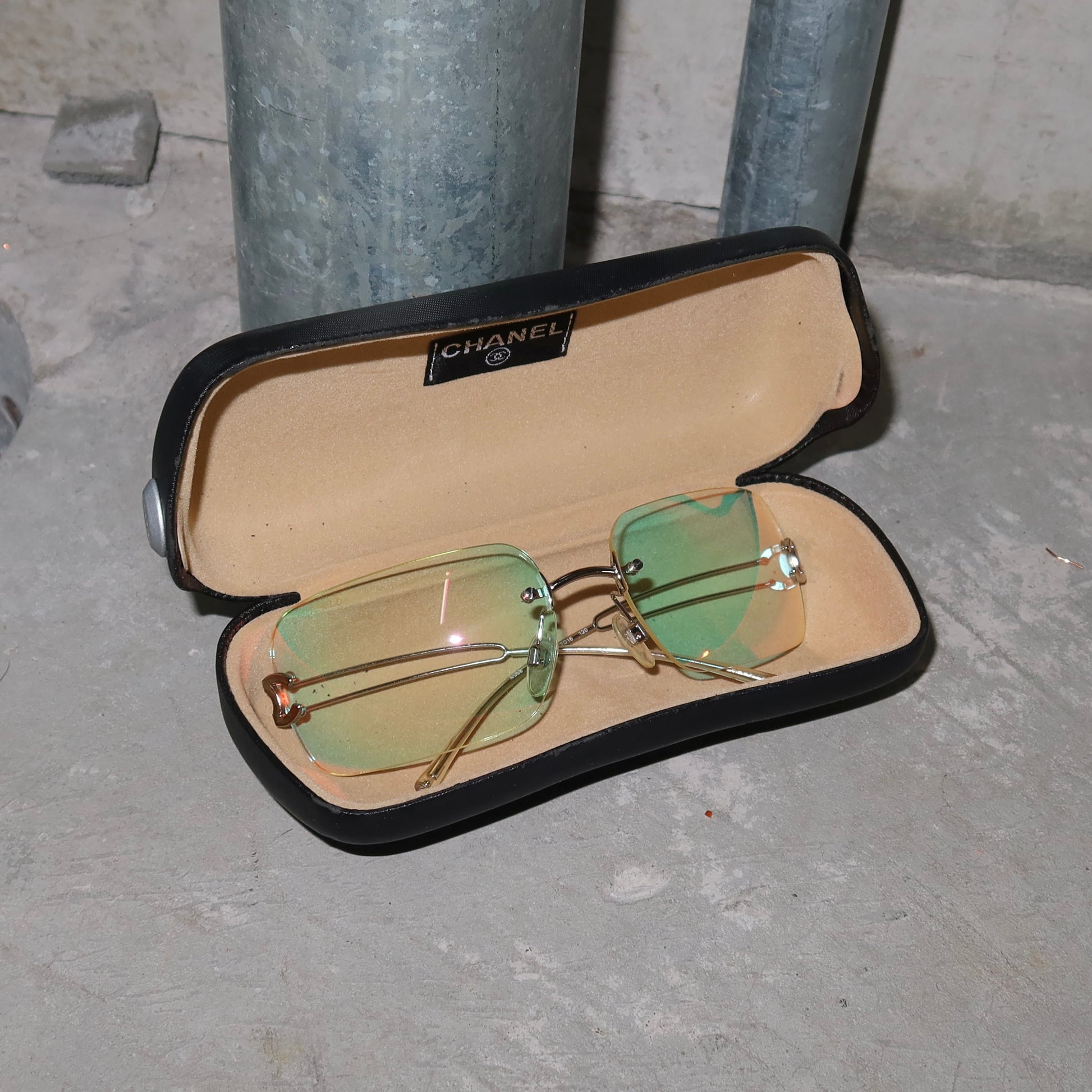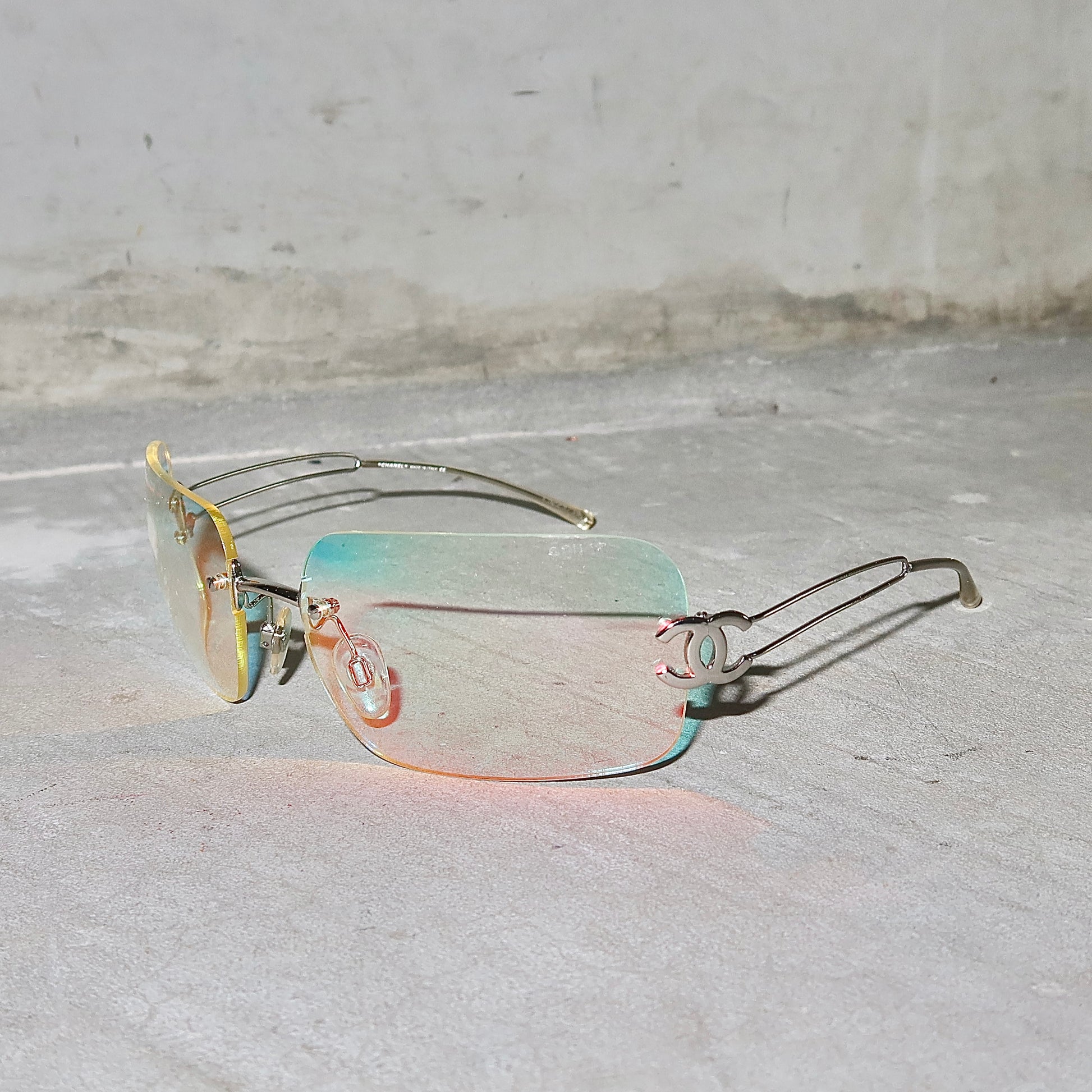 GORGEOUS rare iridescent Chanel rimless sunnies with cute logo detail on the leg.