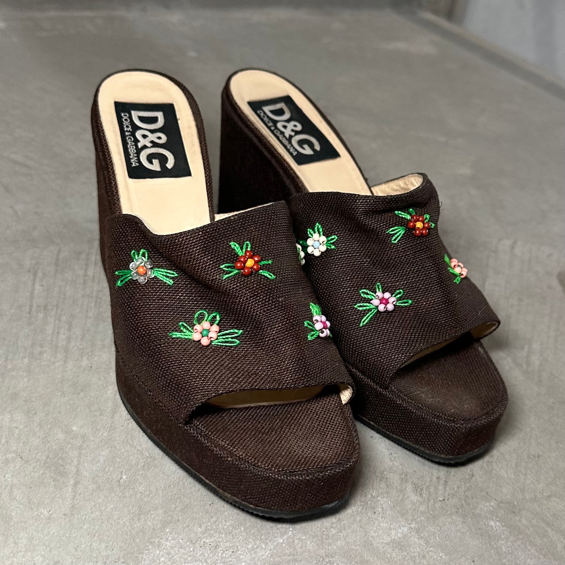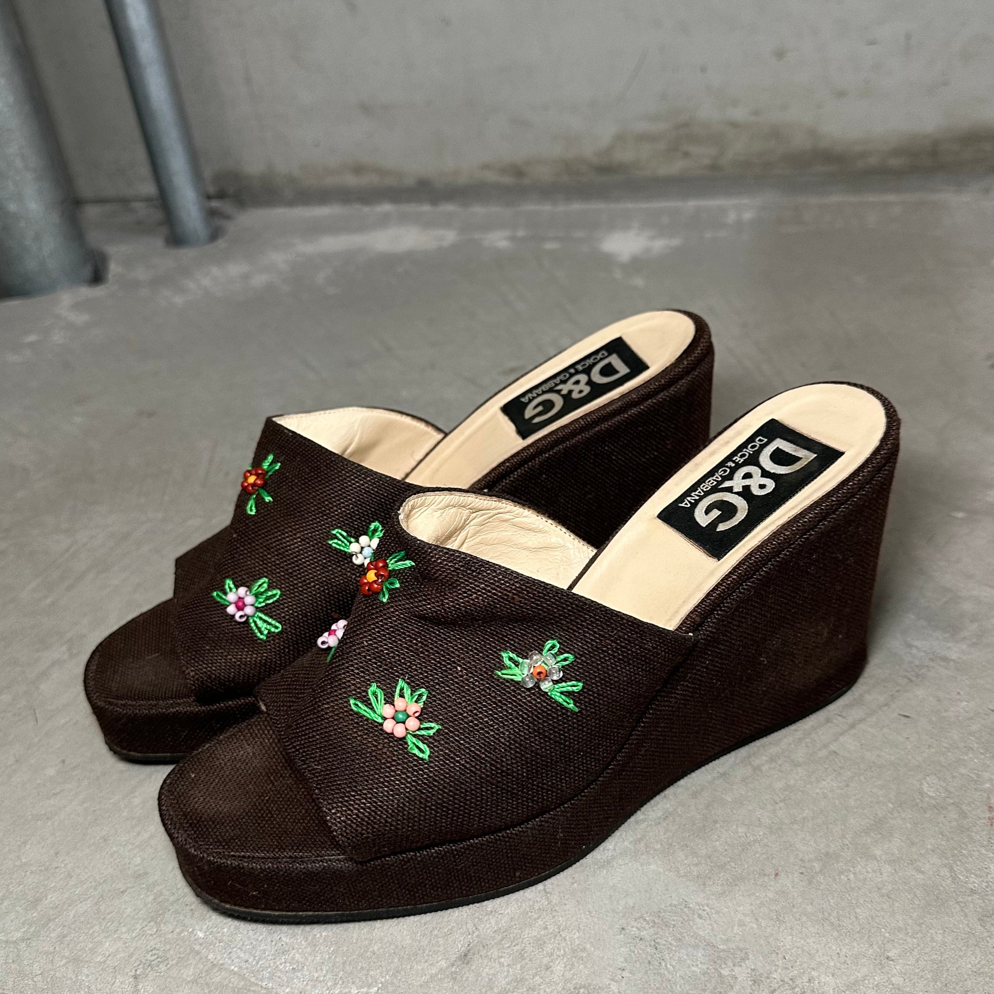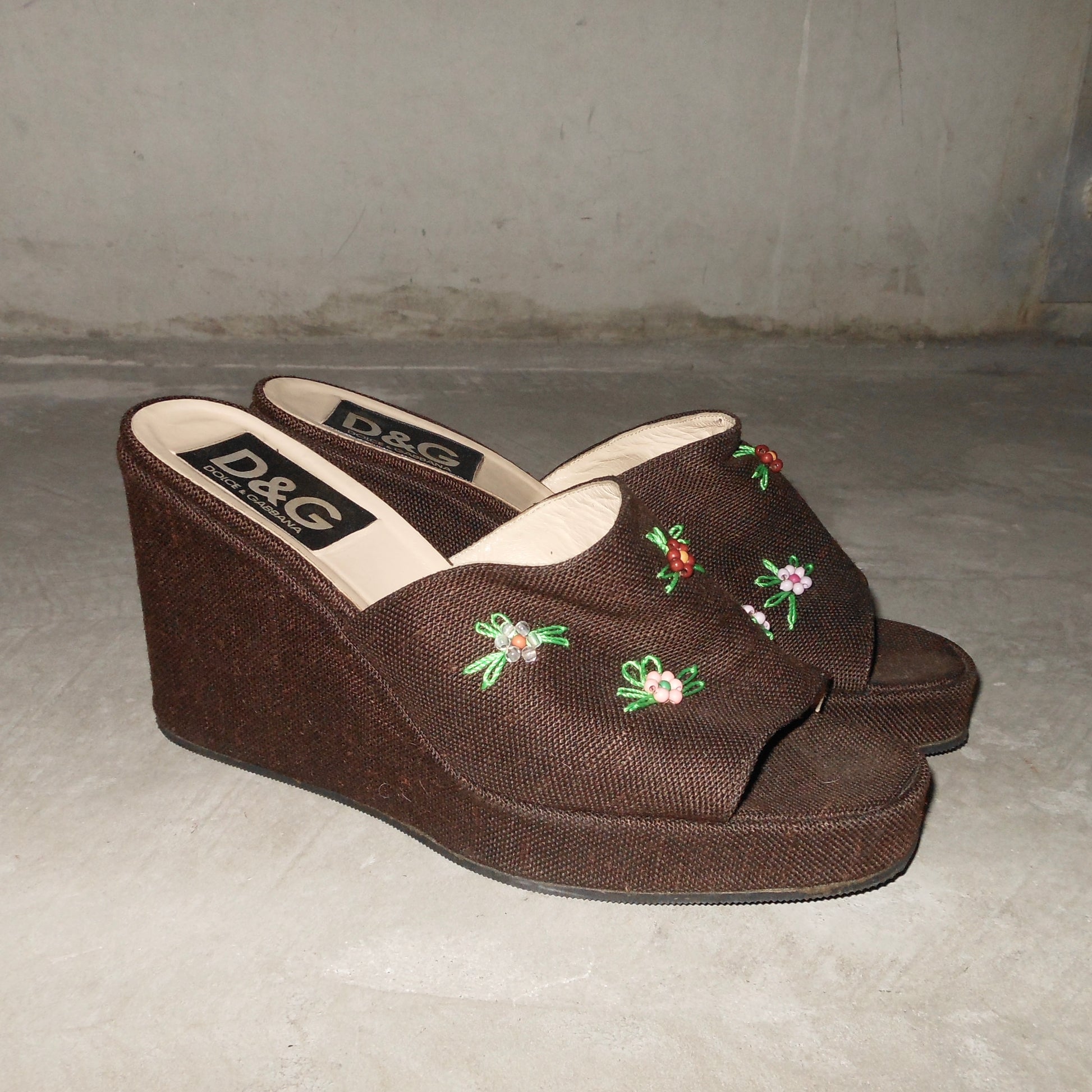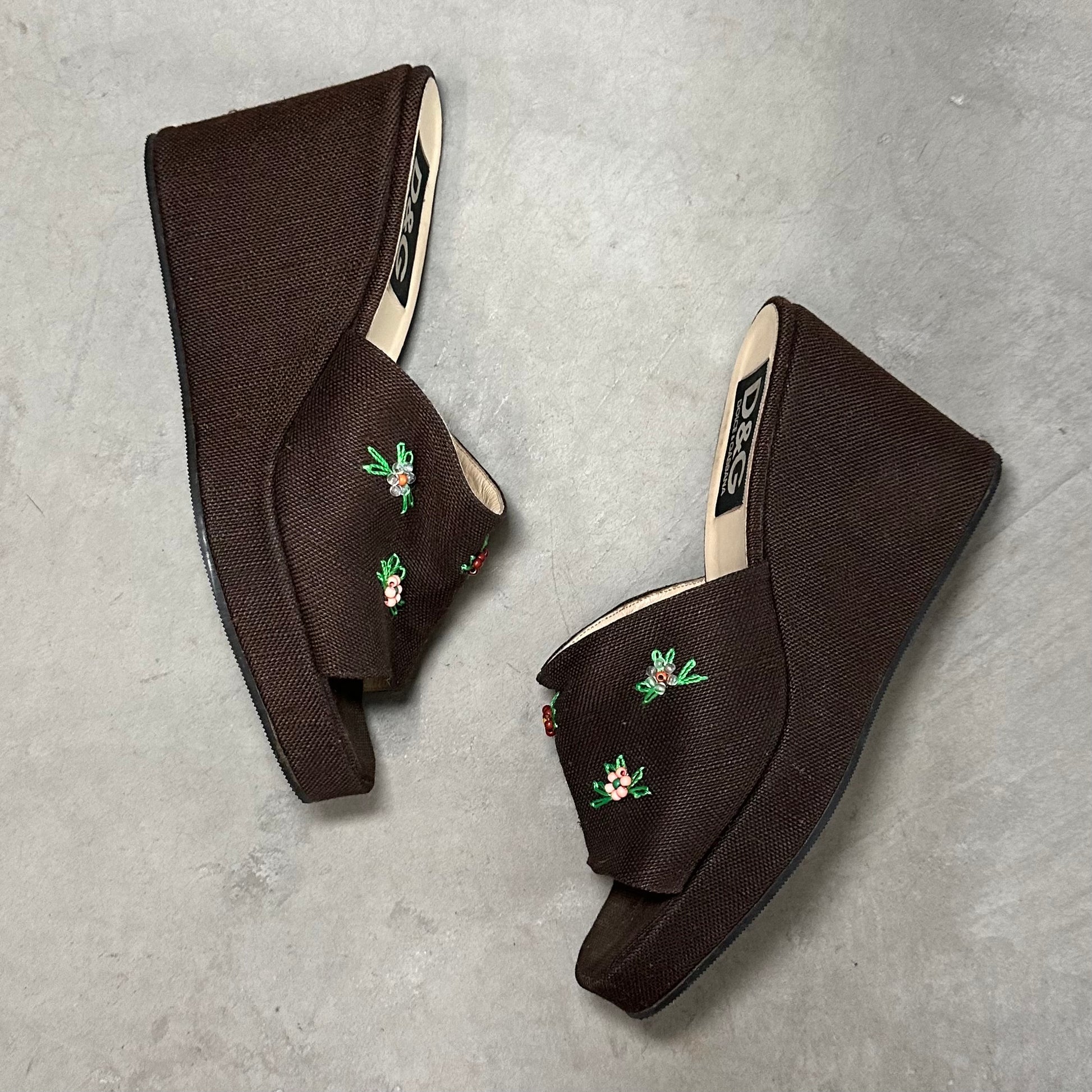Gorgeous brown wedges by D&G with cute embroidered flower details.
