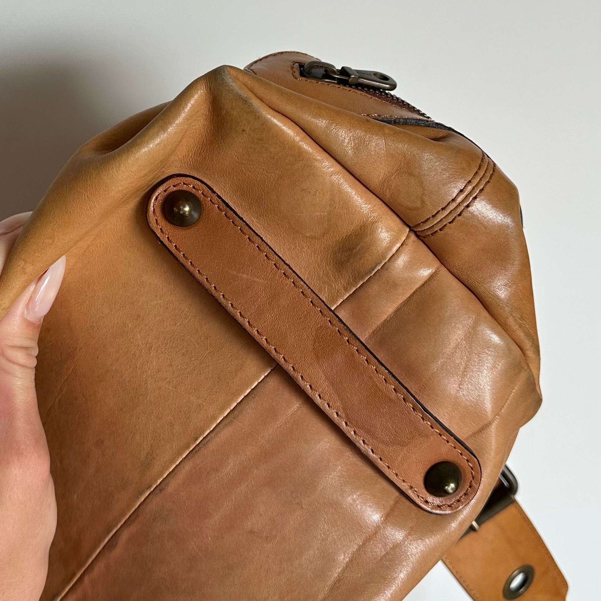 Great vintage condition. Some marks to the leather, as pictured, including discolouration at the base corners (see final pics). Please also note the curling at the base of the straps, as pictured.