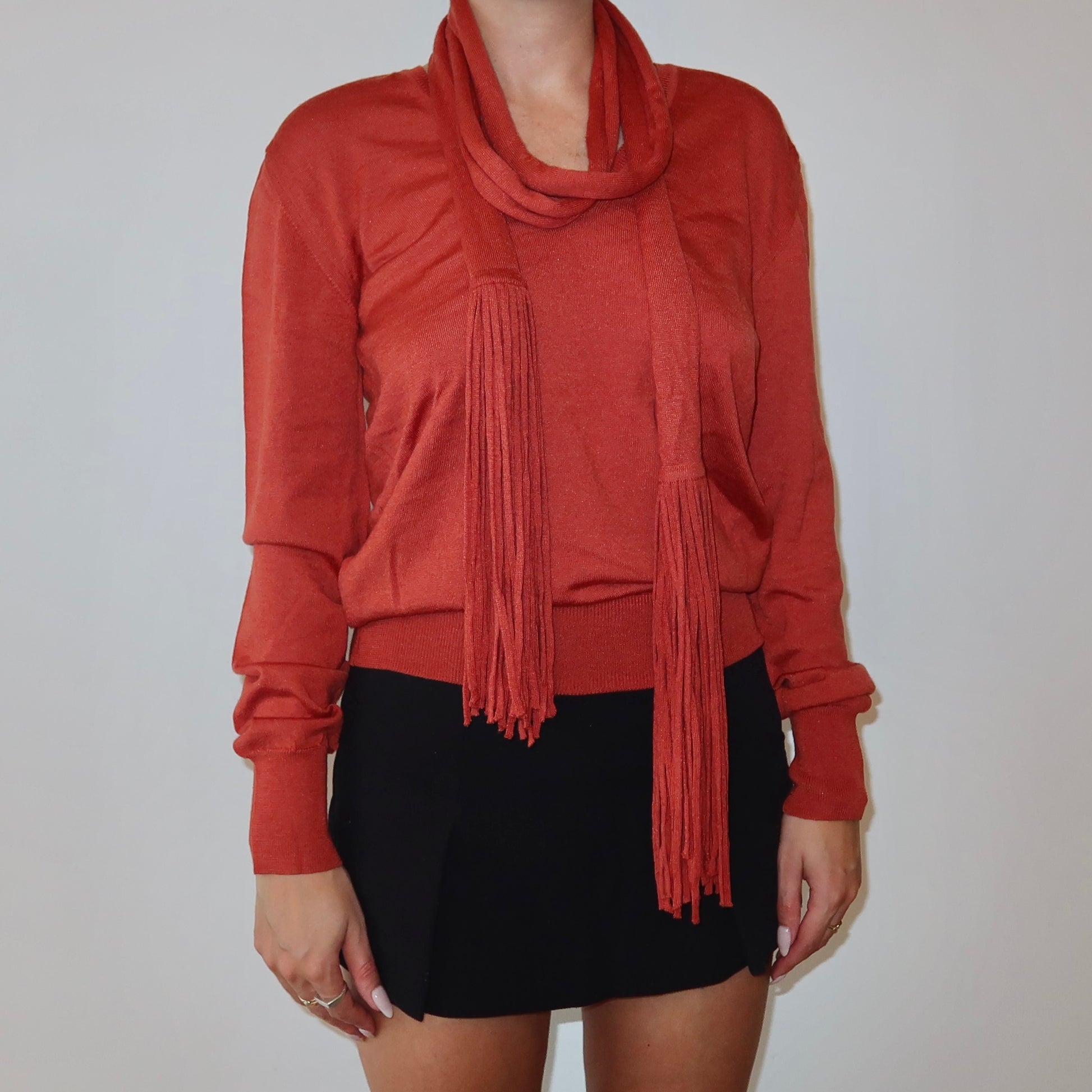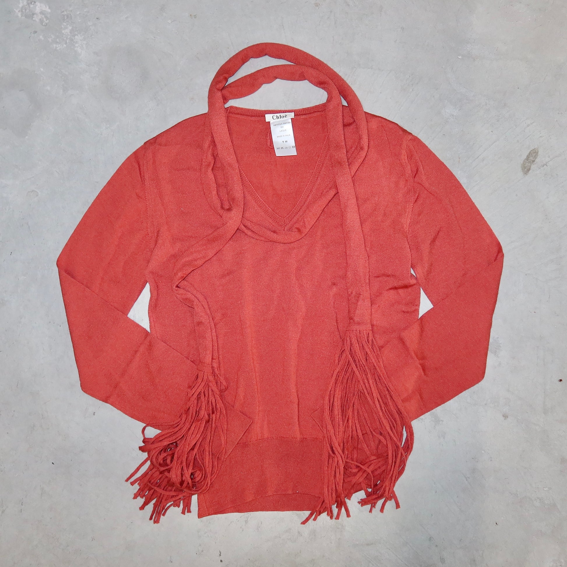 Beautiful merino wool v neck sweater and matching scarf by Chloé from AW2003. This beauty simply screams Phoebe Philo, who was their creative director at the time of this top's release. She loved a skinny scarf!