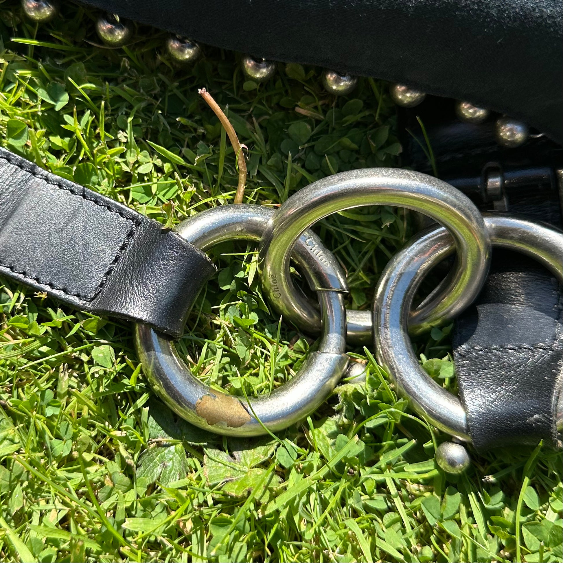 Great vintage condition. Some small chipping on one of the metal rings, as pictured at the end. Can be hidden under metal strap.