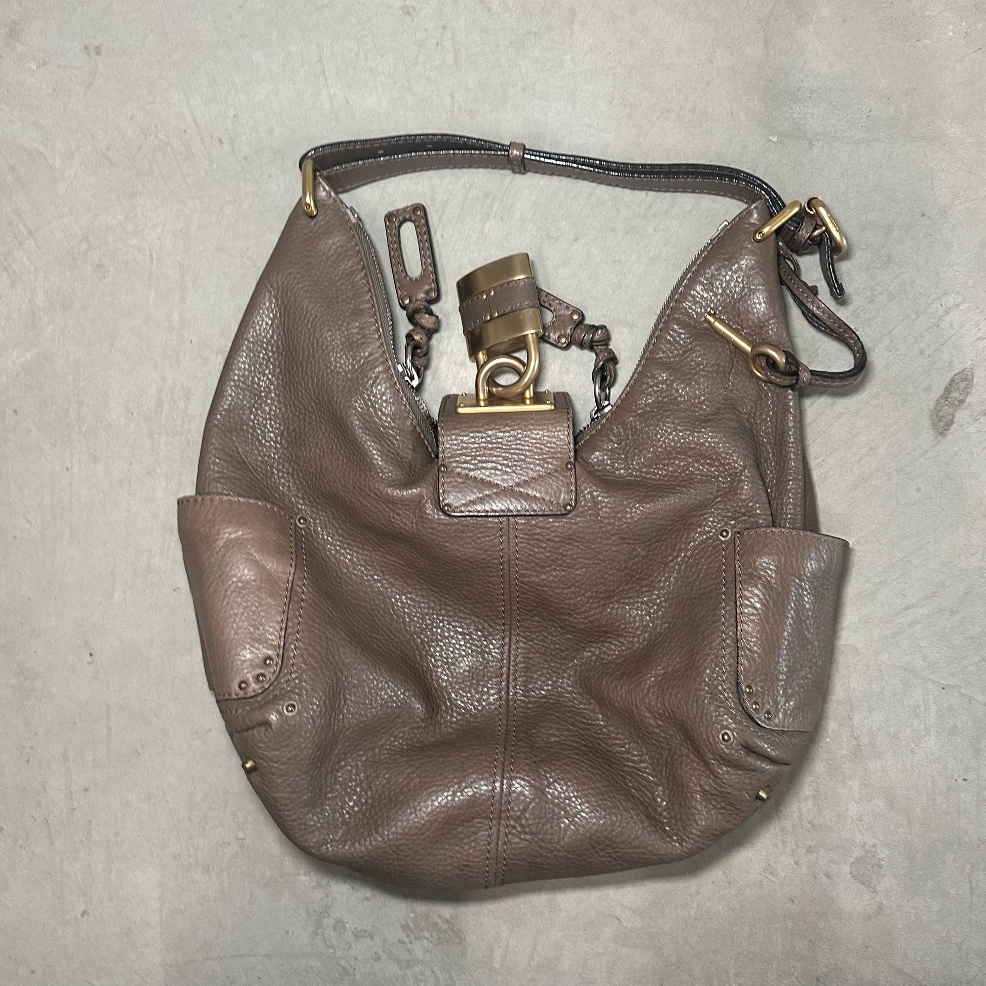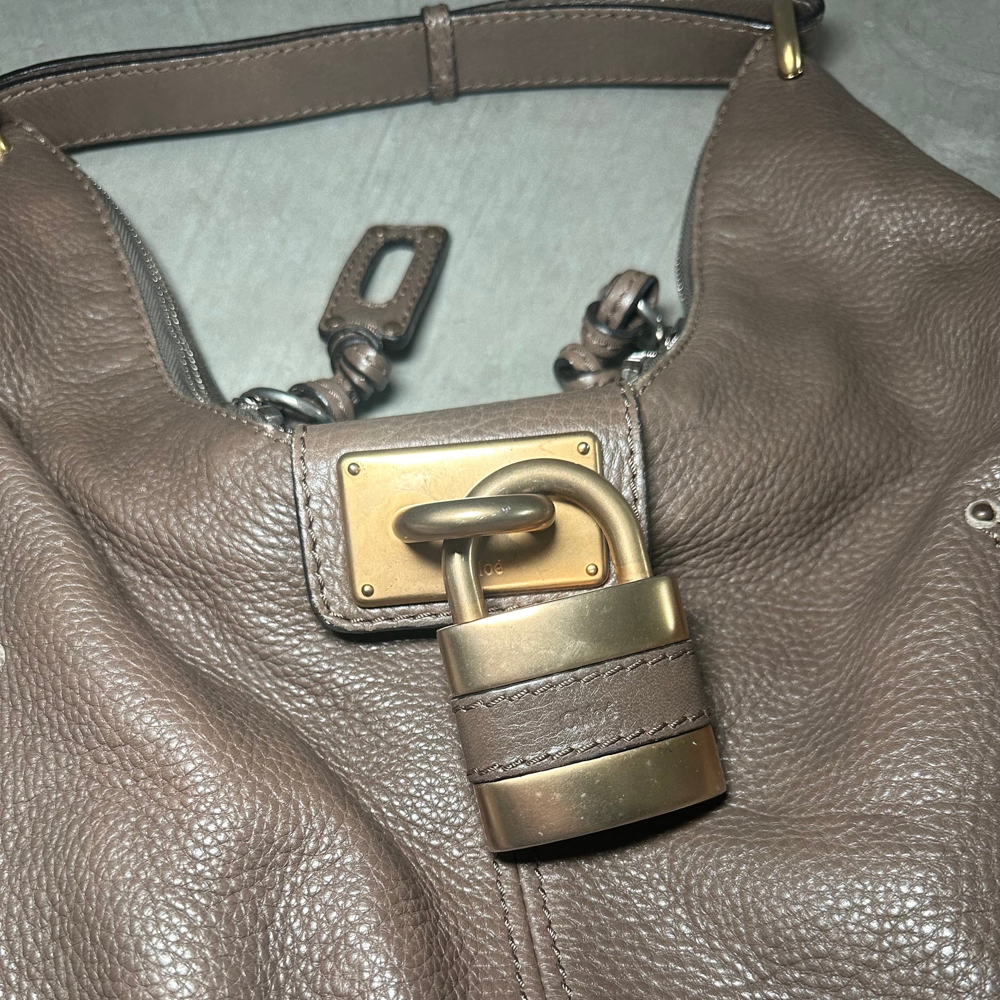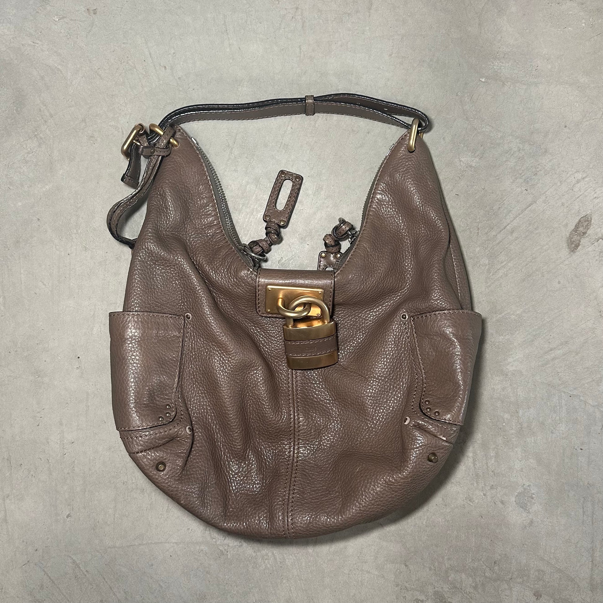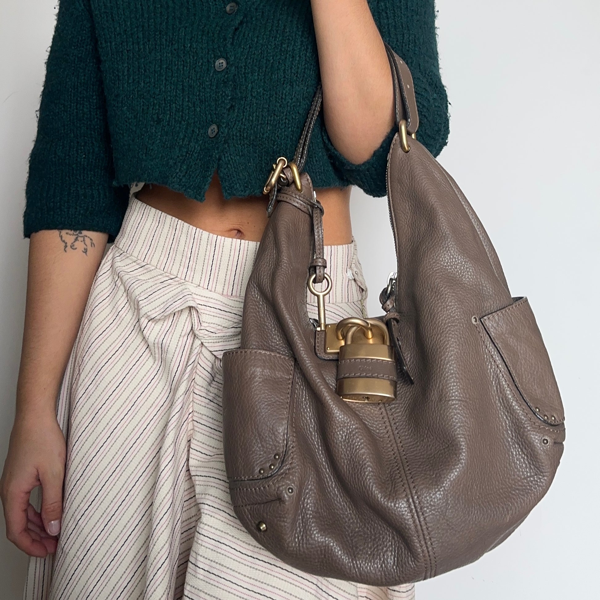 Gorgeous large light brown/grey leather Chloe crescent Paddington bag.