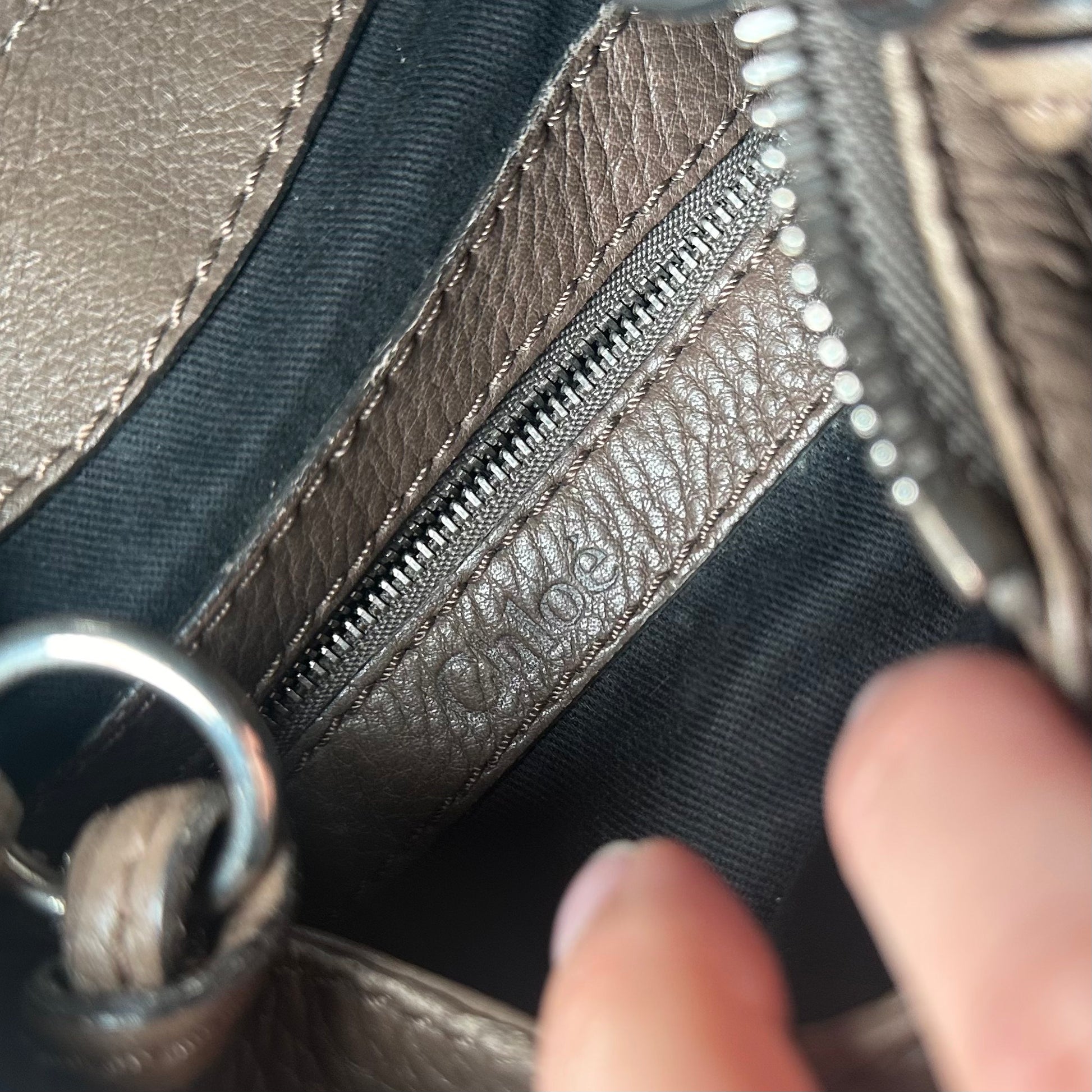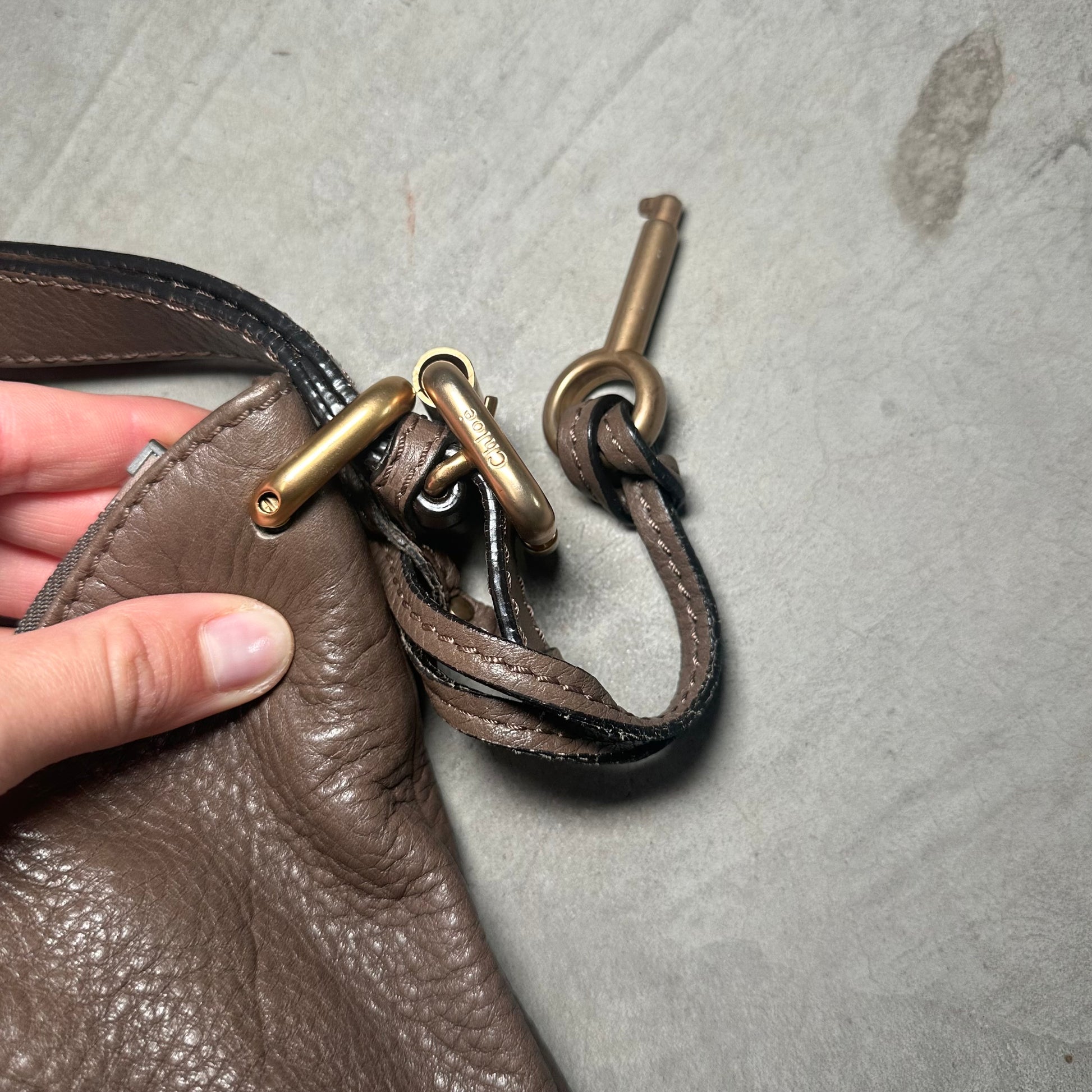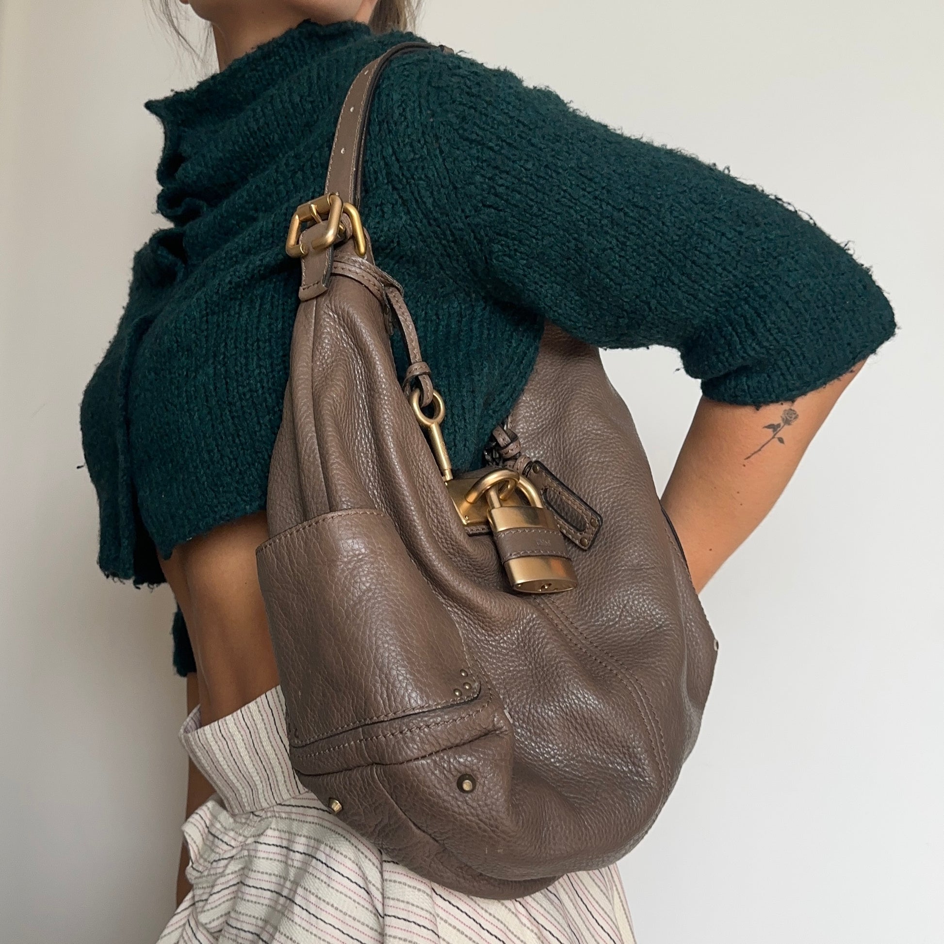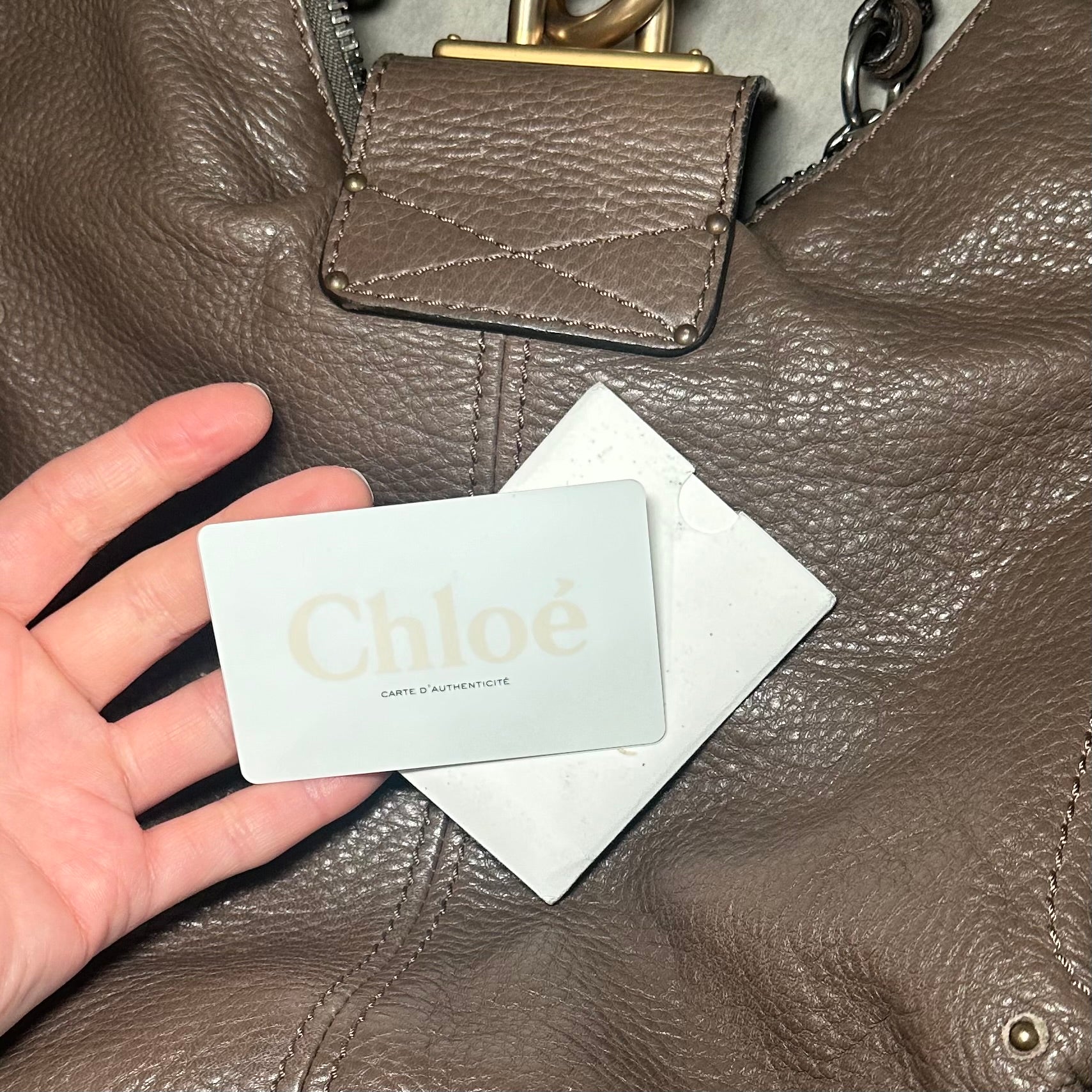 Gorgeous large light brown/grey leather Chloe crescent Paddington bag.