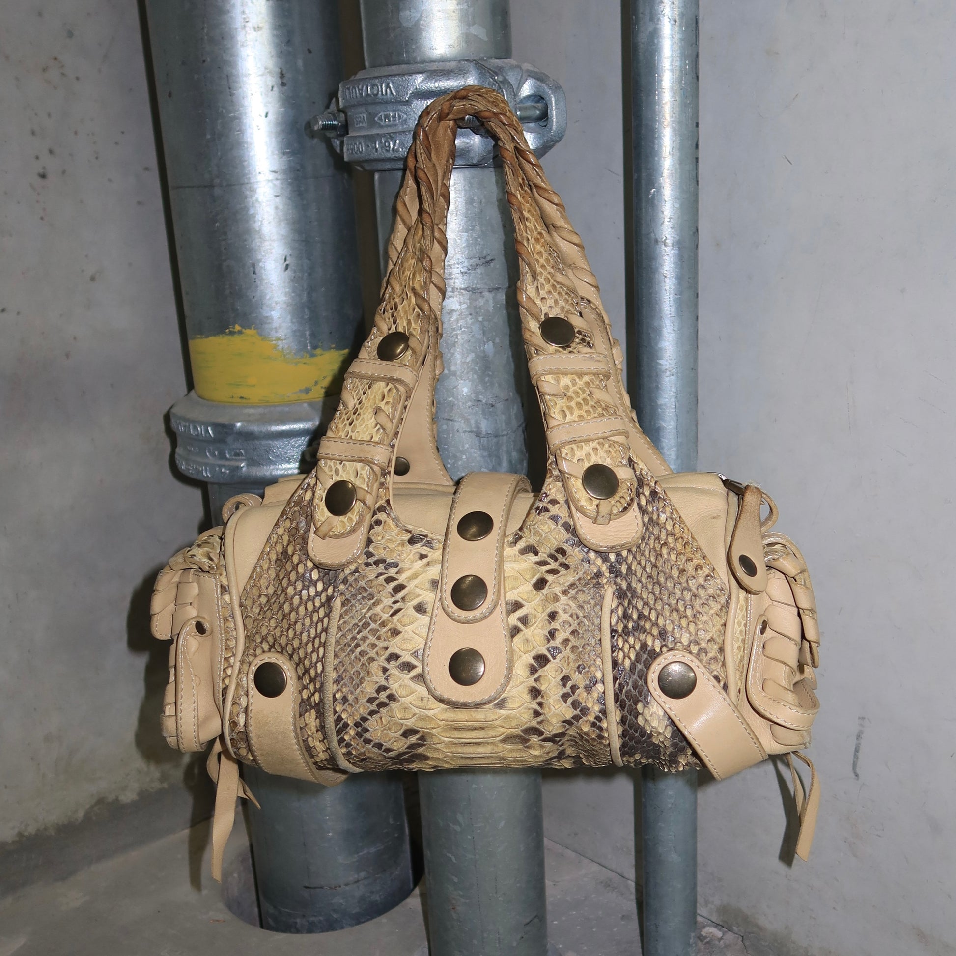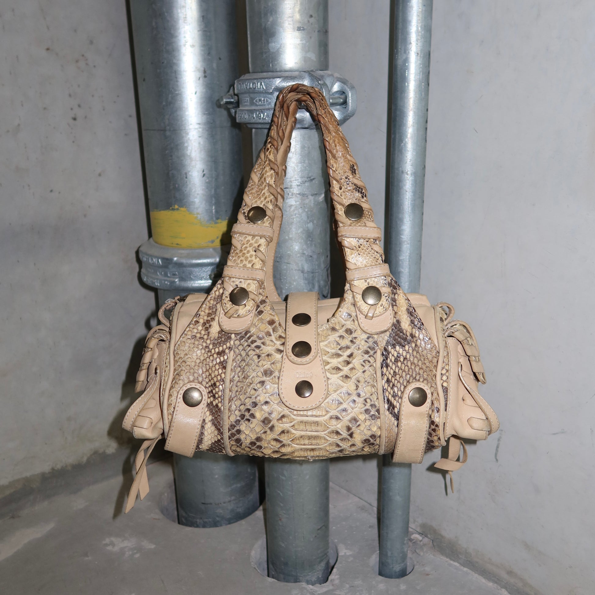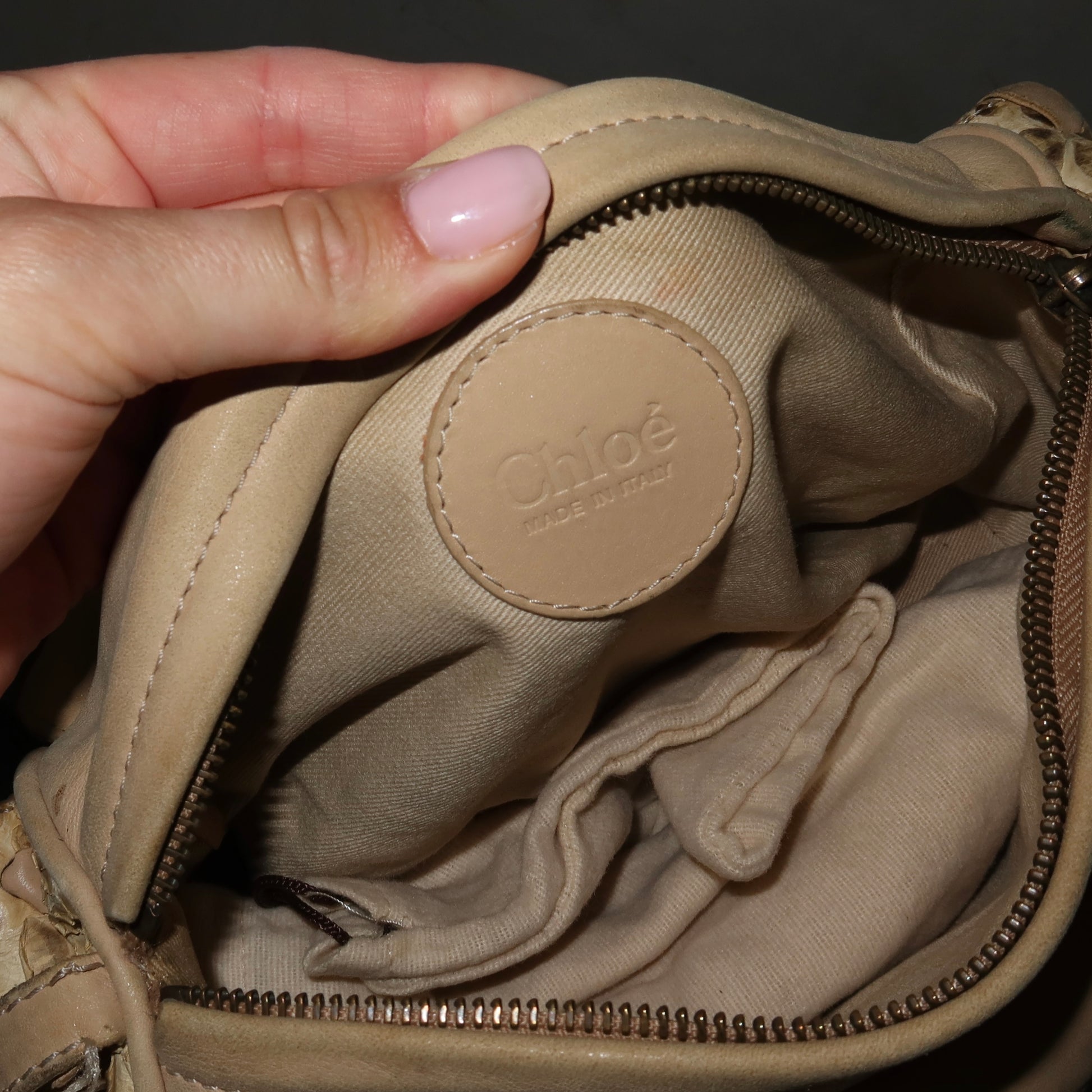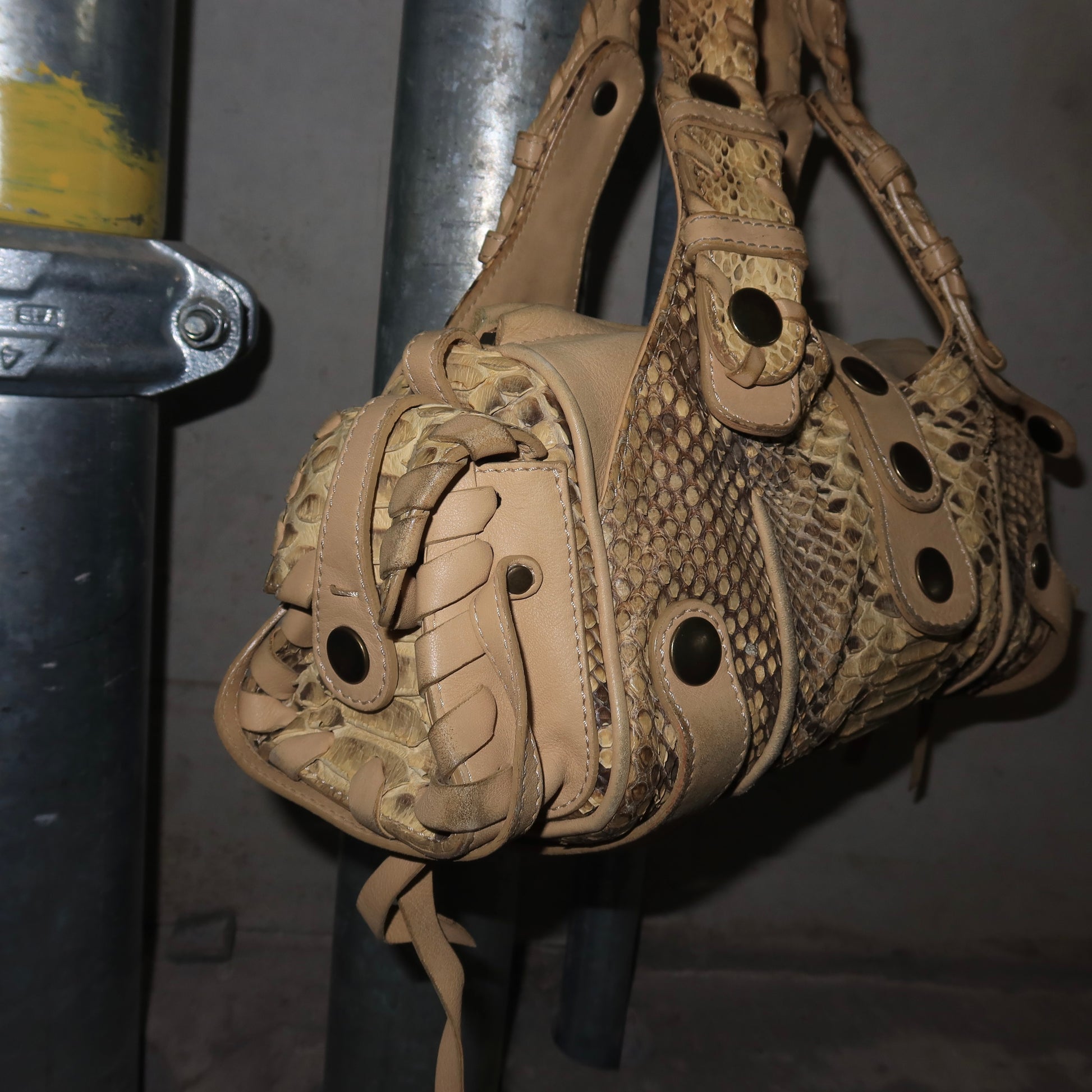 Insanely gorgeous mini Chloé Silverado in real python. Can fit on the shoulder but is very snug!! Would recommend best for the nook of the elbow or as a handbag.