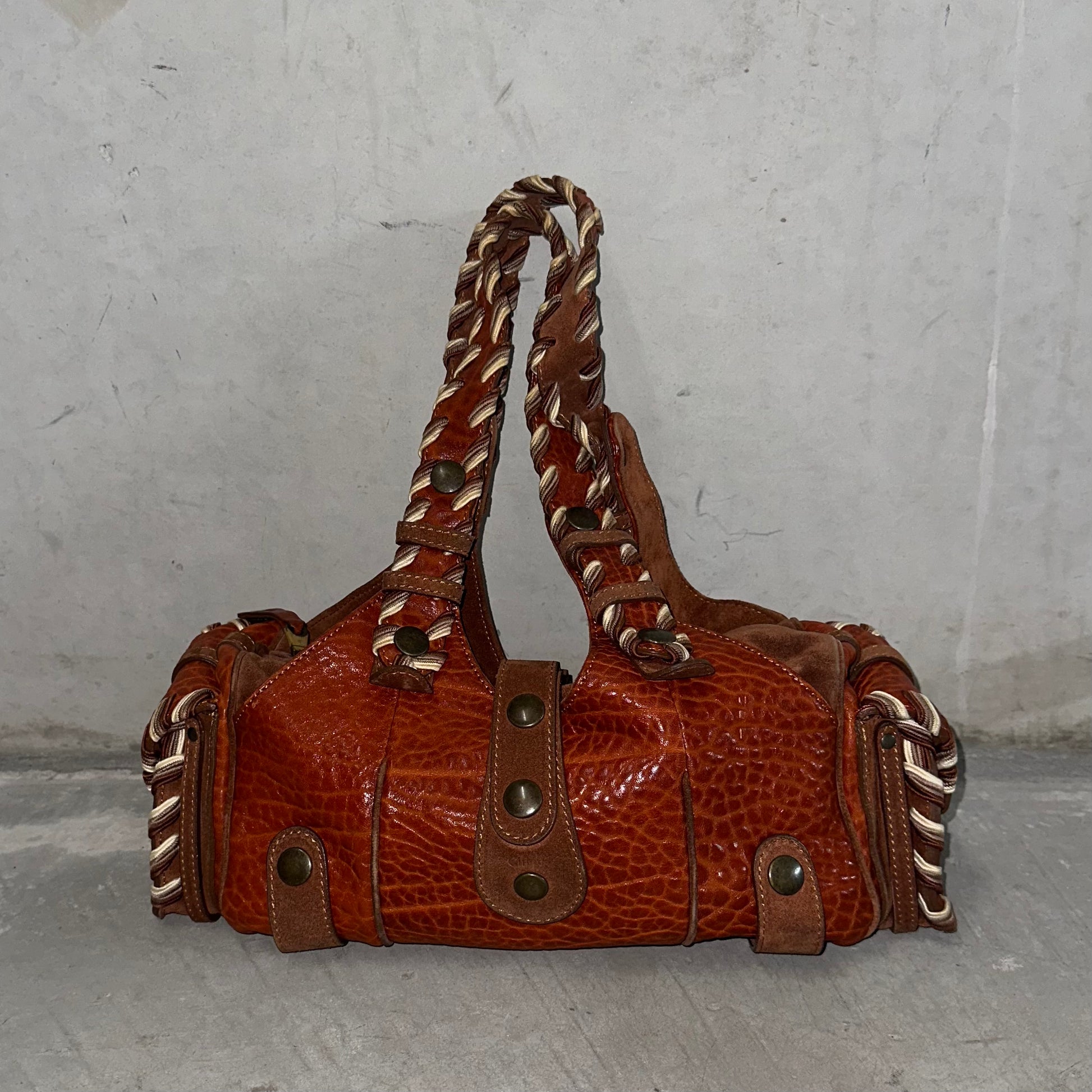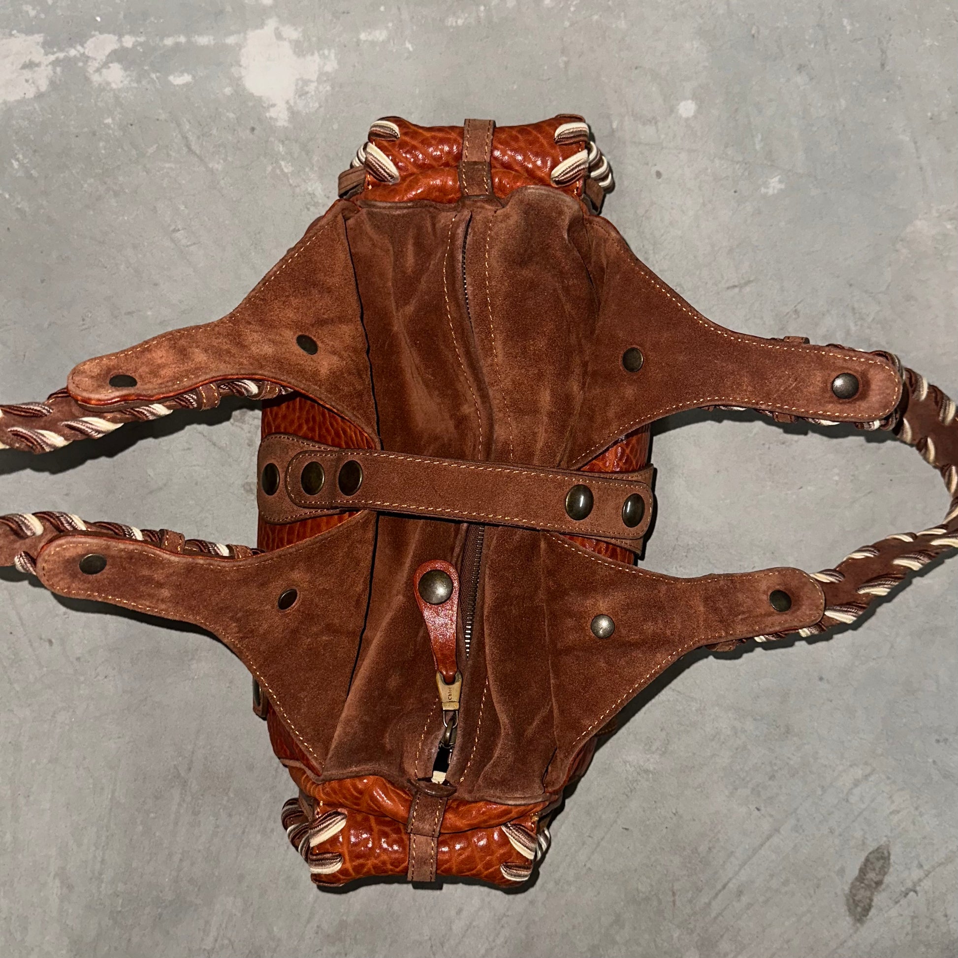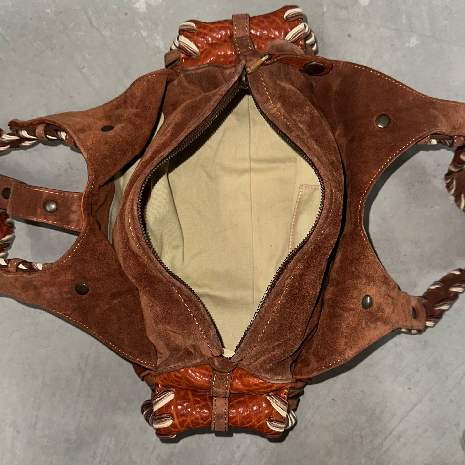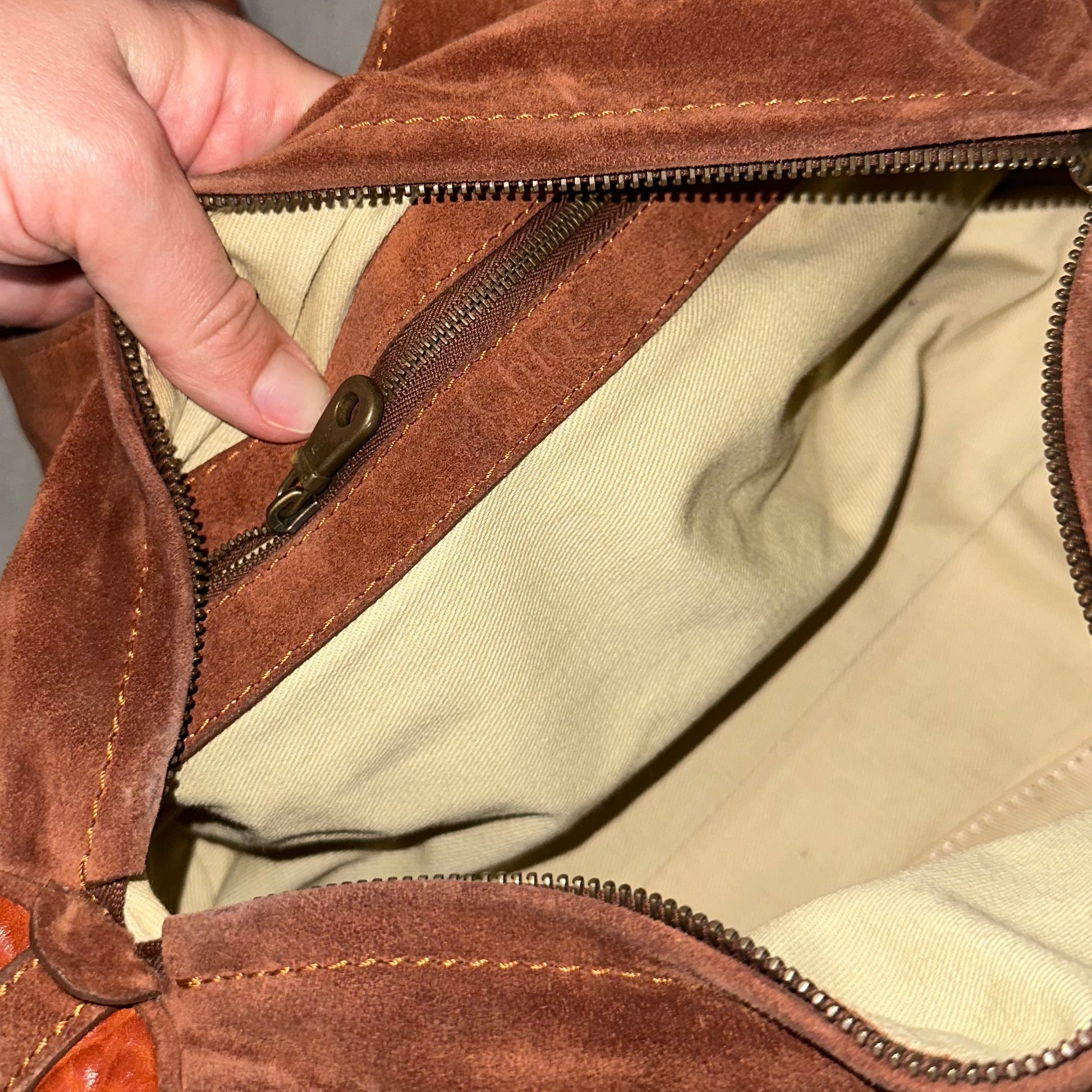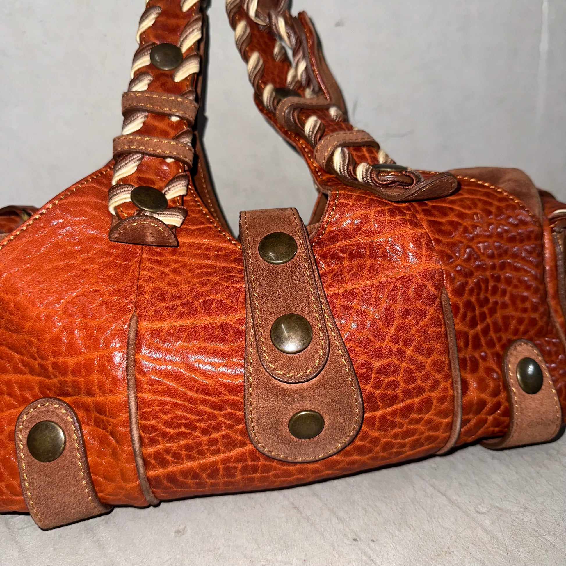 A gorgeous Chloe Silverado bag from Phoebe Philo's reign with the brand. Grainy rust-coloured leather and brown suede accents with oversized stitching details.