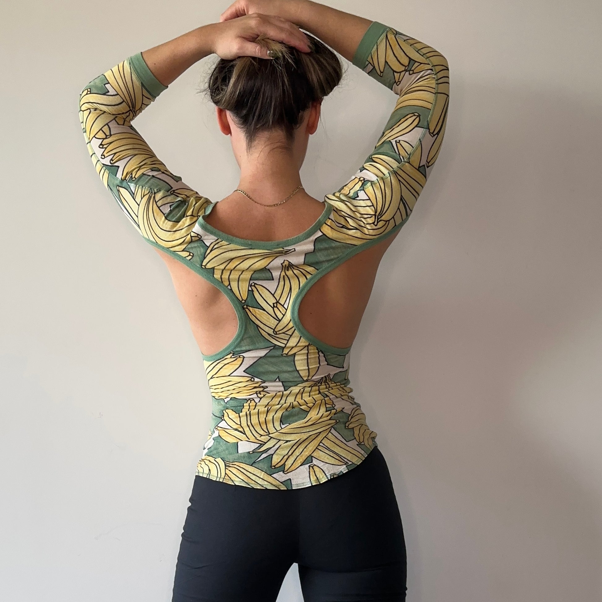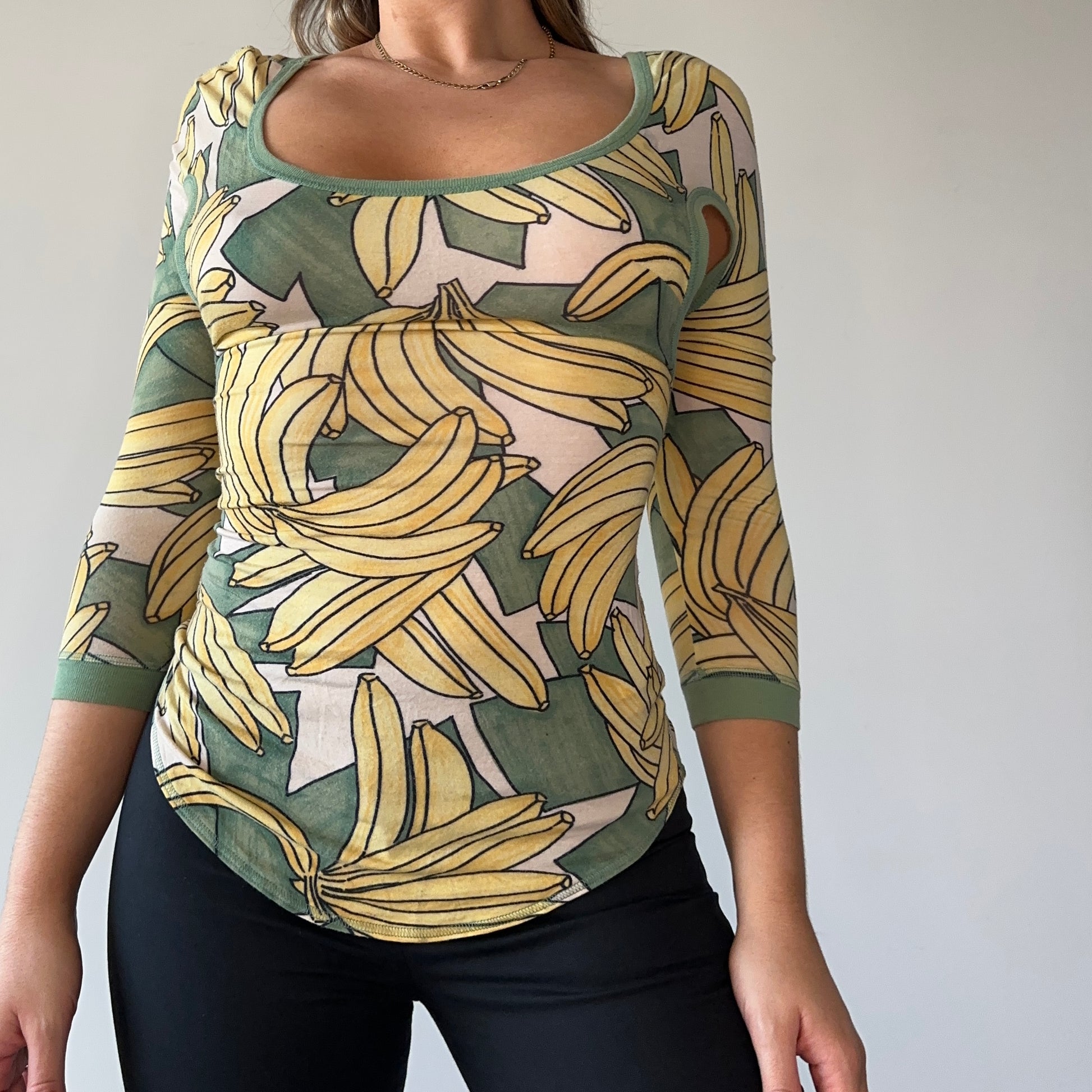 AMAZING Chloe SS2004 banana print top with cut-out details. The non cut out version of this was recently seen on Lily Allen.