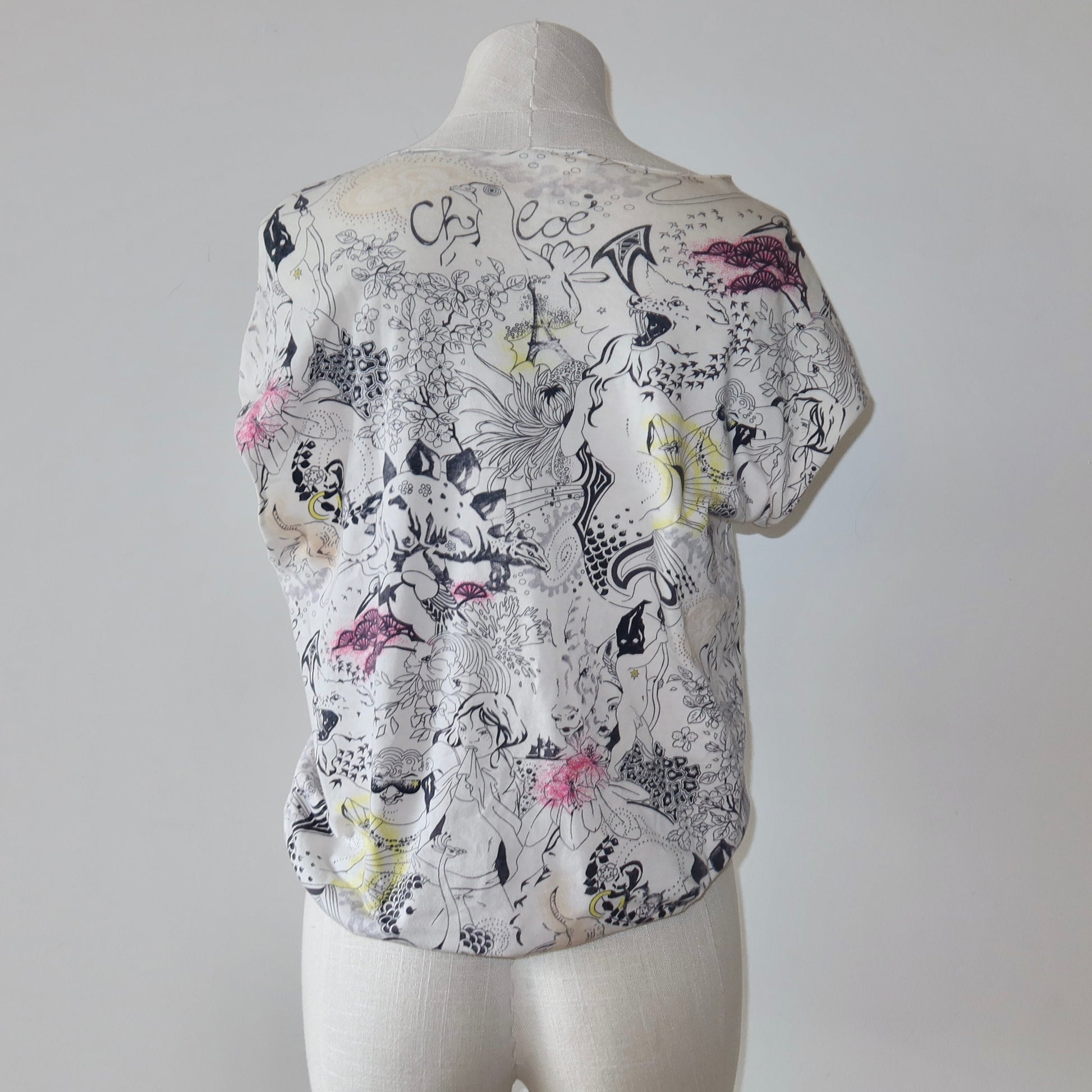Chloé oversized cotton tee in a rare SS2002 graphic print from Phoebe Philo's era. Slight asymmetric hem.