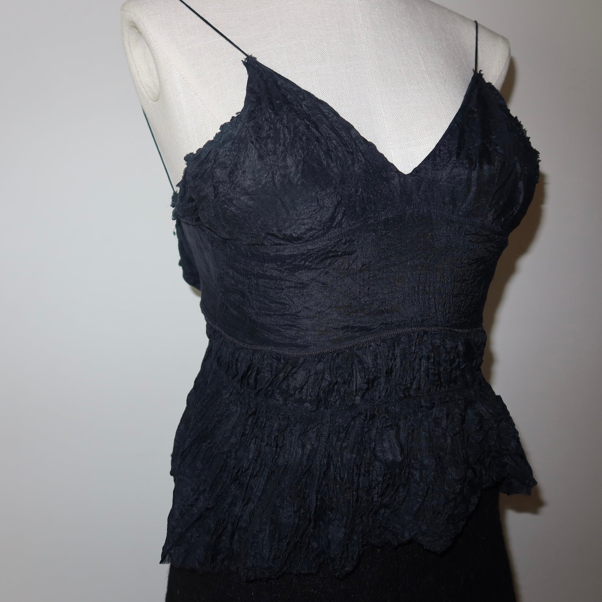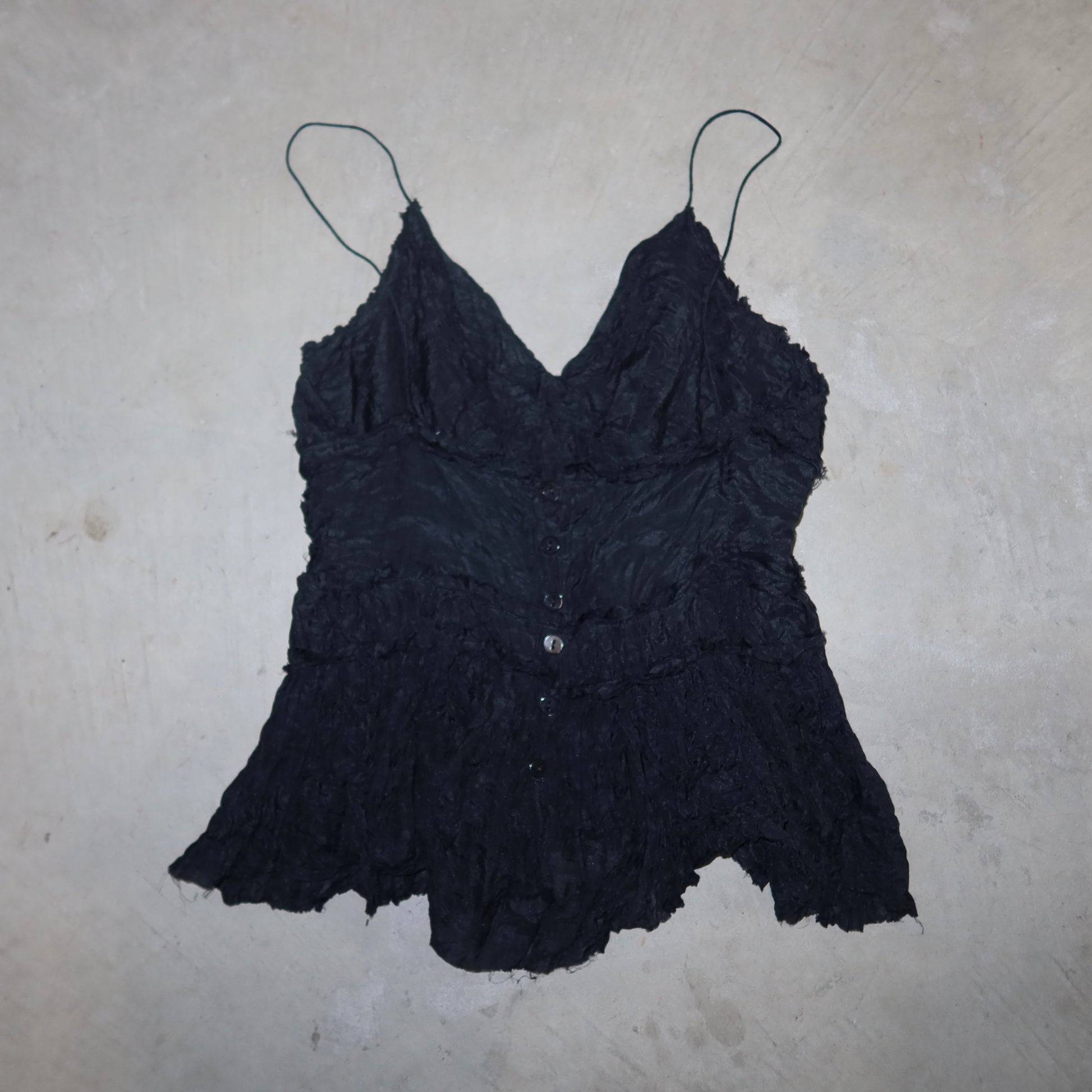 Gorgeous Phoebe Philo era Chloé top from SS2005. A delicate silk blend camisole with a button closure at the back and skinny spaghetti straps.