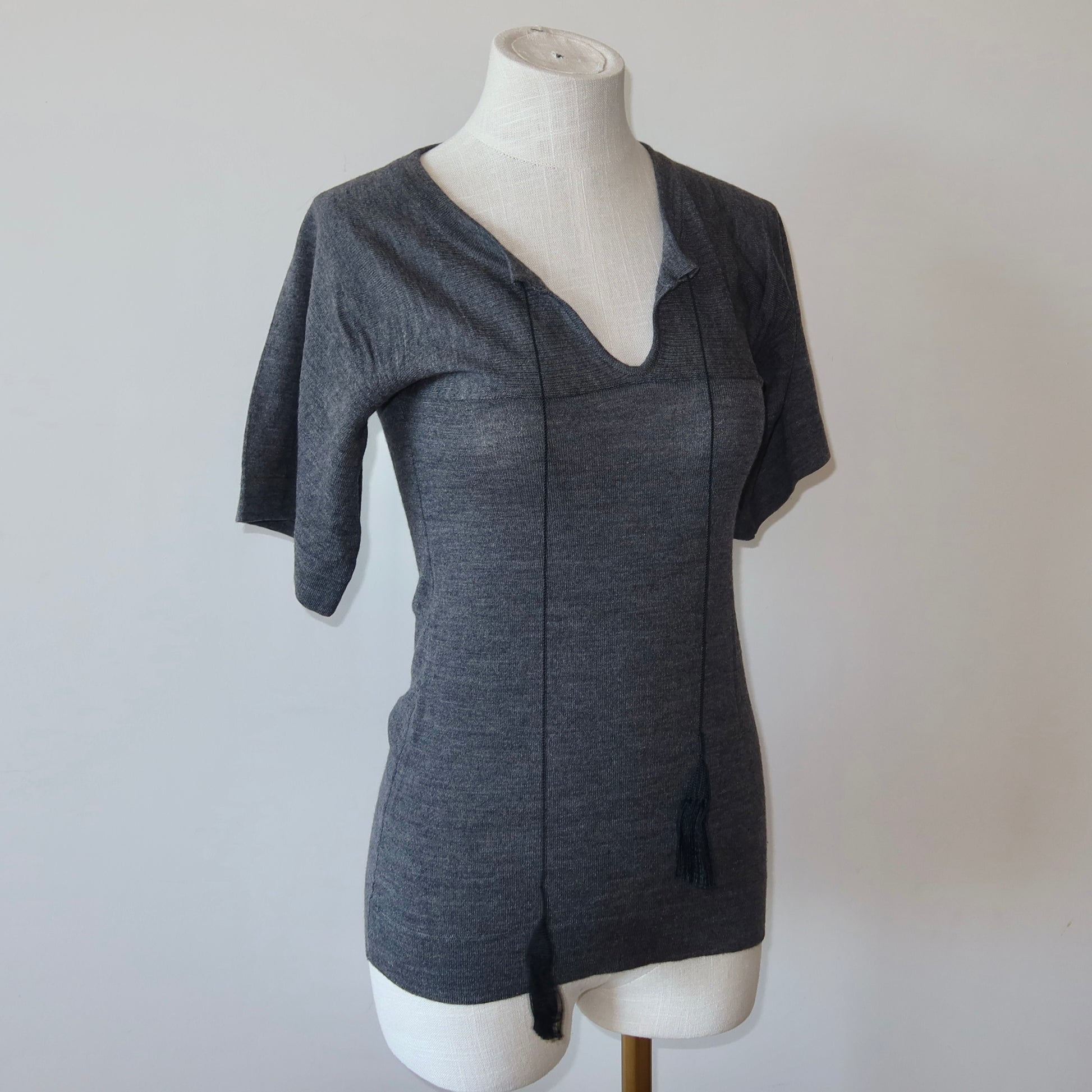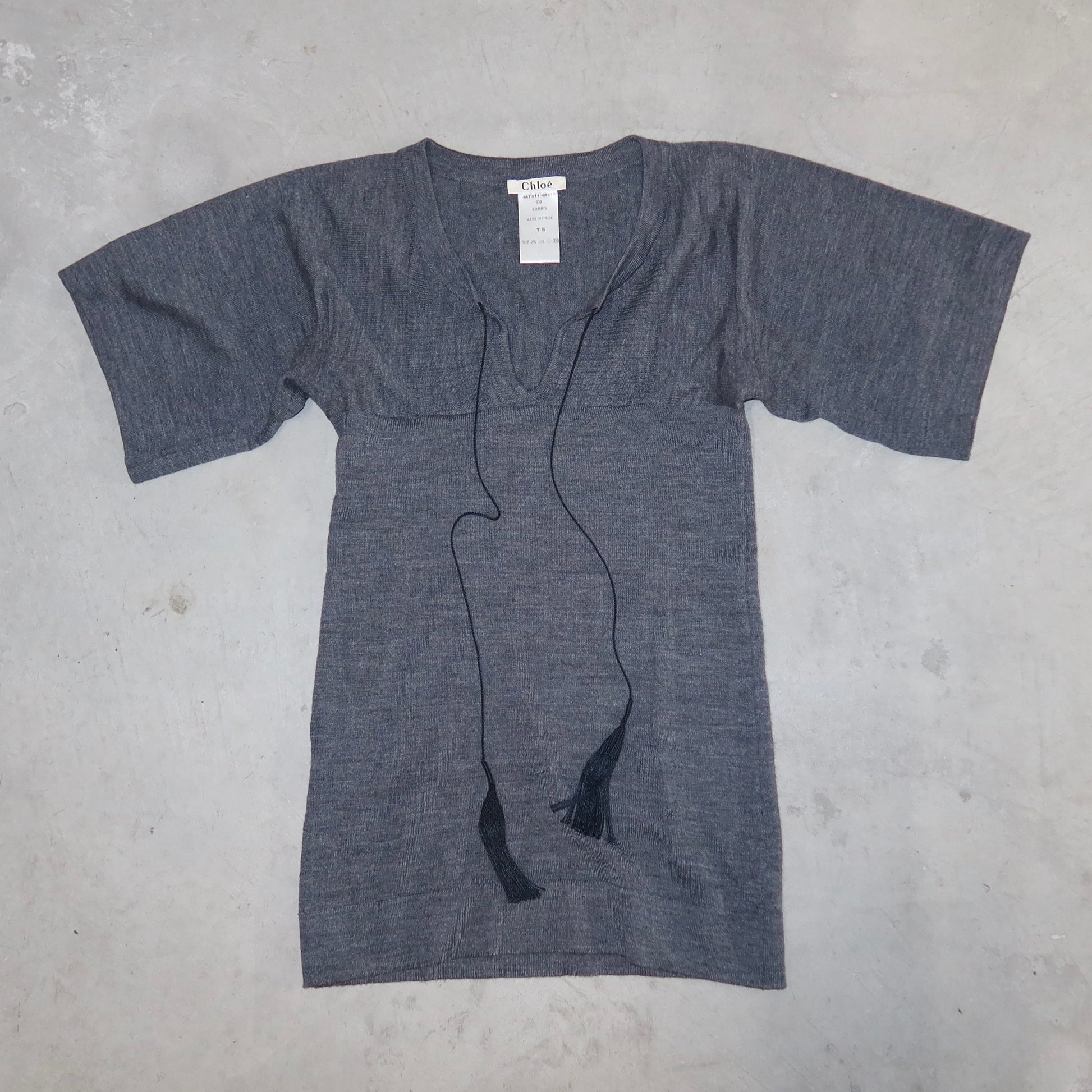 Beautiful merino Chloé tunic/top from AW2004 (Phoebe Philo's era). Super snatched ribbed main body with v cut neck and slightly flared short sleeves.