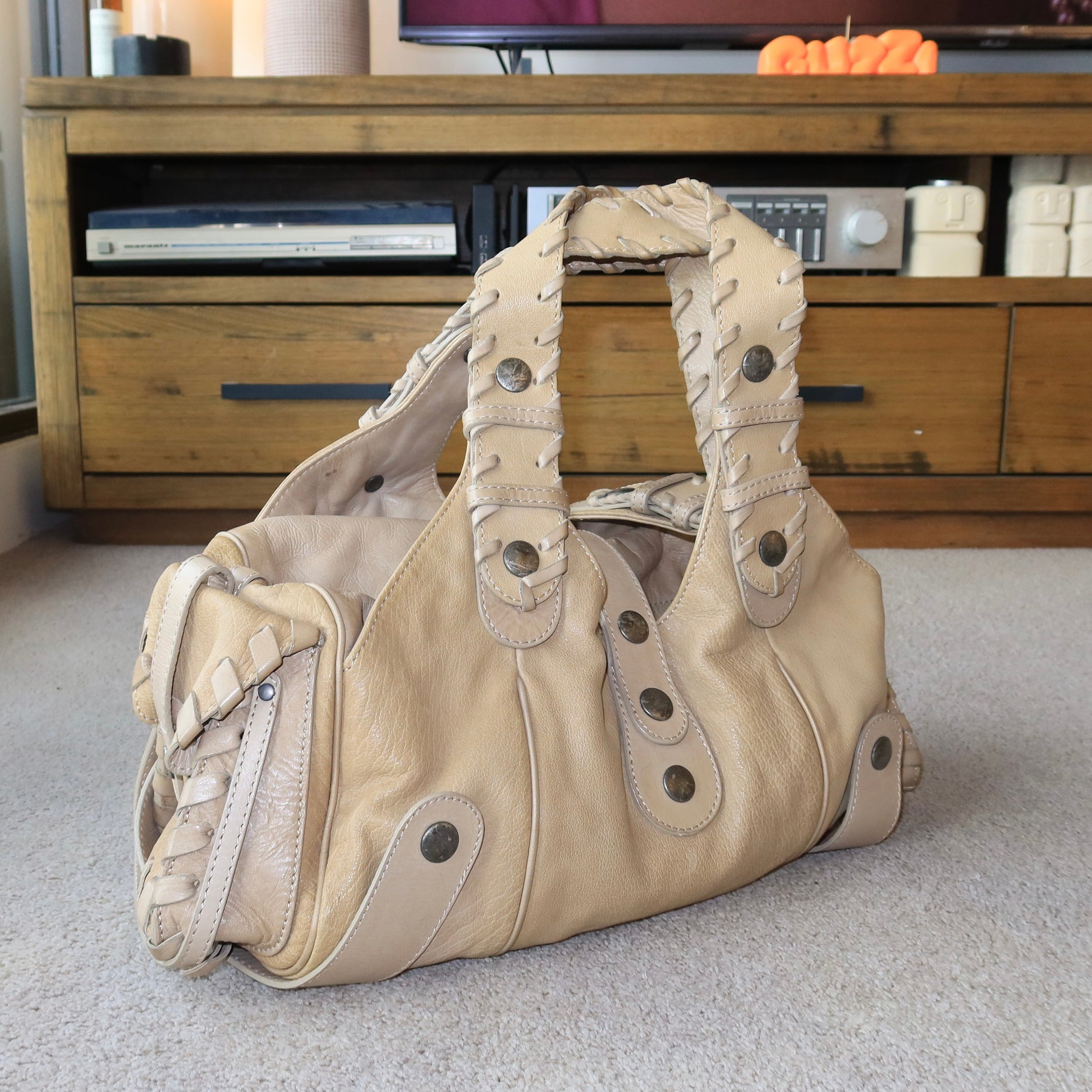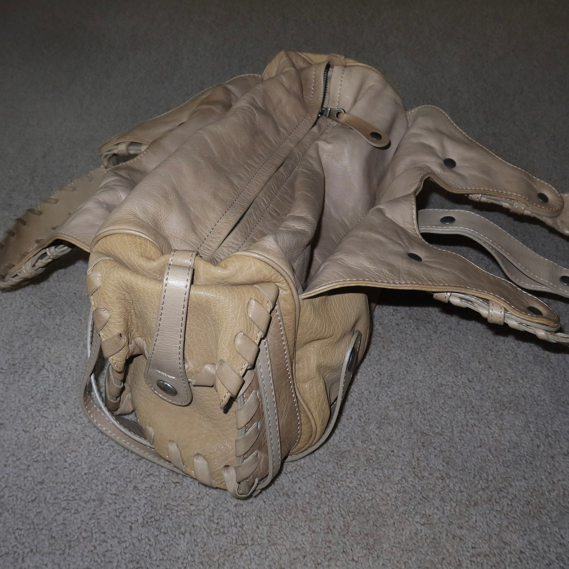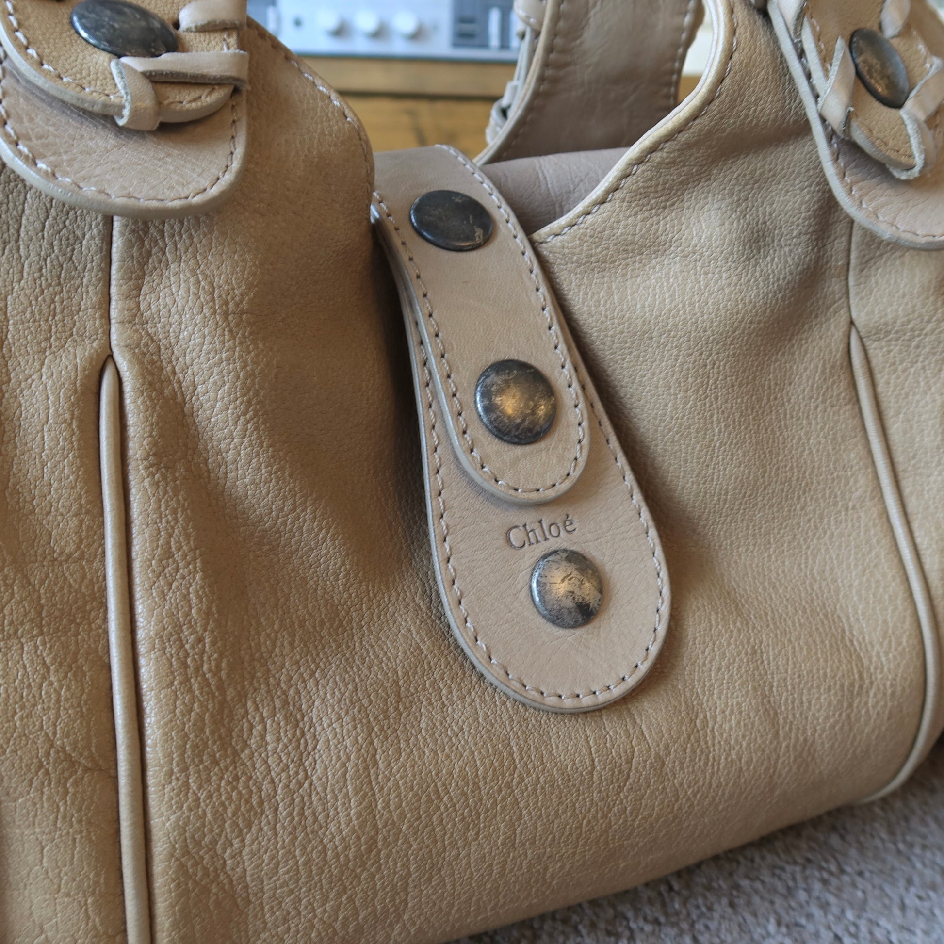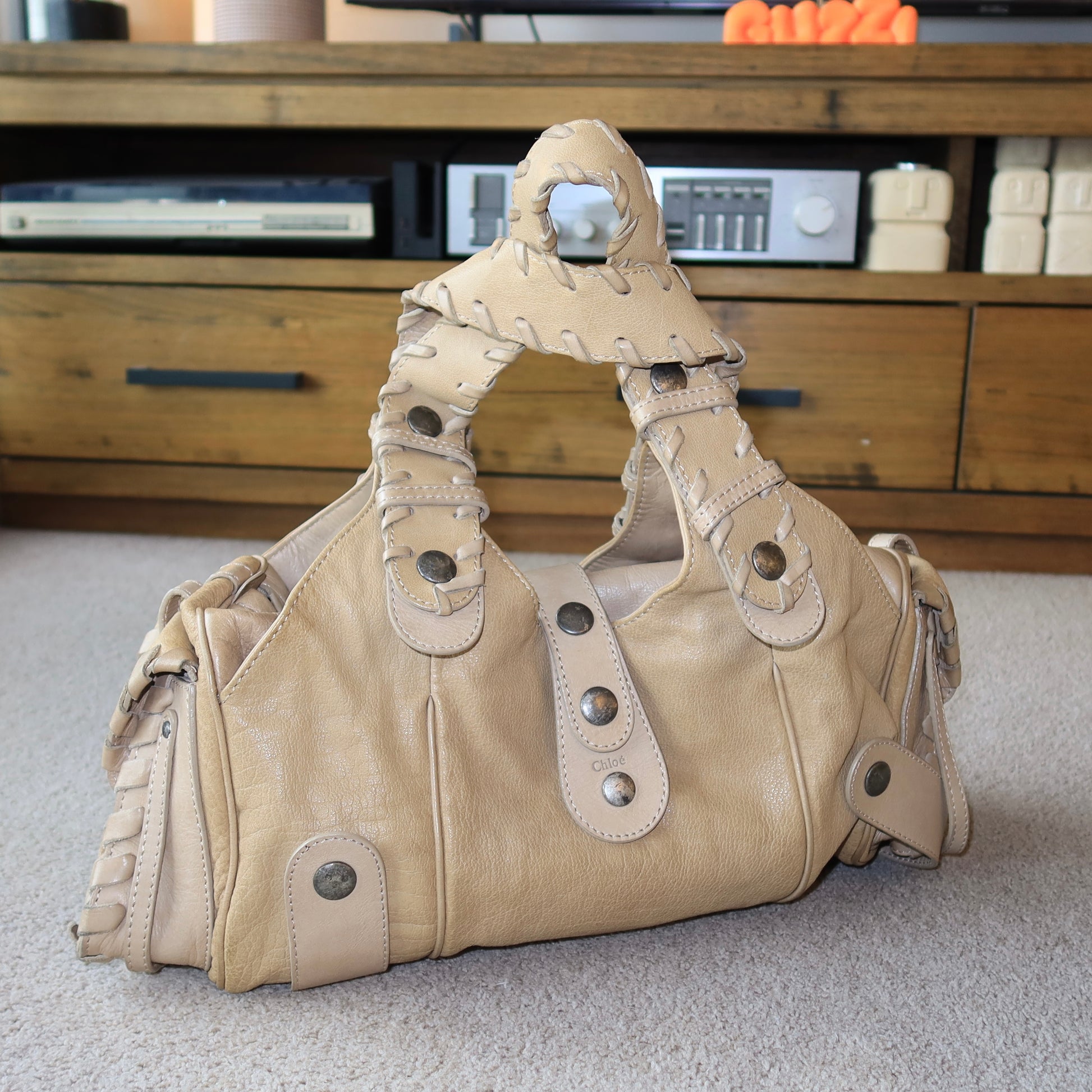 The latest IT bag! Beautiful tan/cream Silverado bag by Chloé, designed by Stella McCartney. Gorgeous whipstitch detail.
