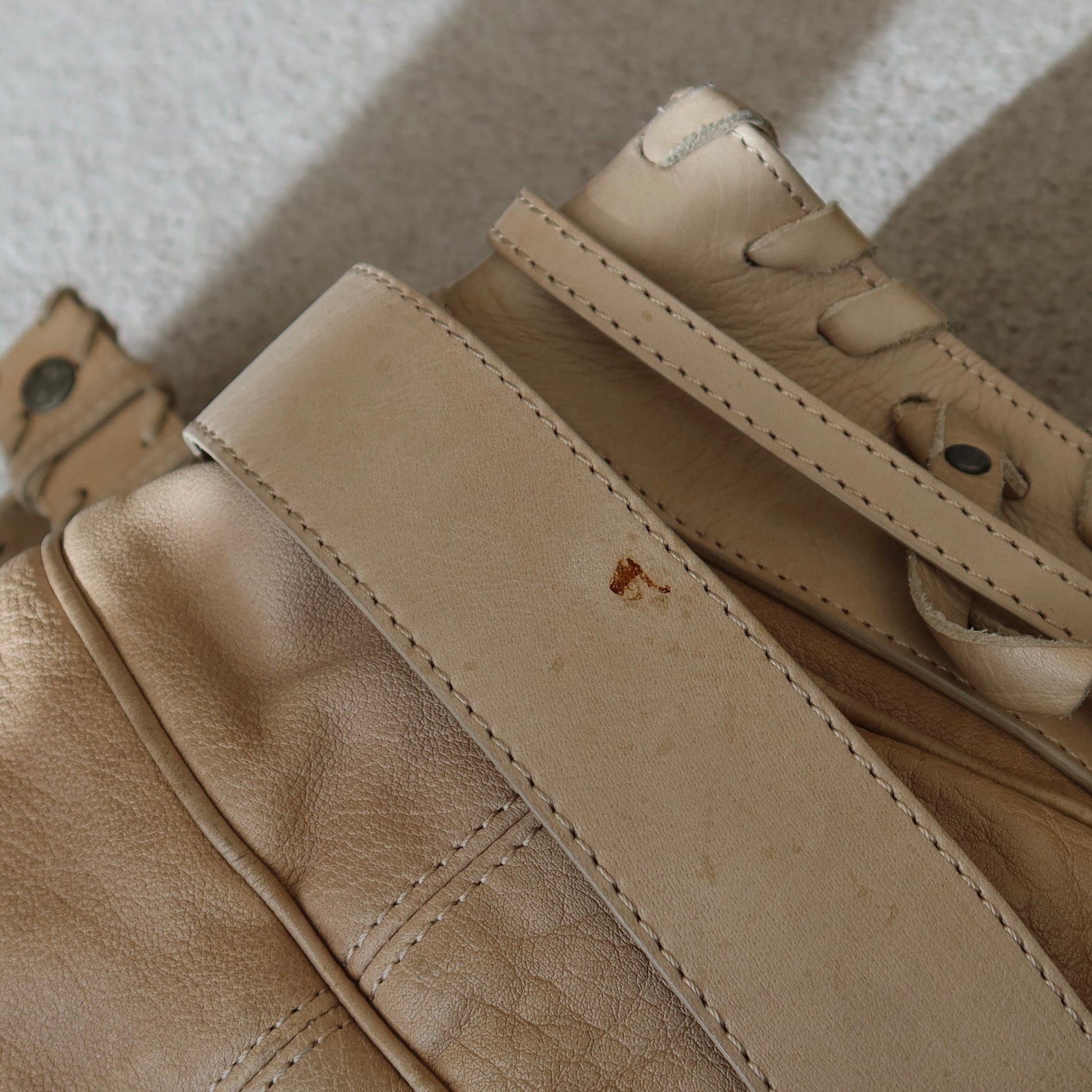 Great vintage condition. Small mark on the leather on the inside. One mark on the base, as pictured. Exterior of the bag and cotton interior are in perfect condition!