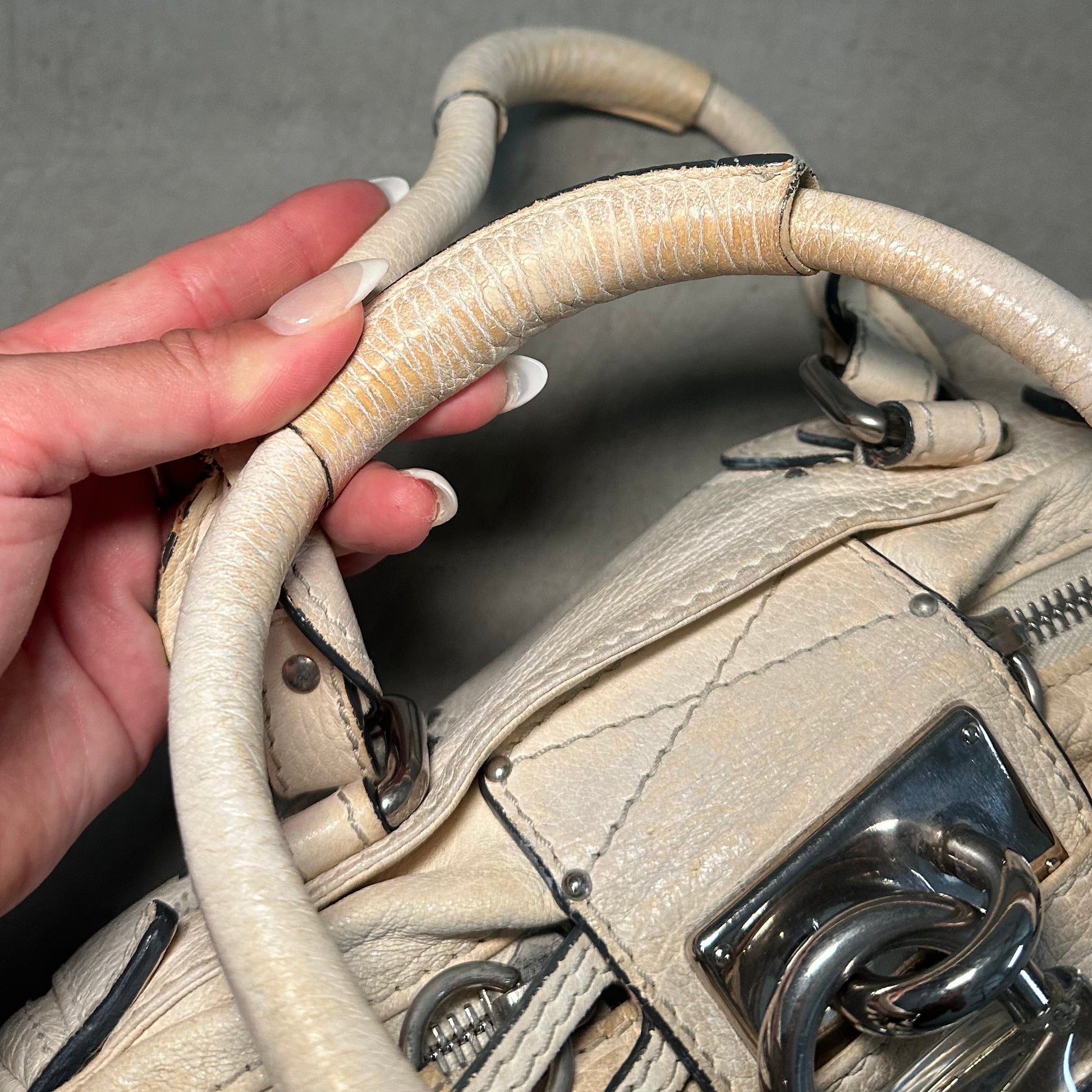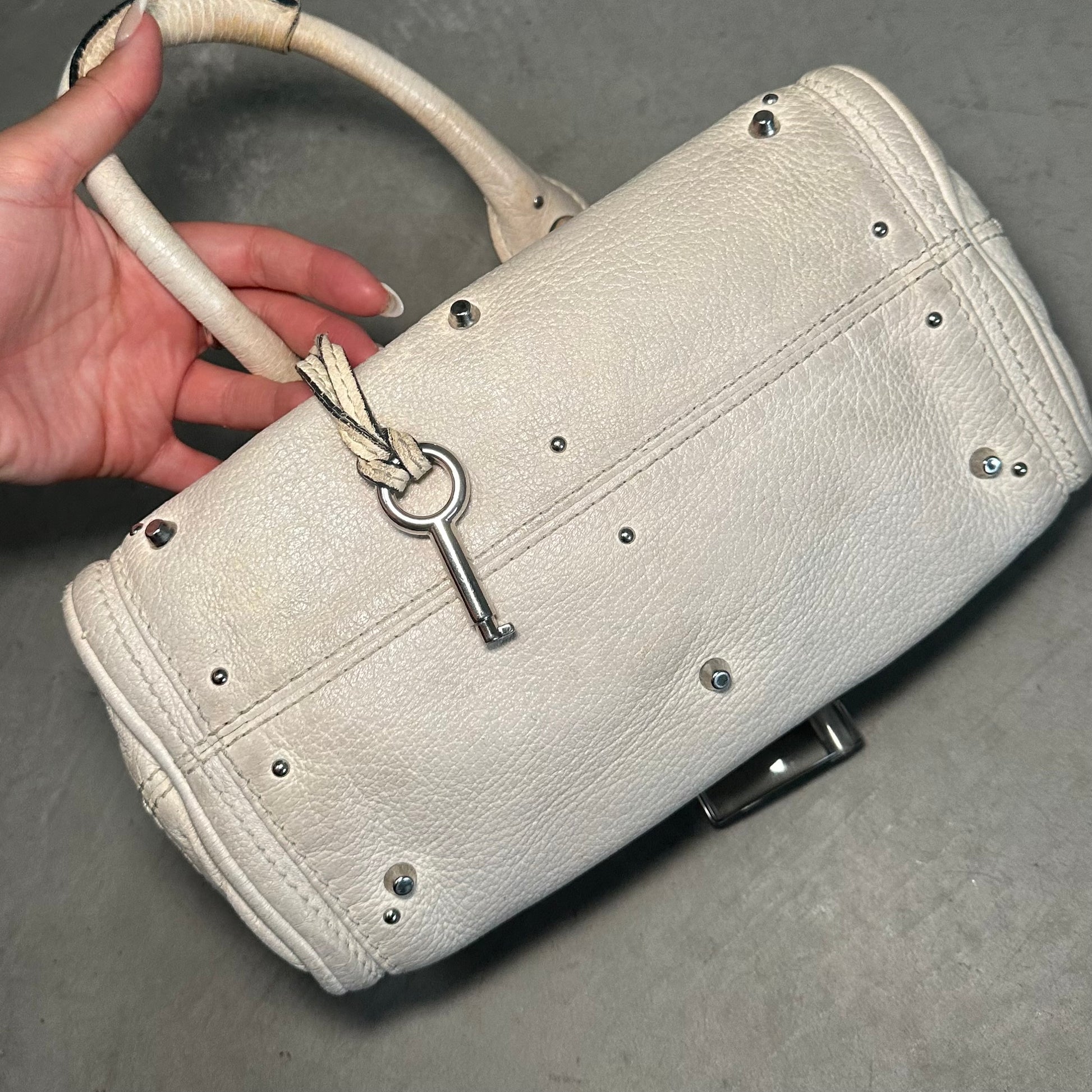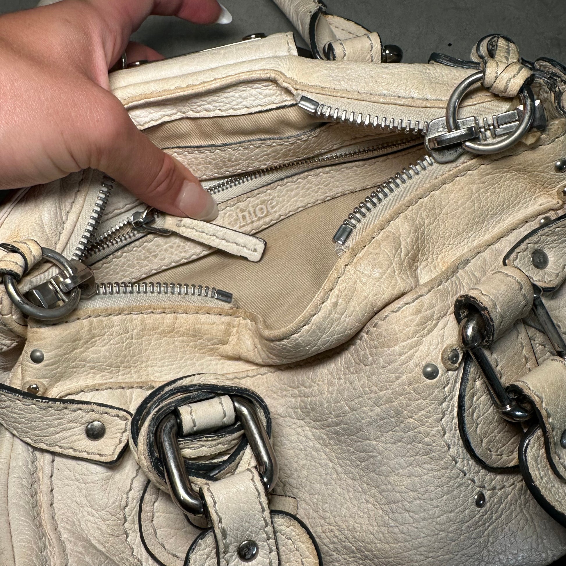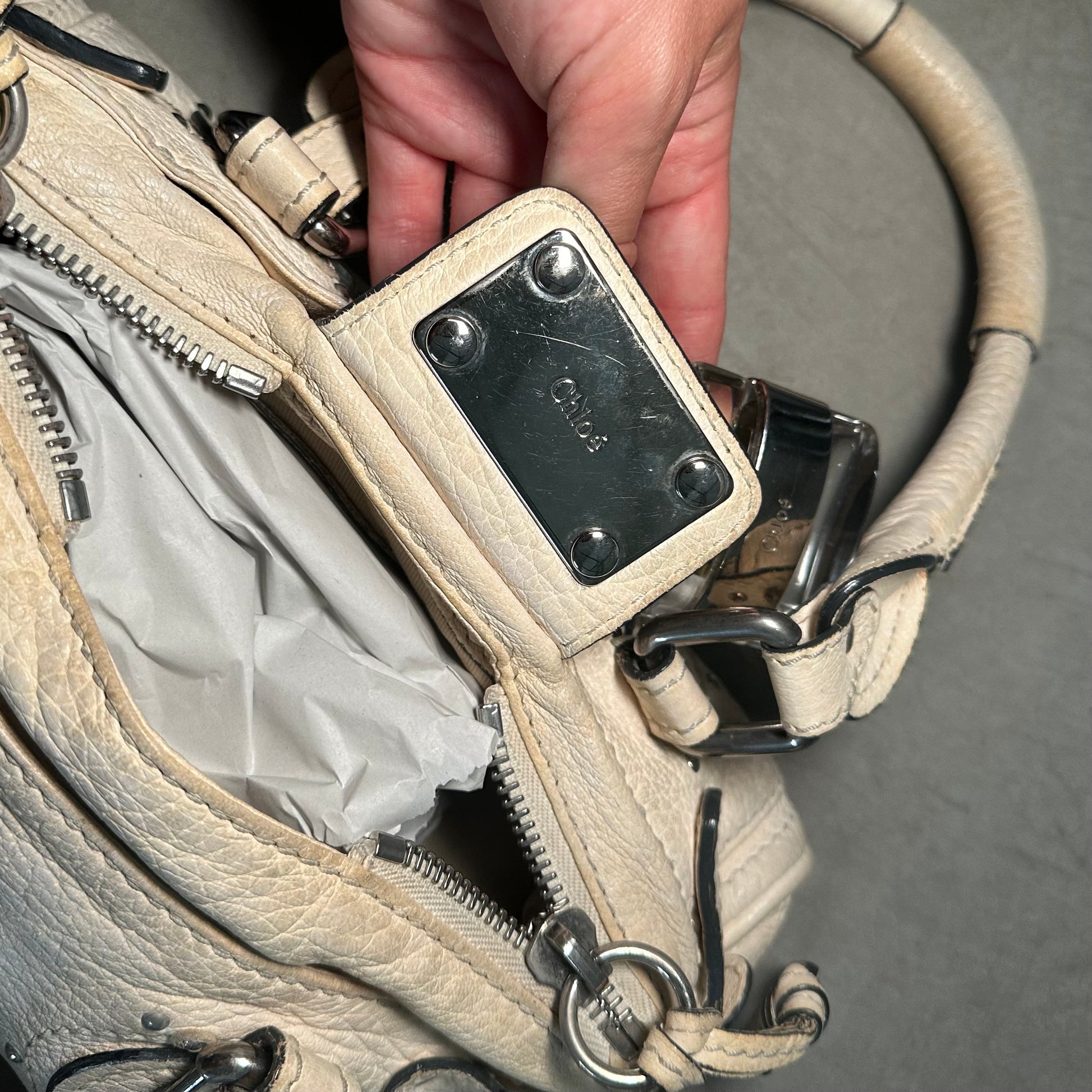 The cutest white mini Paddington by Chloe with a unique see-through lock.