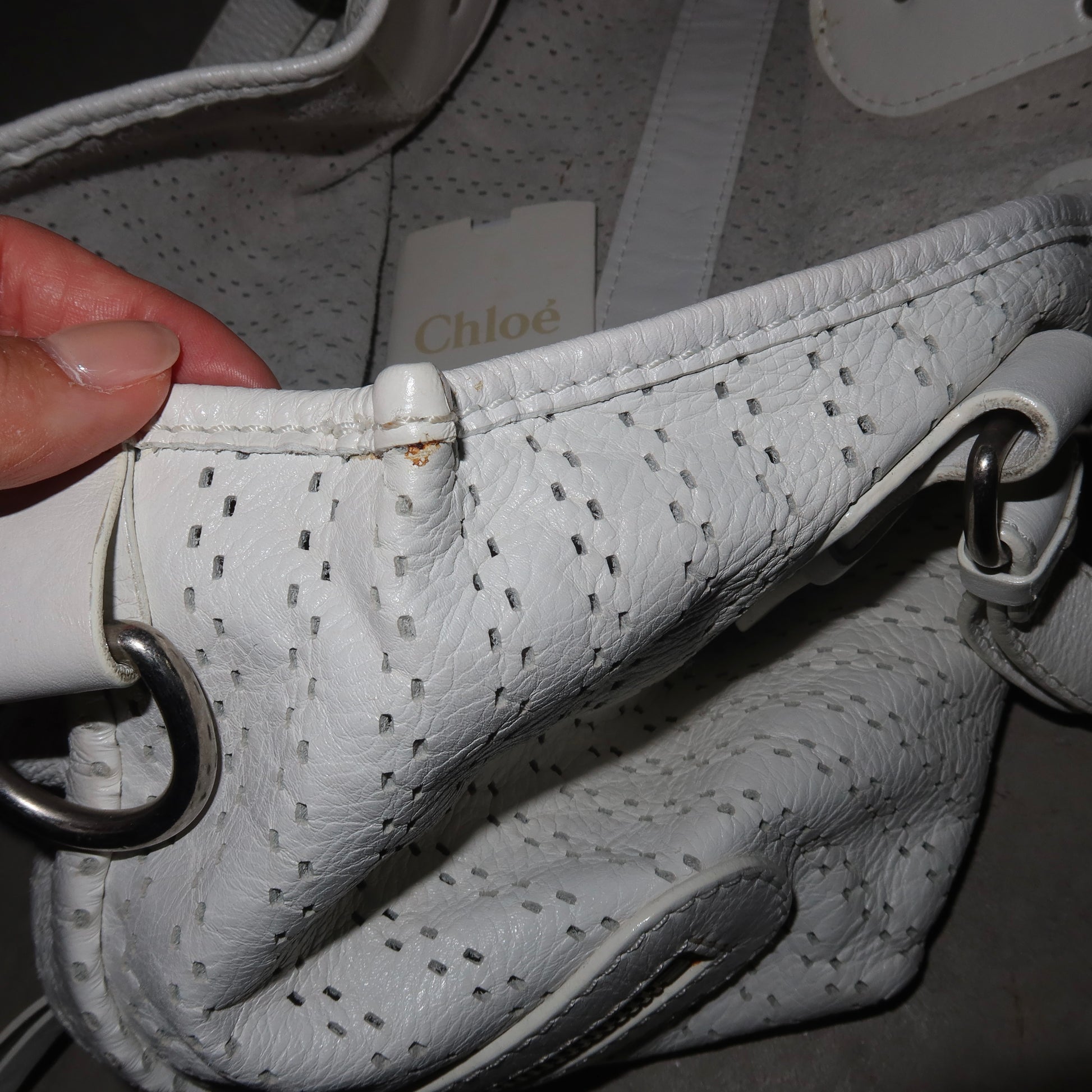 Chloé White Perforated Leather Kerala Bag
