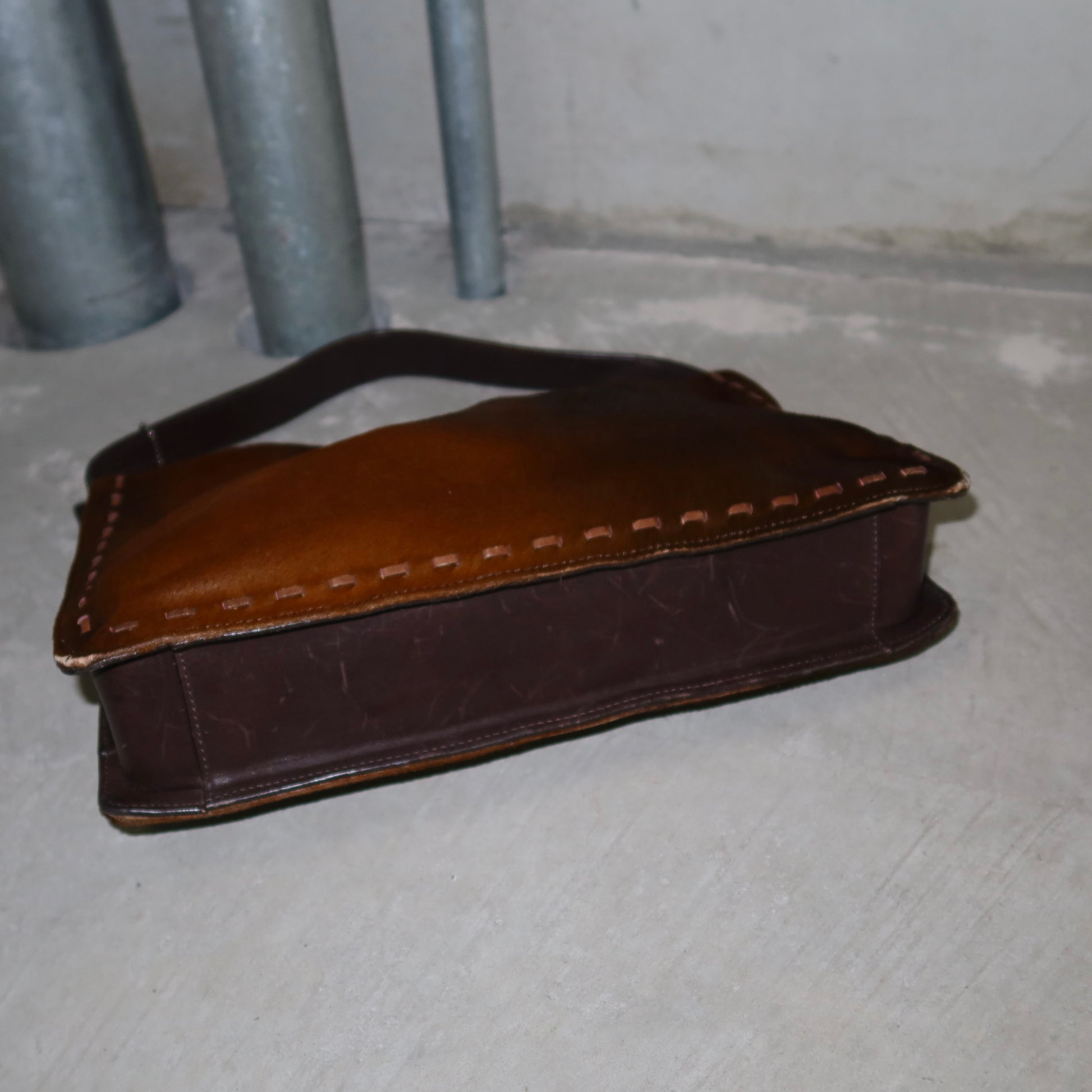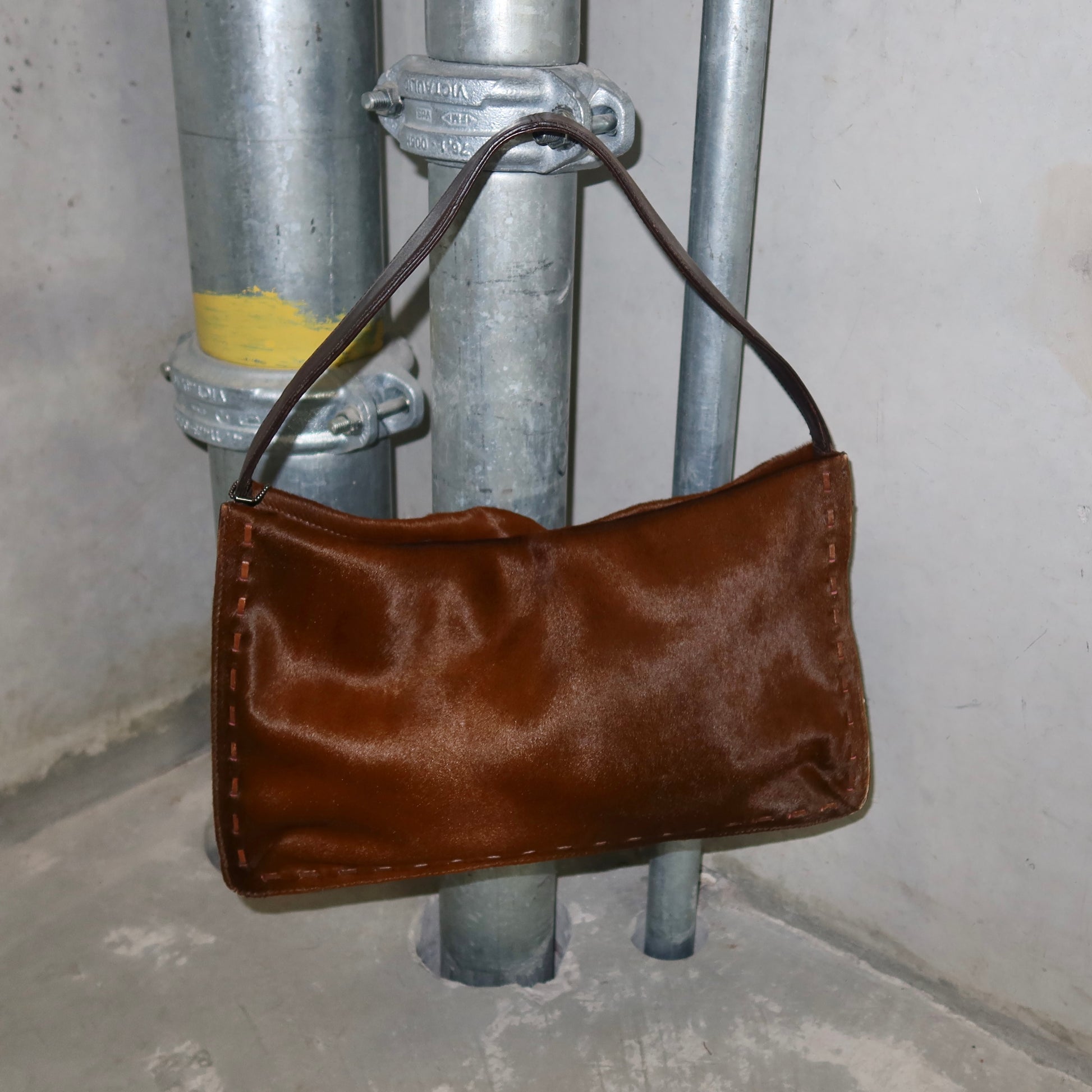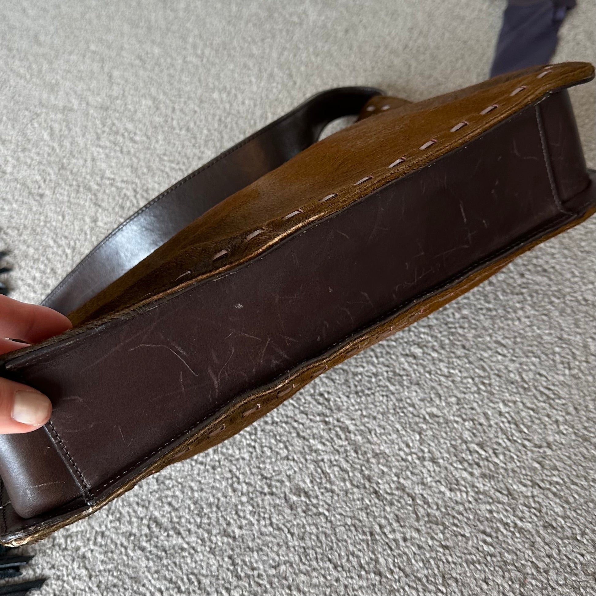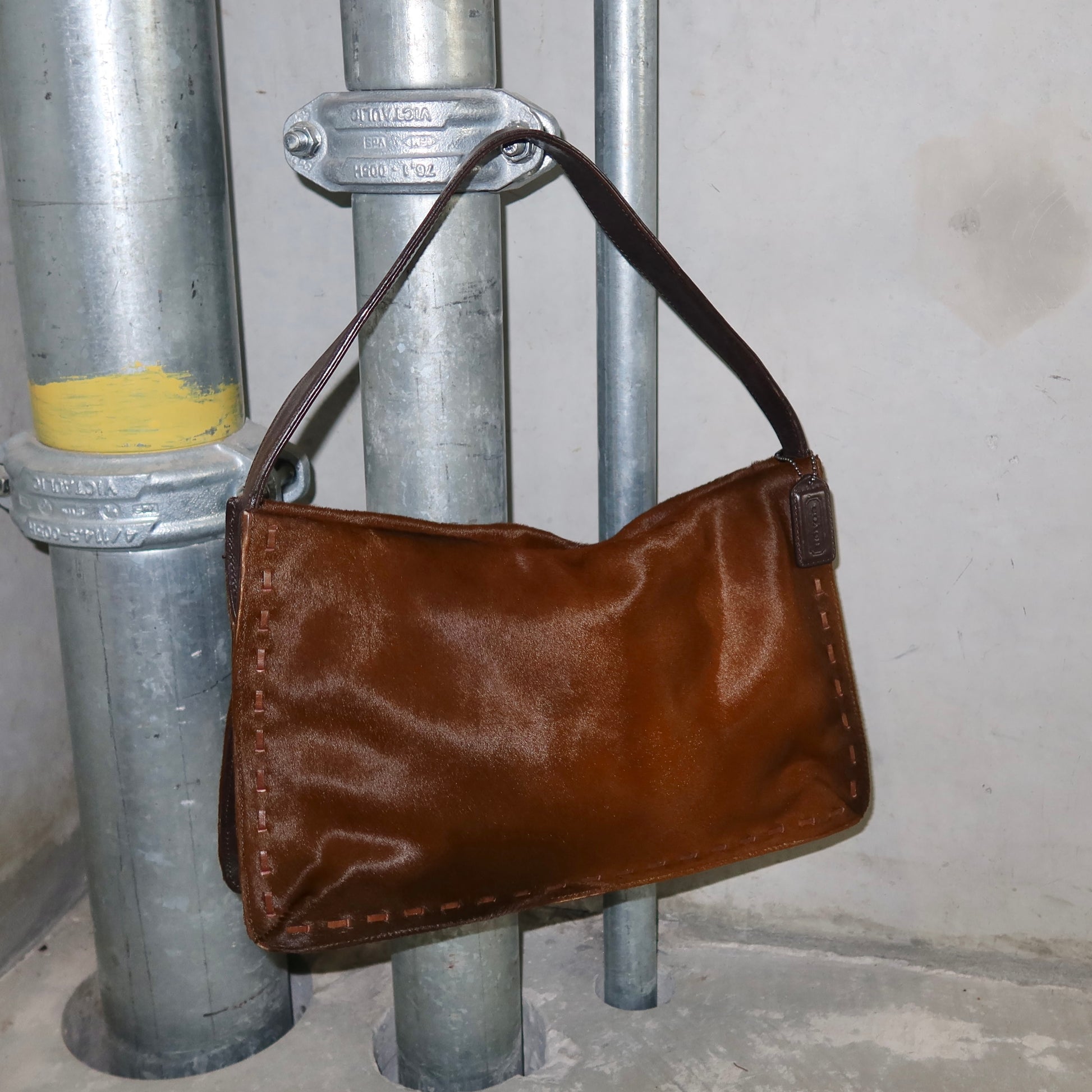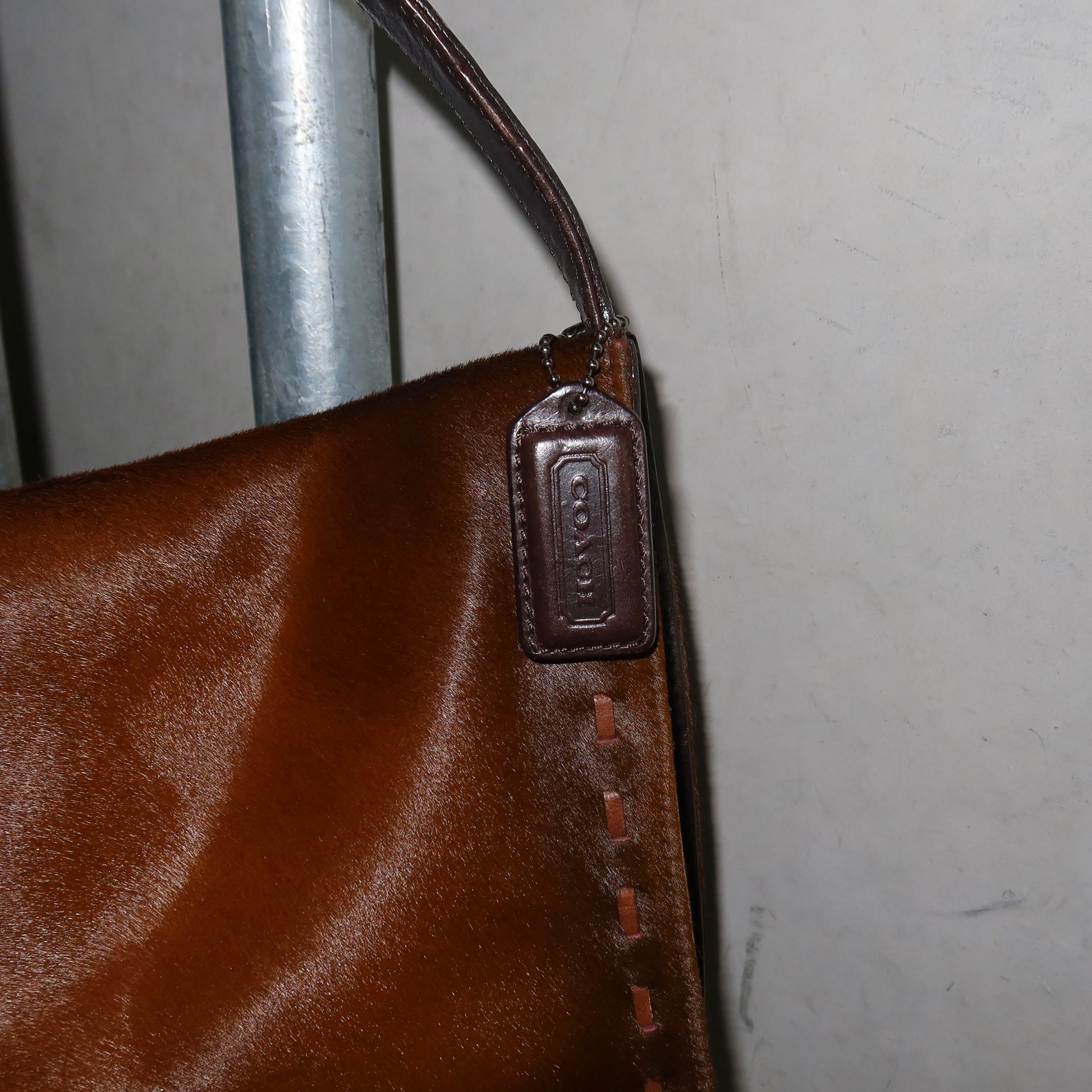 Gorgeous glossy brown cowhide and leather bag by Coach. Perfect size.
