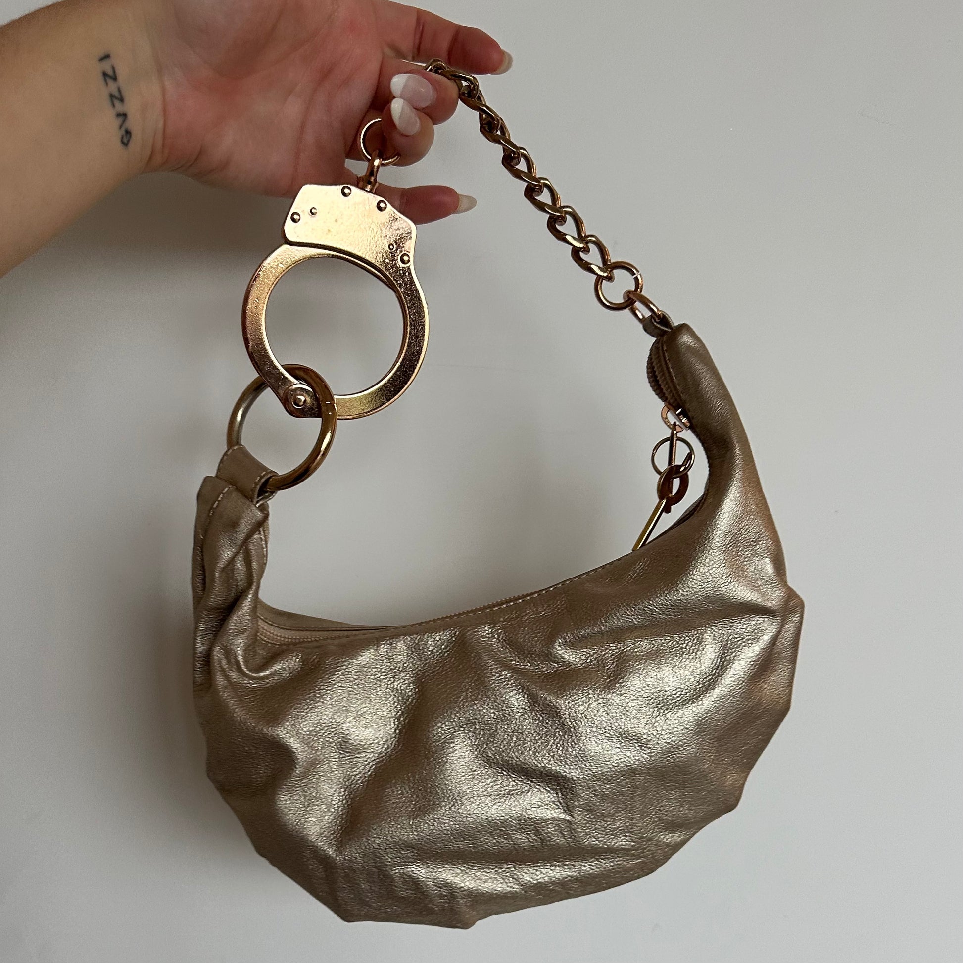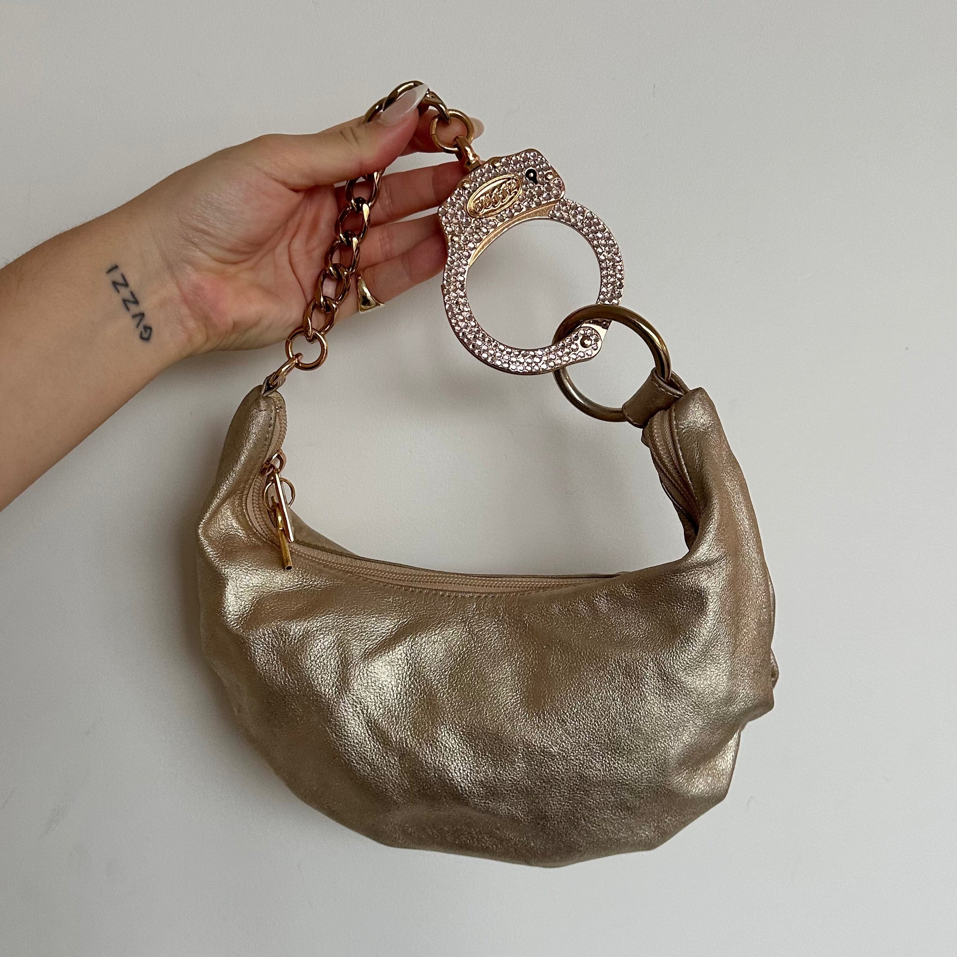 Gorgeous pale gold Cuffz ‘Barfly’ bag with gold hardware and baby pink Swarovski embellished cuff.